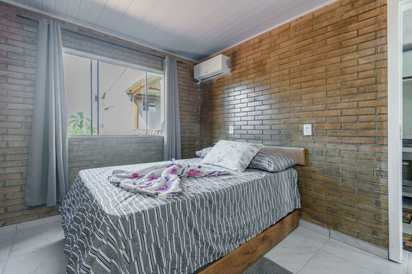 - Quarto 1 com 1 bicama de casal, ar condicionado, armário e edredom