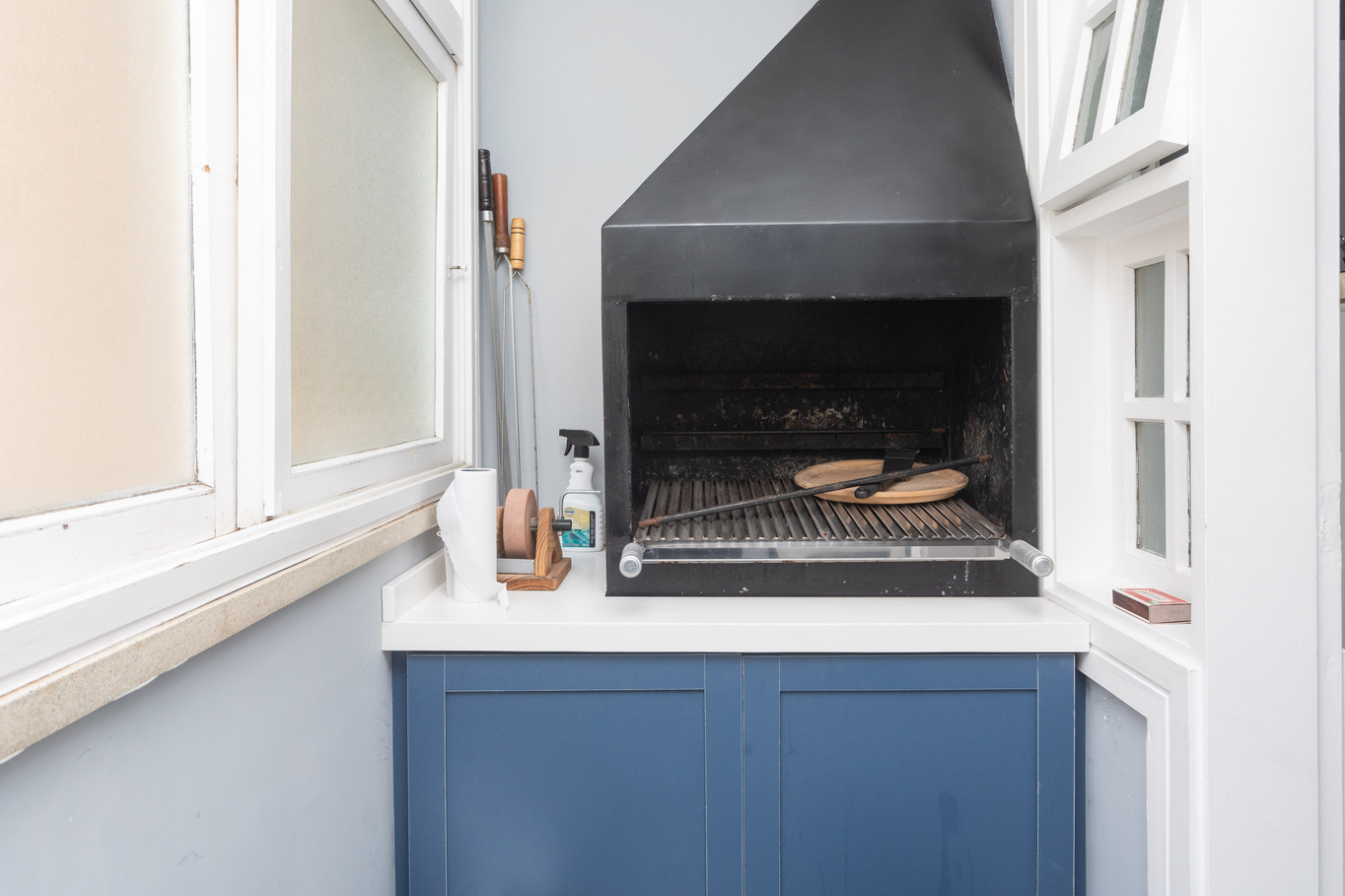 - Sala climatizada, com sofá, poltrona, mesa de jantar para 6 pessoas, TV a cabo e churrasqueira privativa integrada