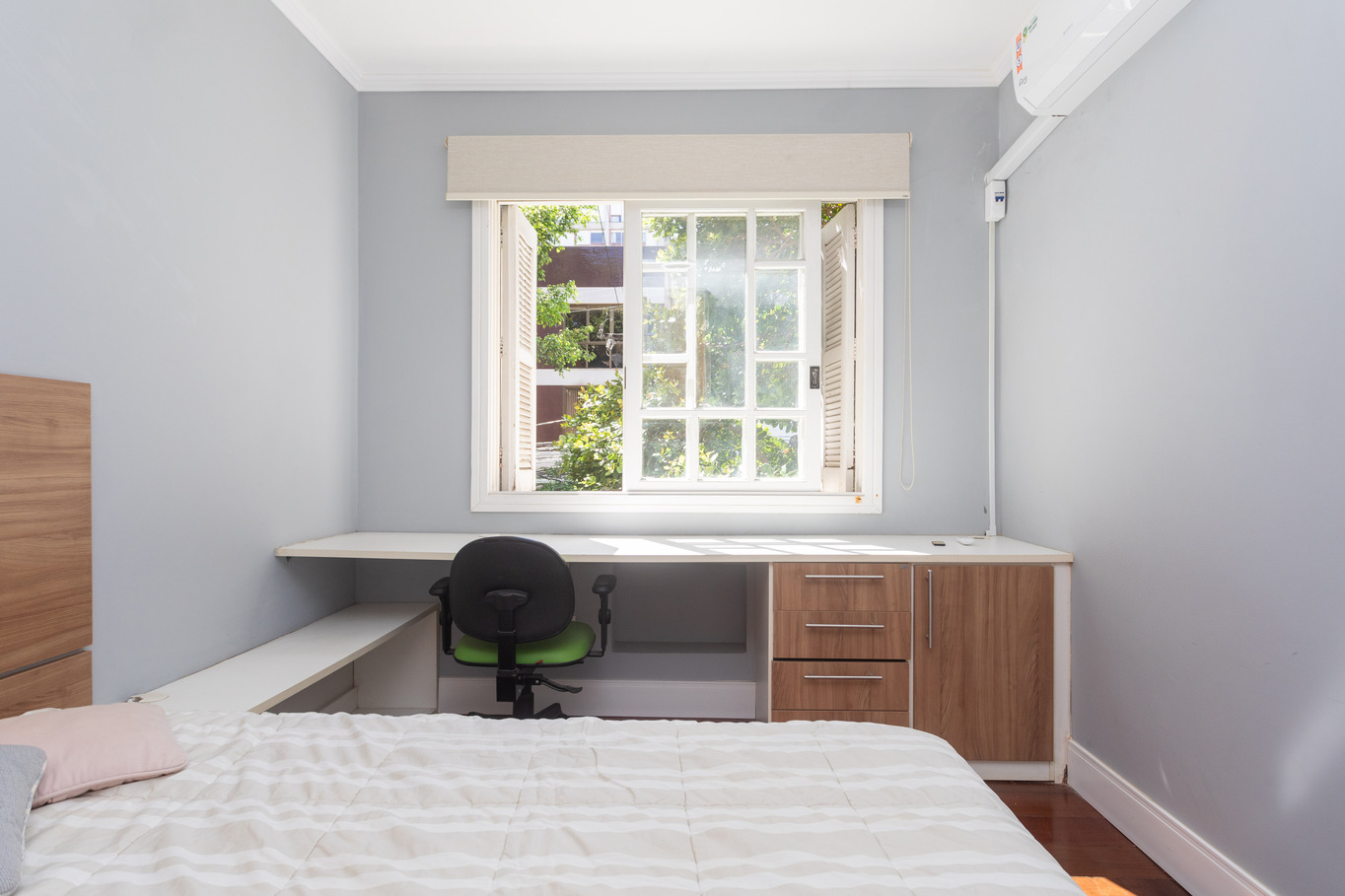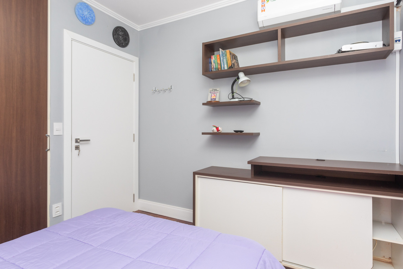 - Quarto 2: cama de casal, ar-condicionado, armário e escrivaninha ideal para home office