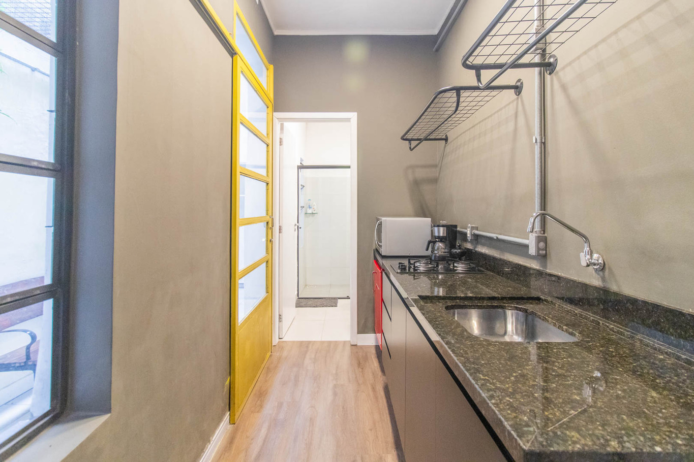- Cozinha equipada com geladeira, fogão, microondas, cafeteira, mesa e utensílios(exceto óleo e sal)