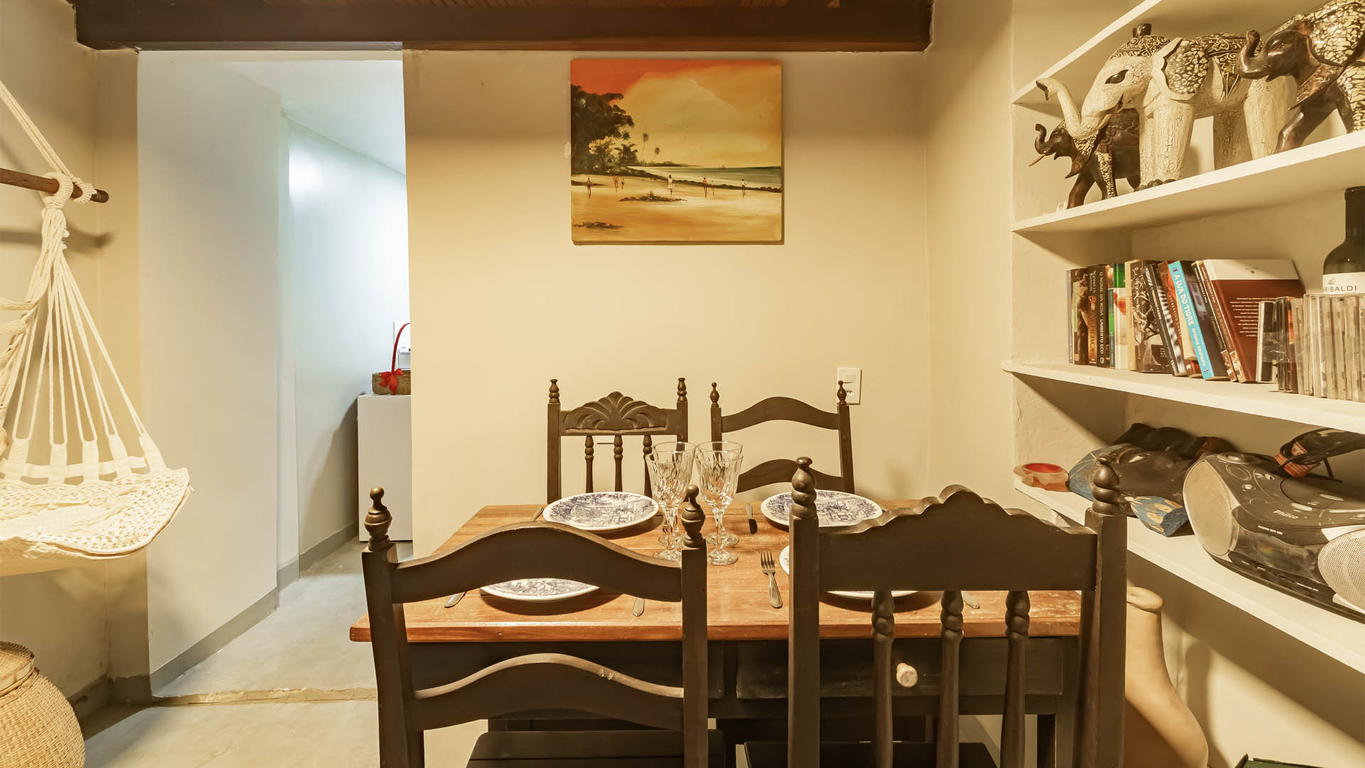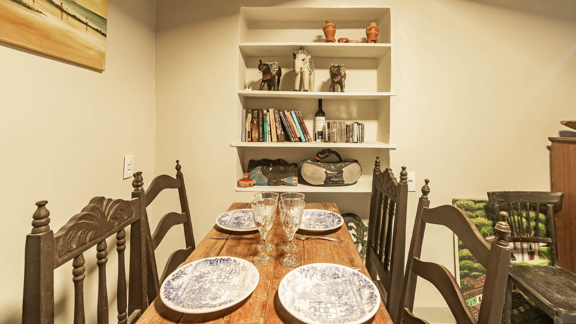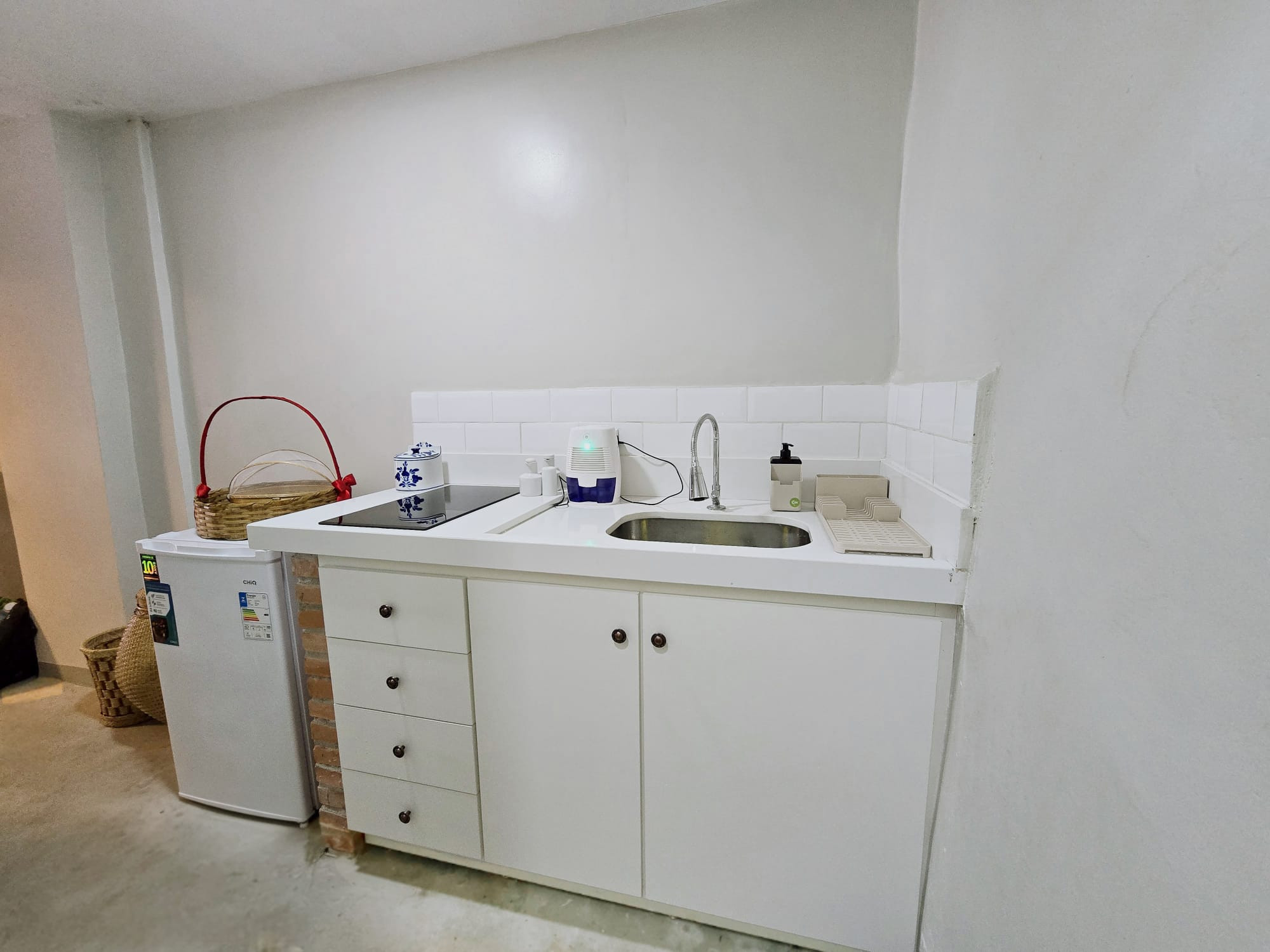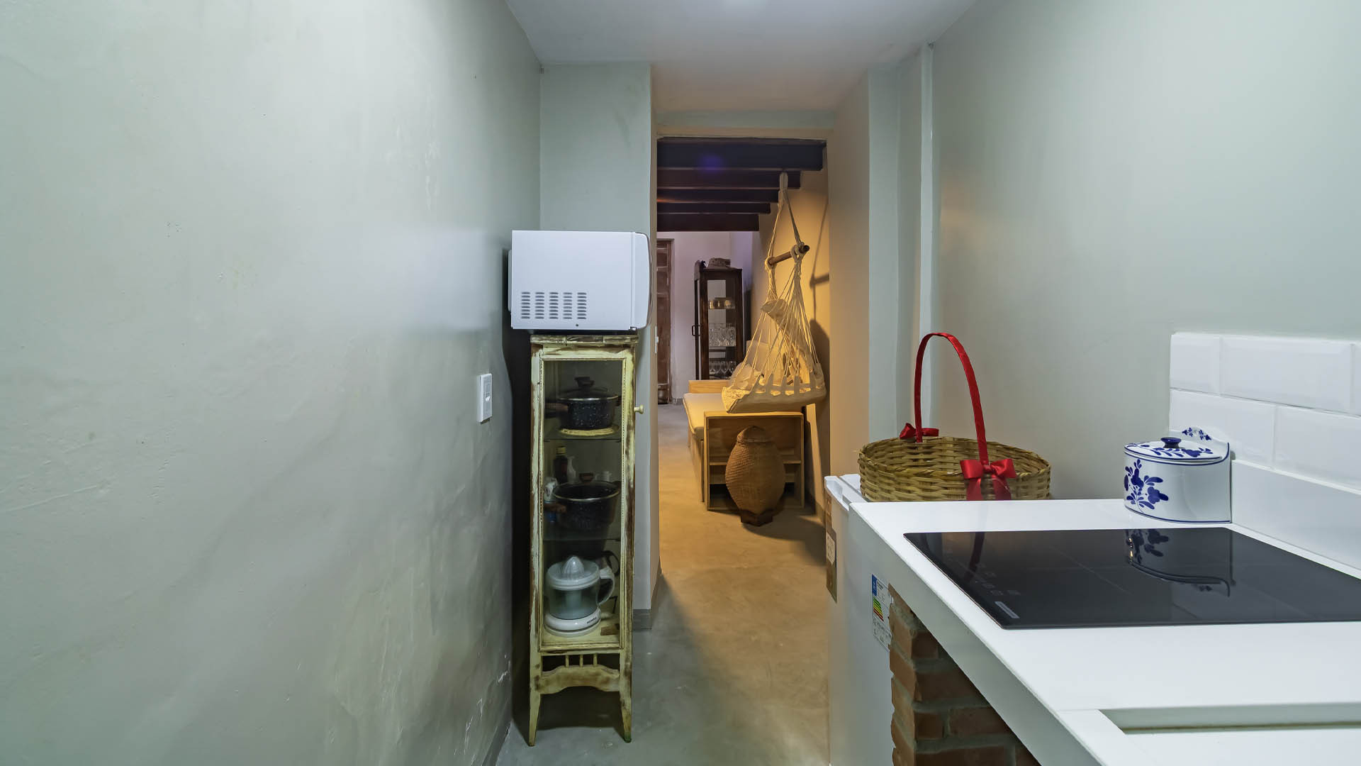 - Cozinha equipada com frigobar, cooktop 2 bocas, microondas, cafeteira, utensílios completos diversos e mesa para refeições. As taças de cristal não são para uso