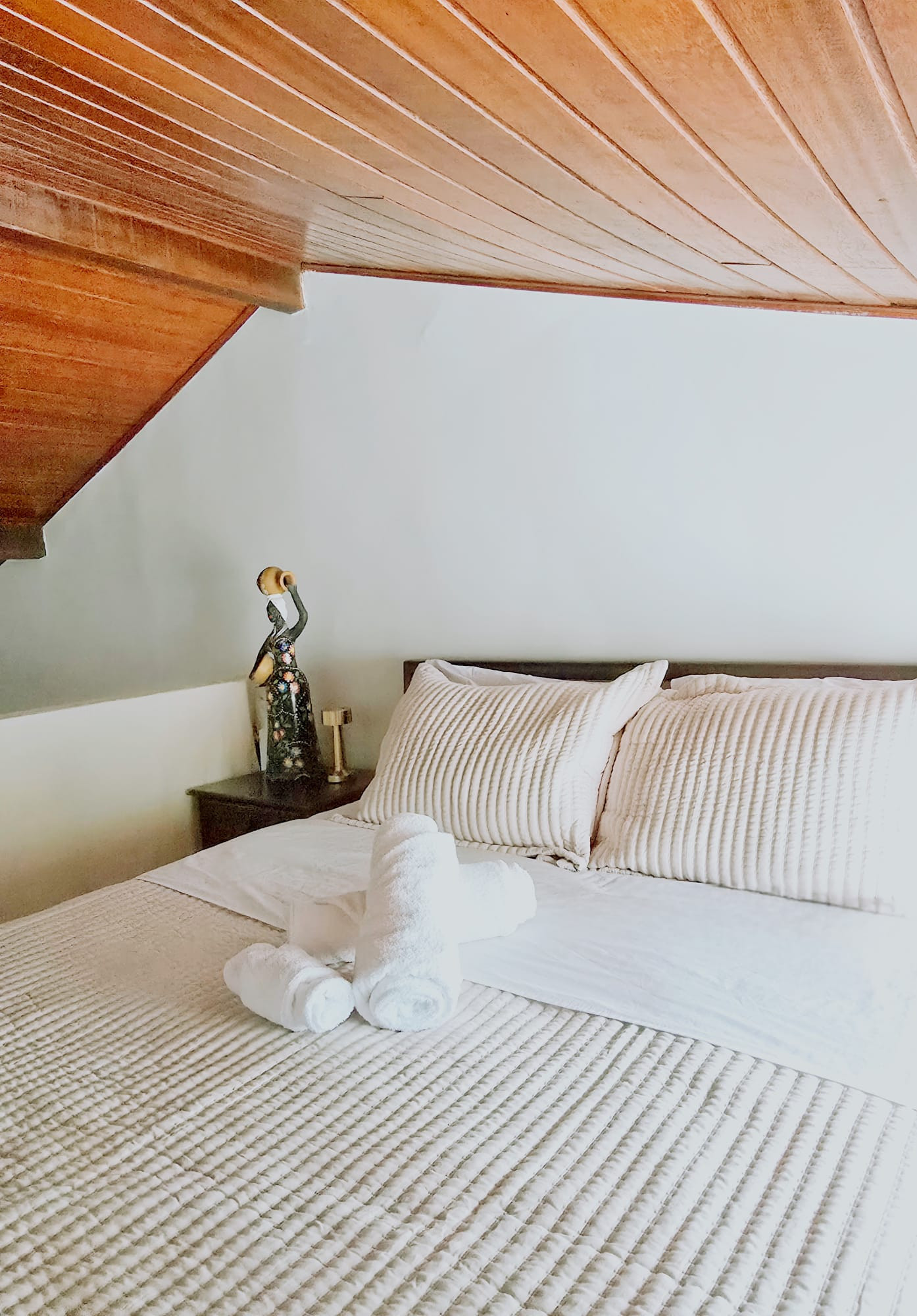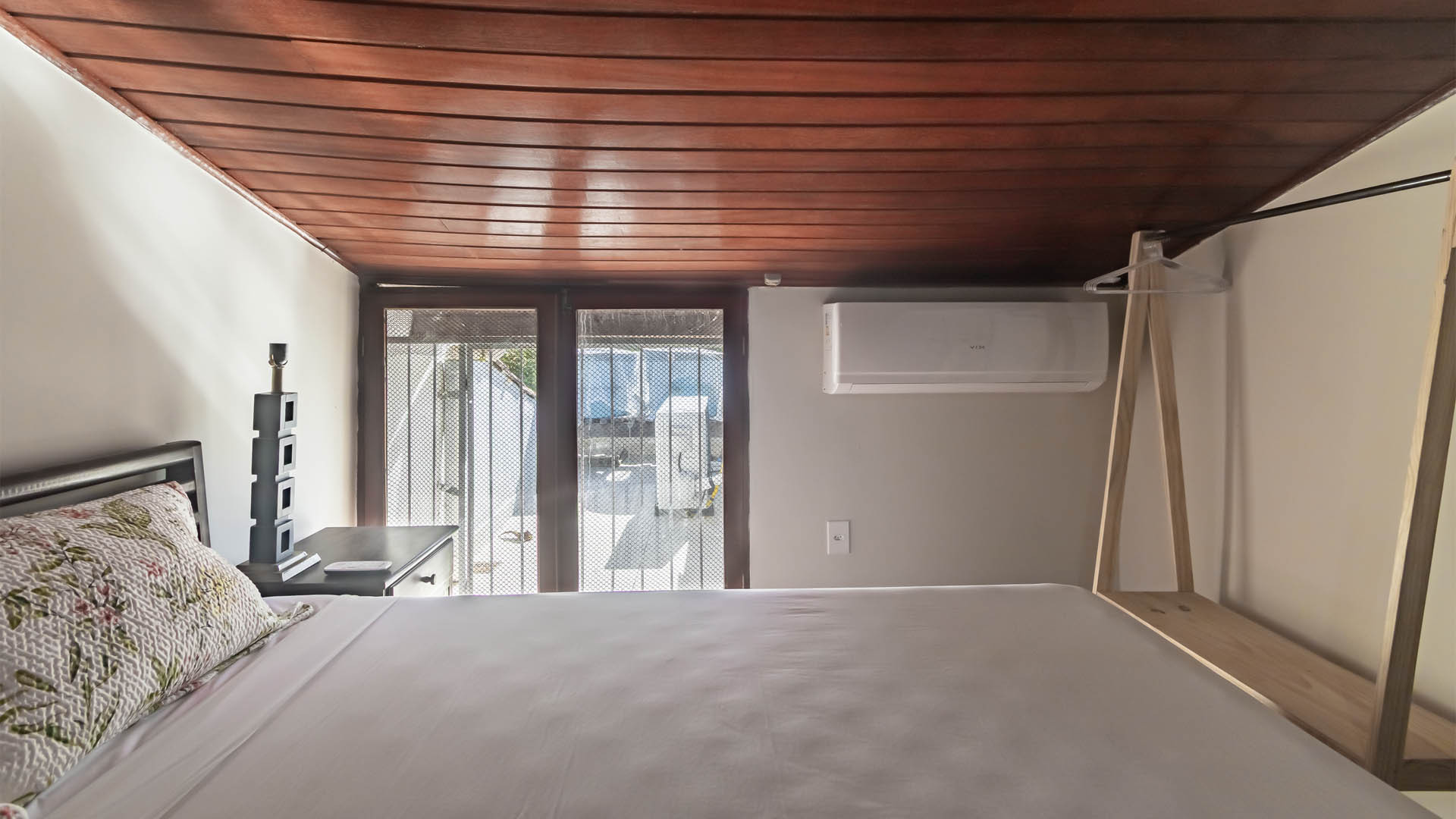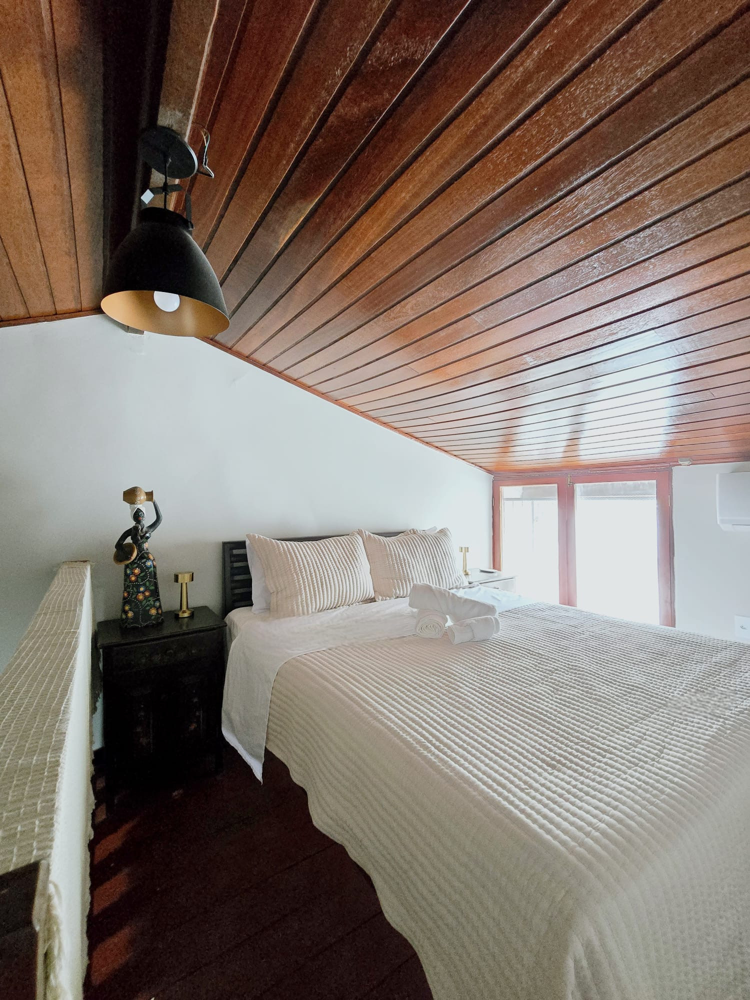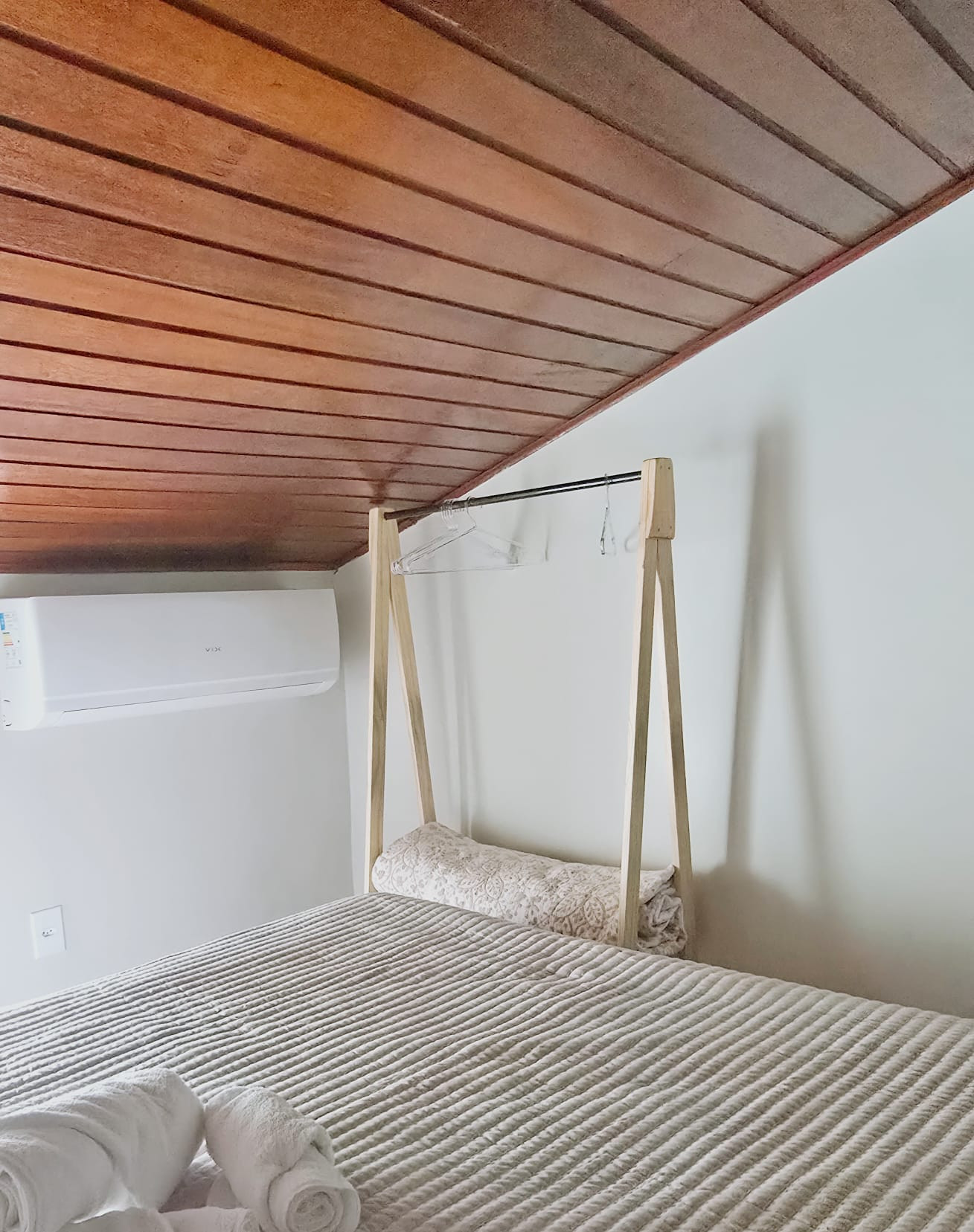 - Quarto/Mezanino: cama de casal confortável, arara(cavalete) para organizar seus itens e roupas, edredom, protetor de colchão e iluminação acolhedora