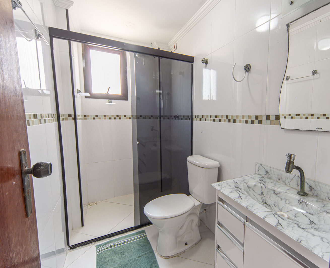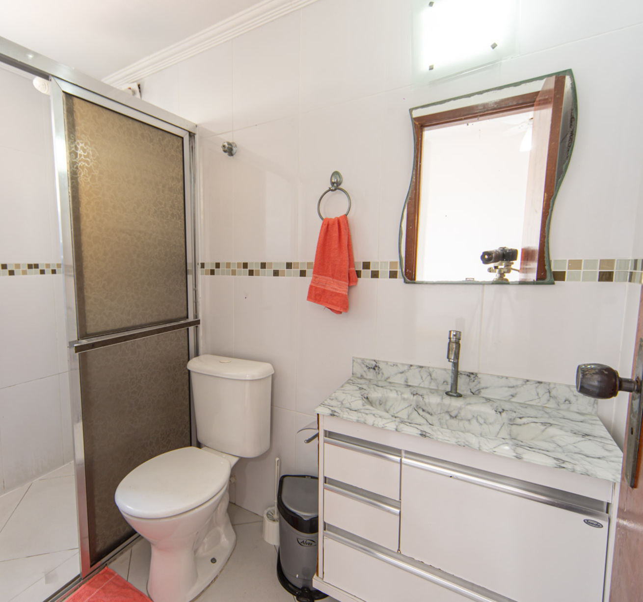 - Quarto 1 (suíte): cama de casal, cama de solteiro, colchão extra, ar-condicionado, closet e banheiro privativo com secador de cabelo