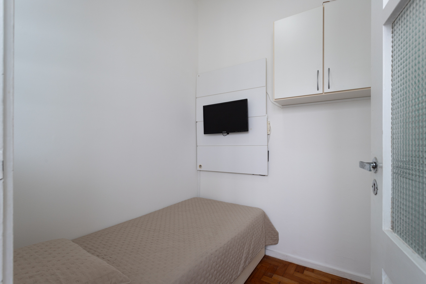 - Quarto 3: cama de solteiro, armário e ventilador de teto