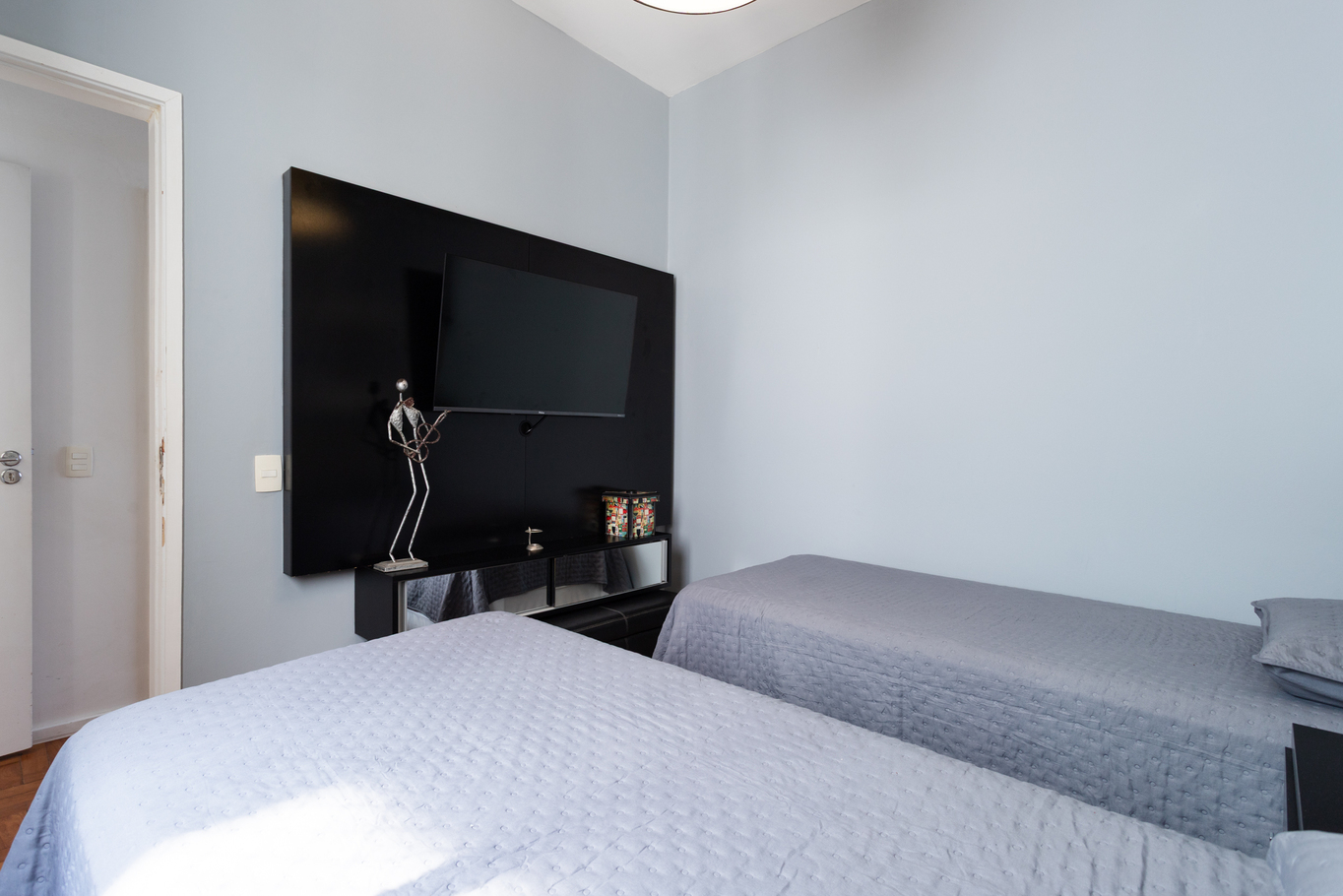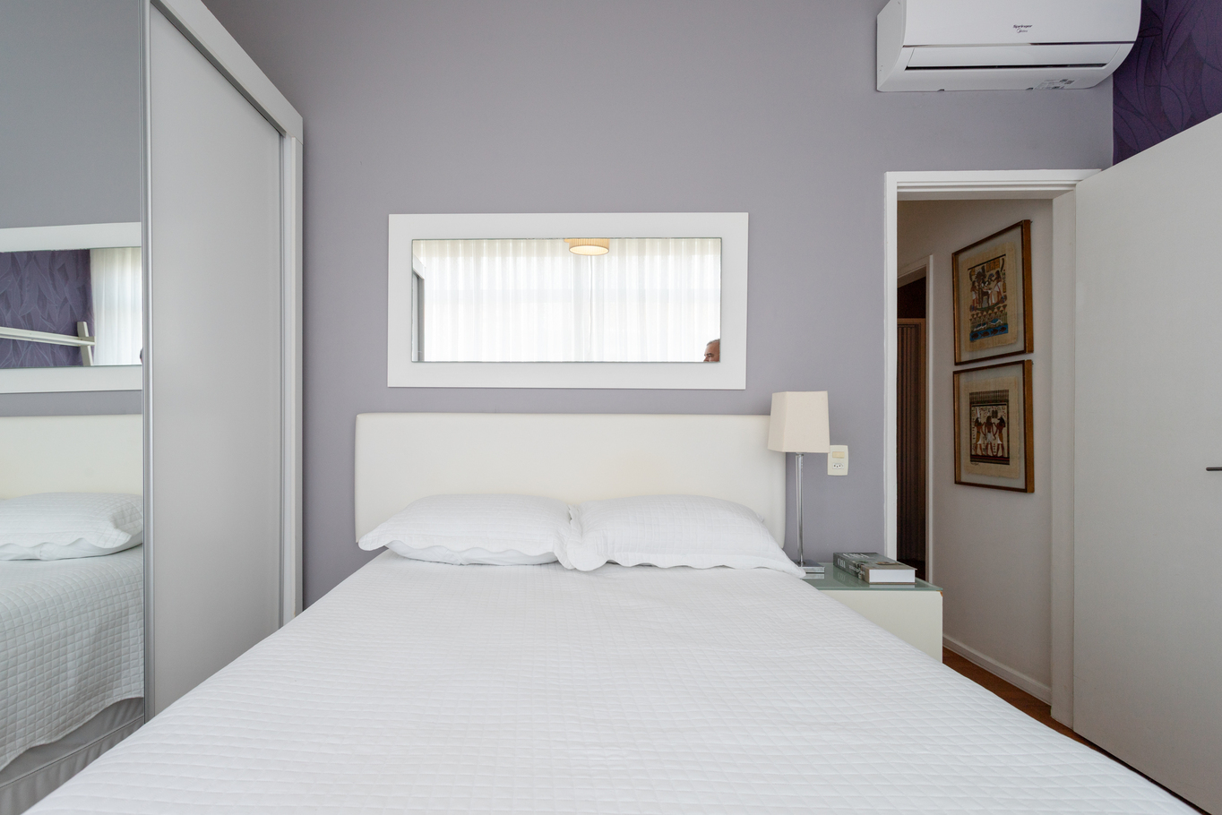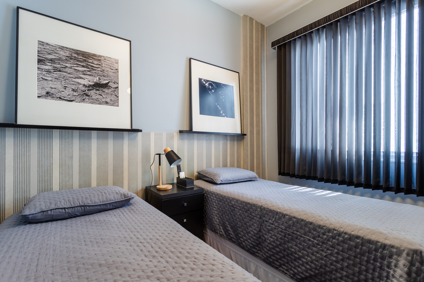 - Quarto 1: cama de casal, ar-condicionado, armário, blackout e janela antirruído