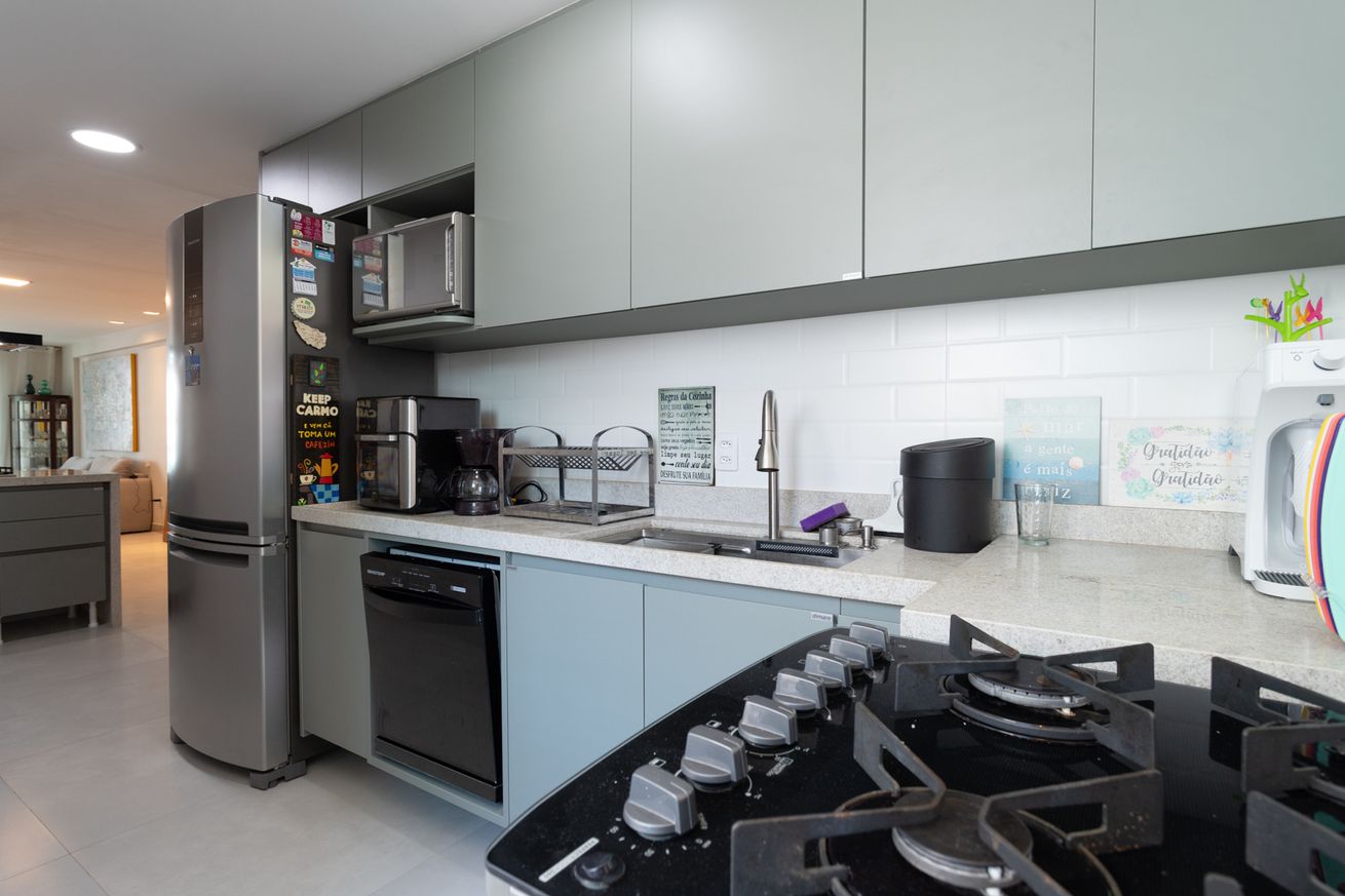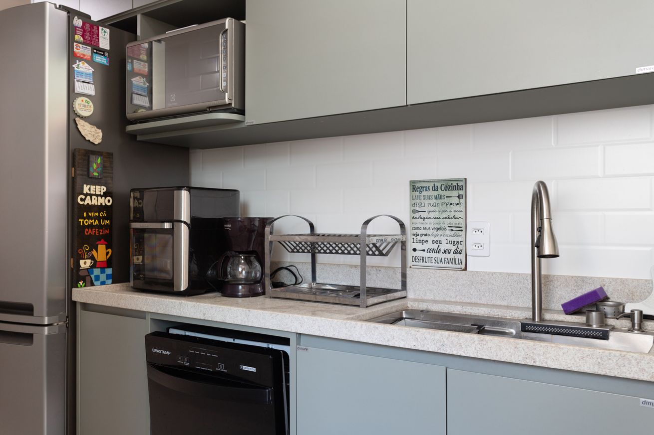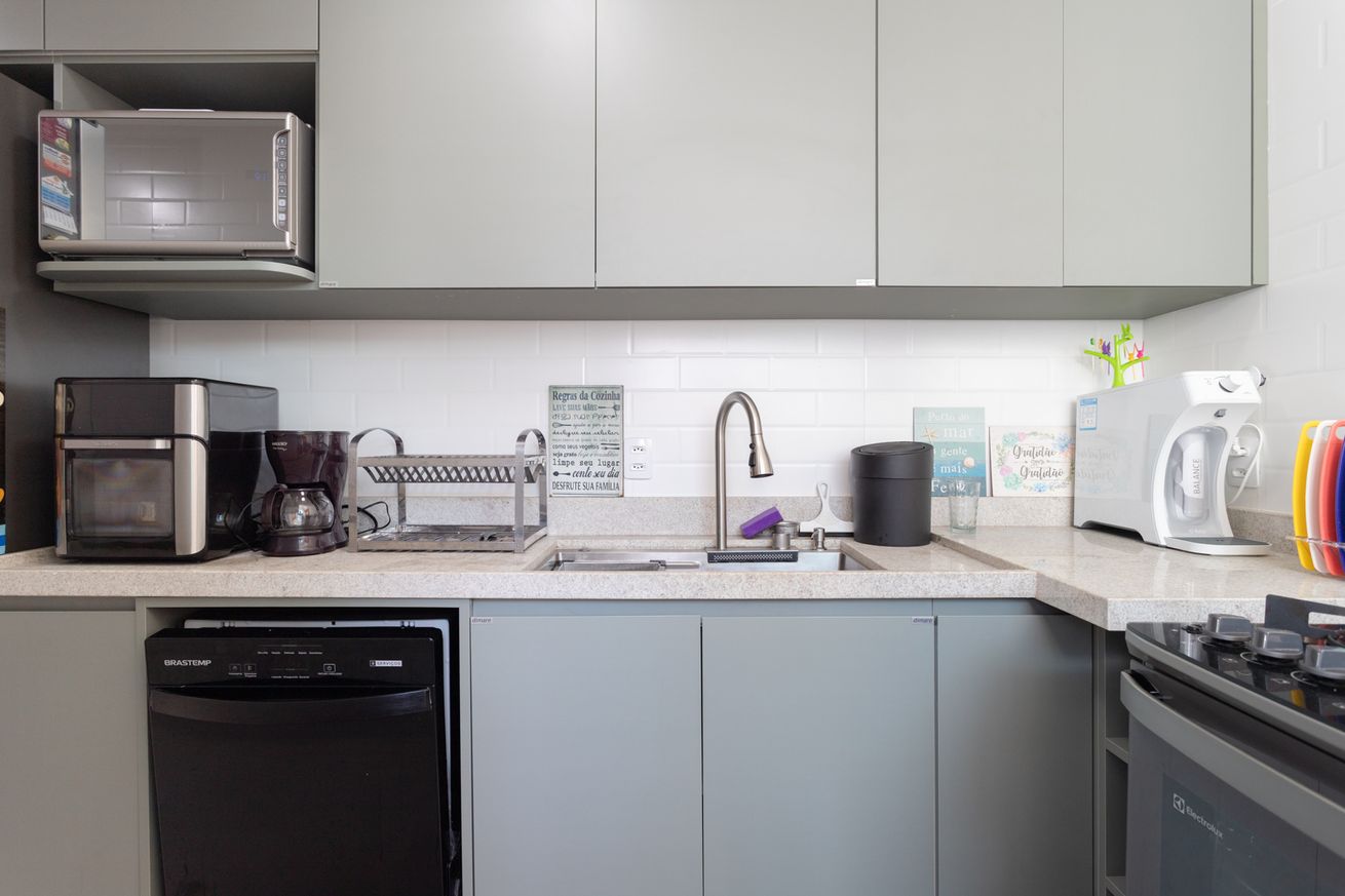 Cozinha com ótimo espaço de circulação, prática e funcional