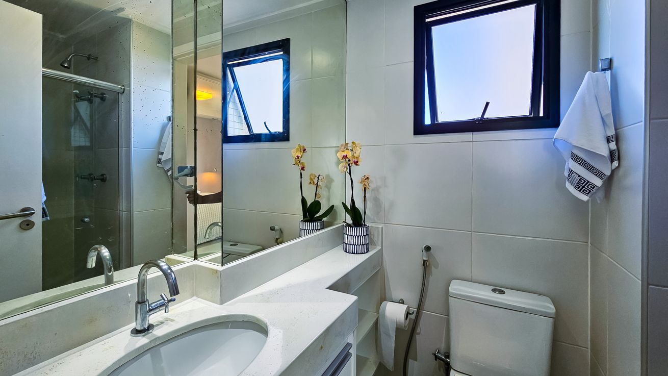 - 3 banheiros com chuveiro a gás, boxes de vidro e secador de cabelo