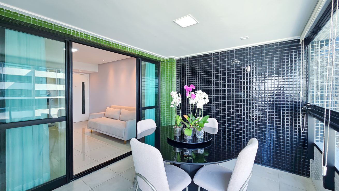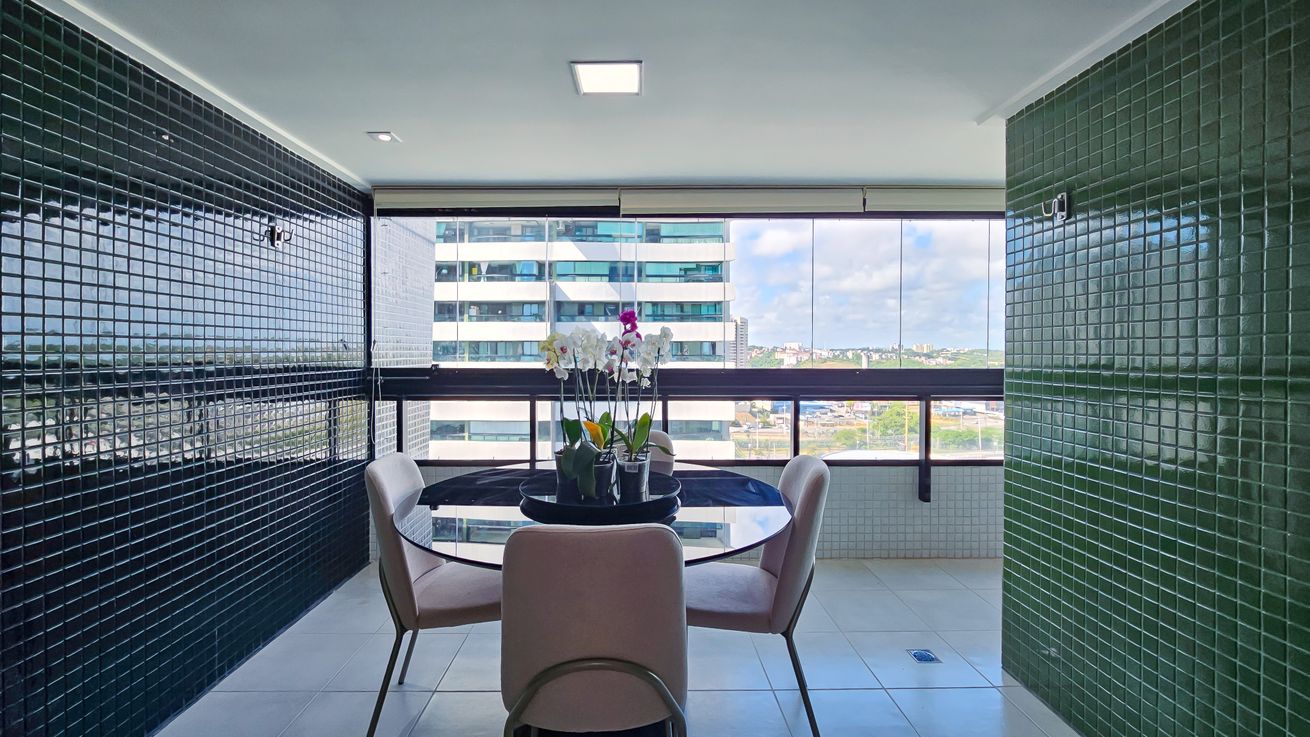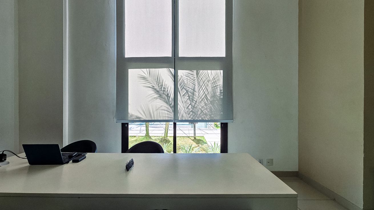 - Varanda integrada com mesa, cadeiras, persiana, sistema Reiki e escrivaninha