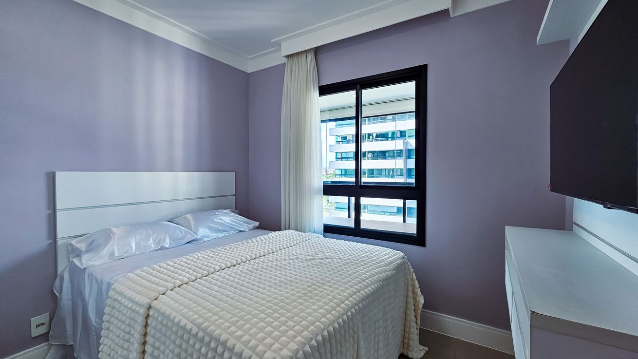- Quarto 2 com cama de casal, ar-condicionado, armário, Smart TV e cortina