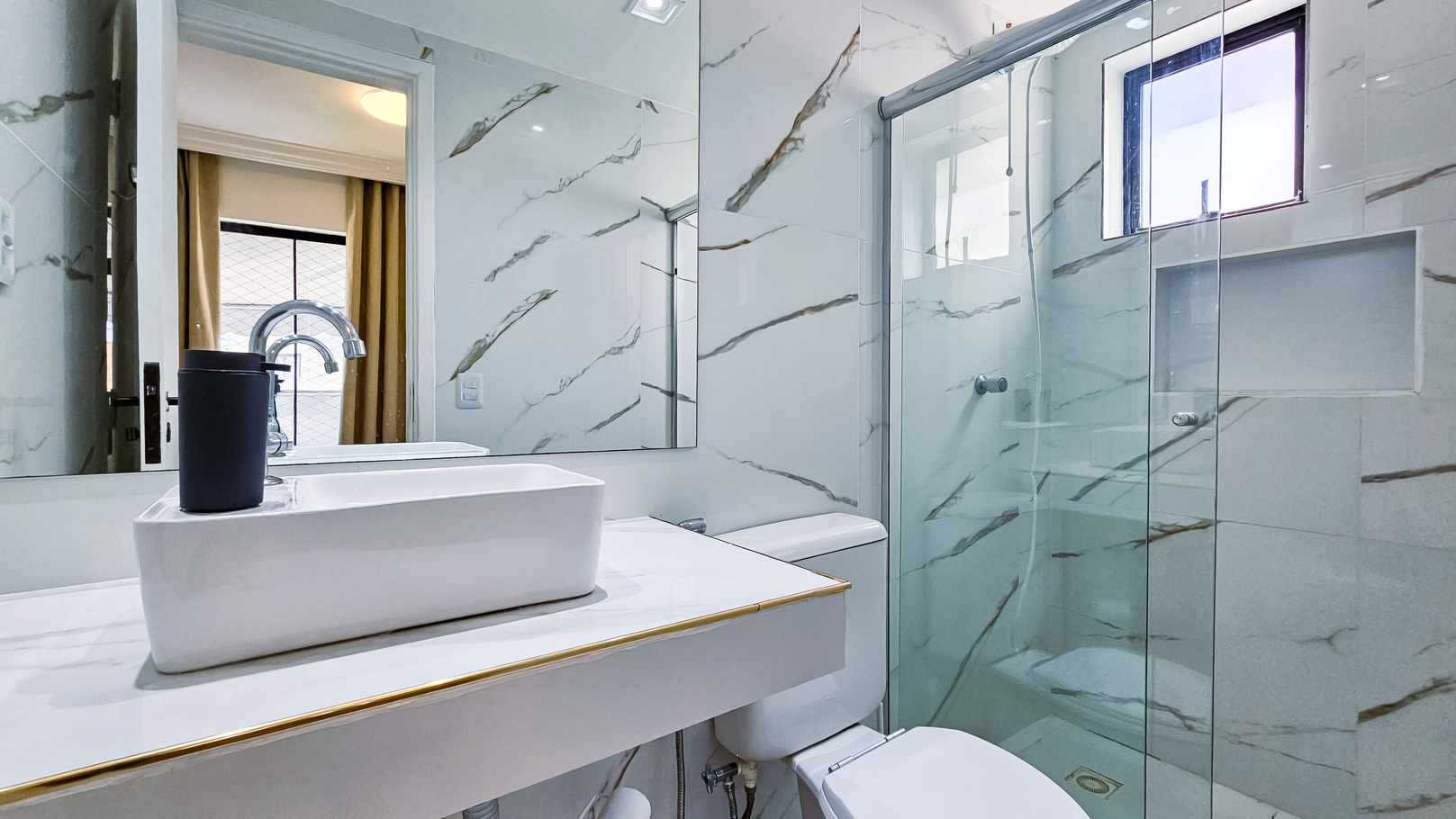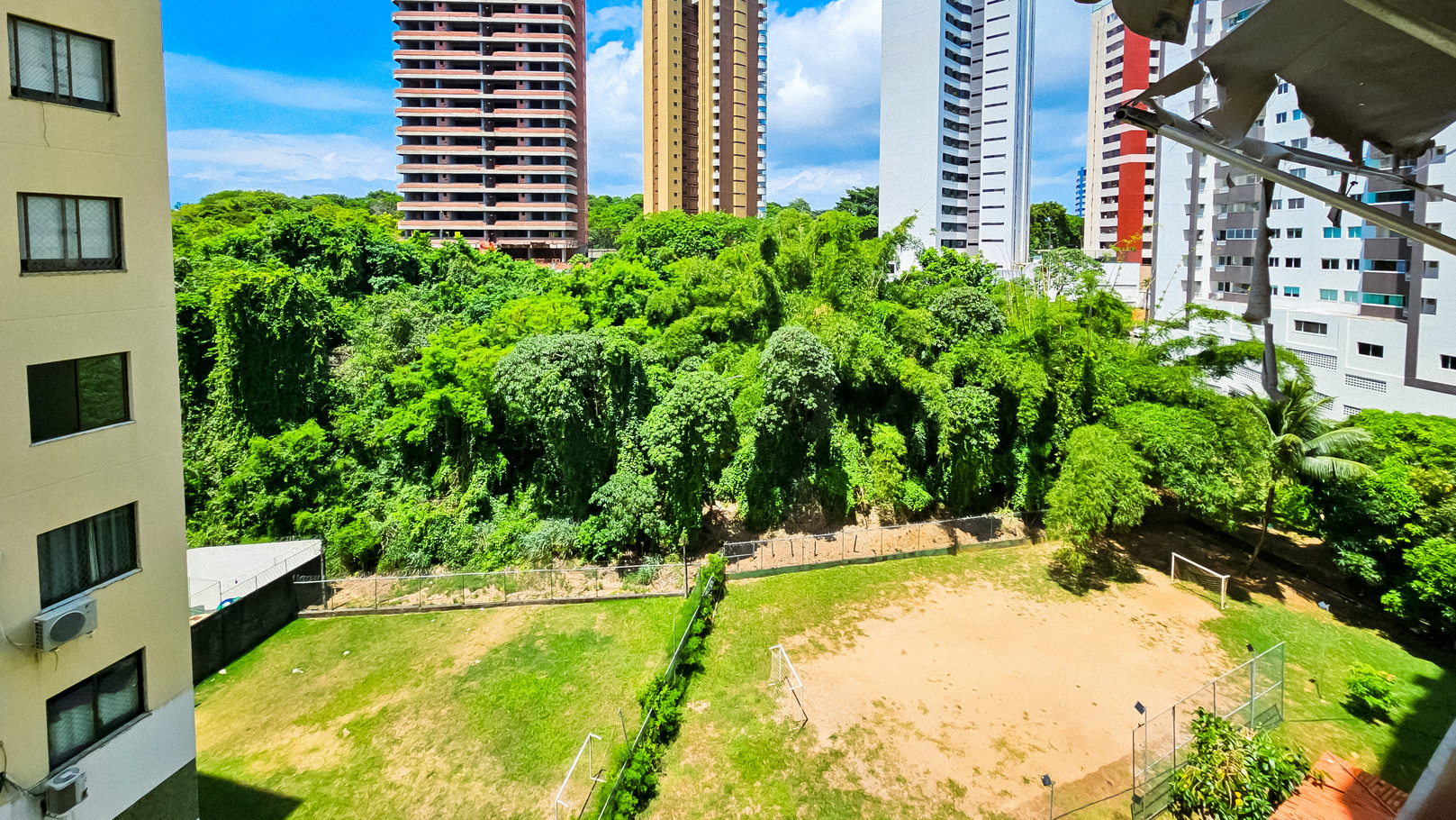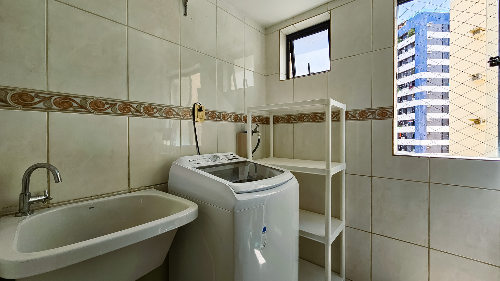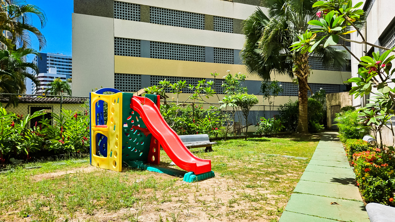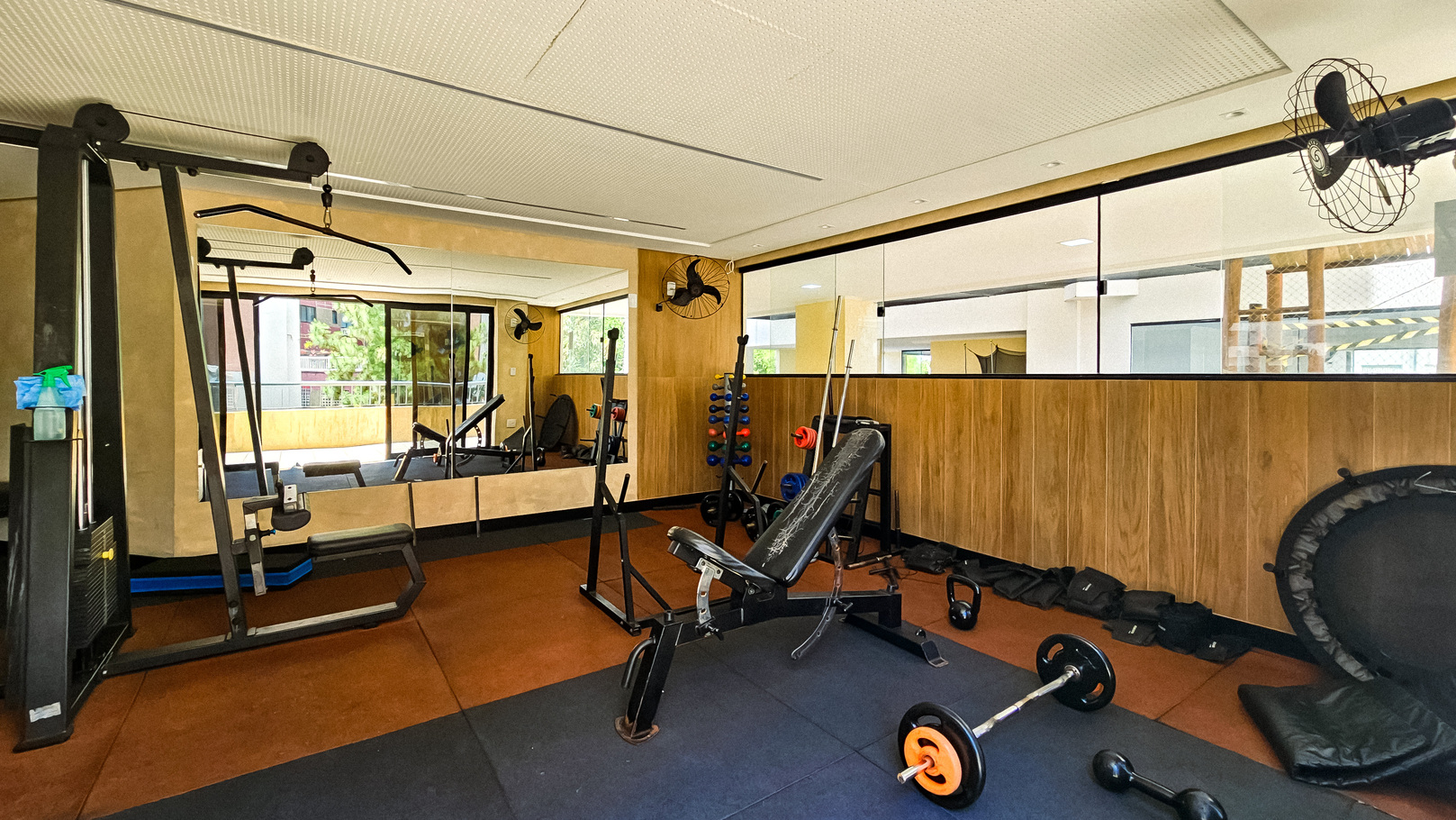 - Área de lazer no condomínio com piscina, academia, churrasqueira, quadra esportiva, salão de jogos e terraço