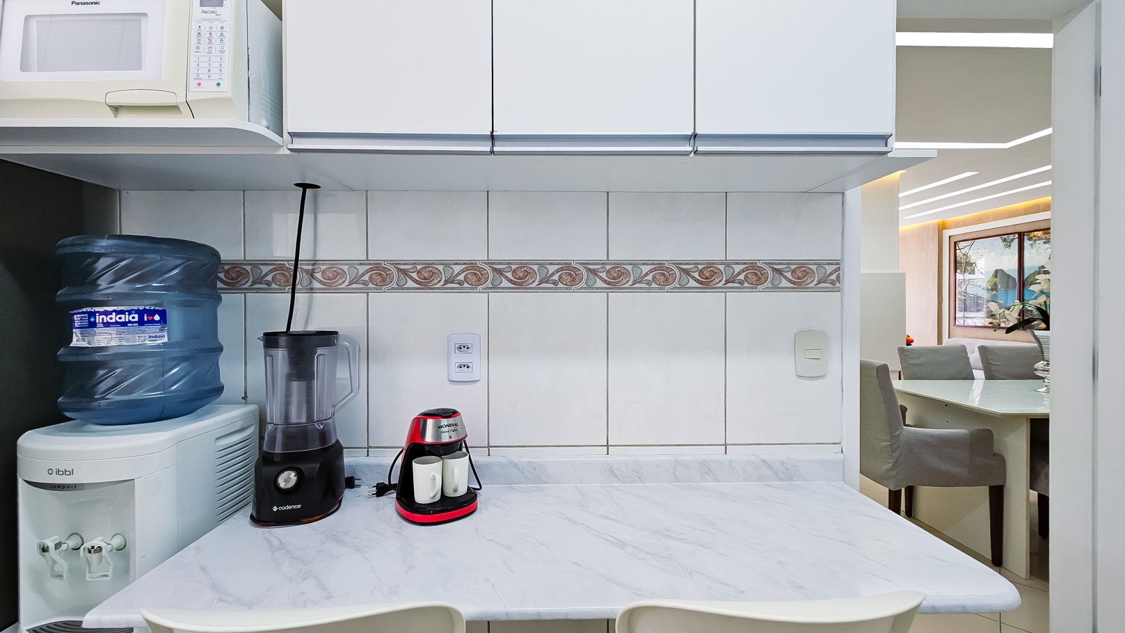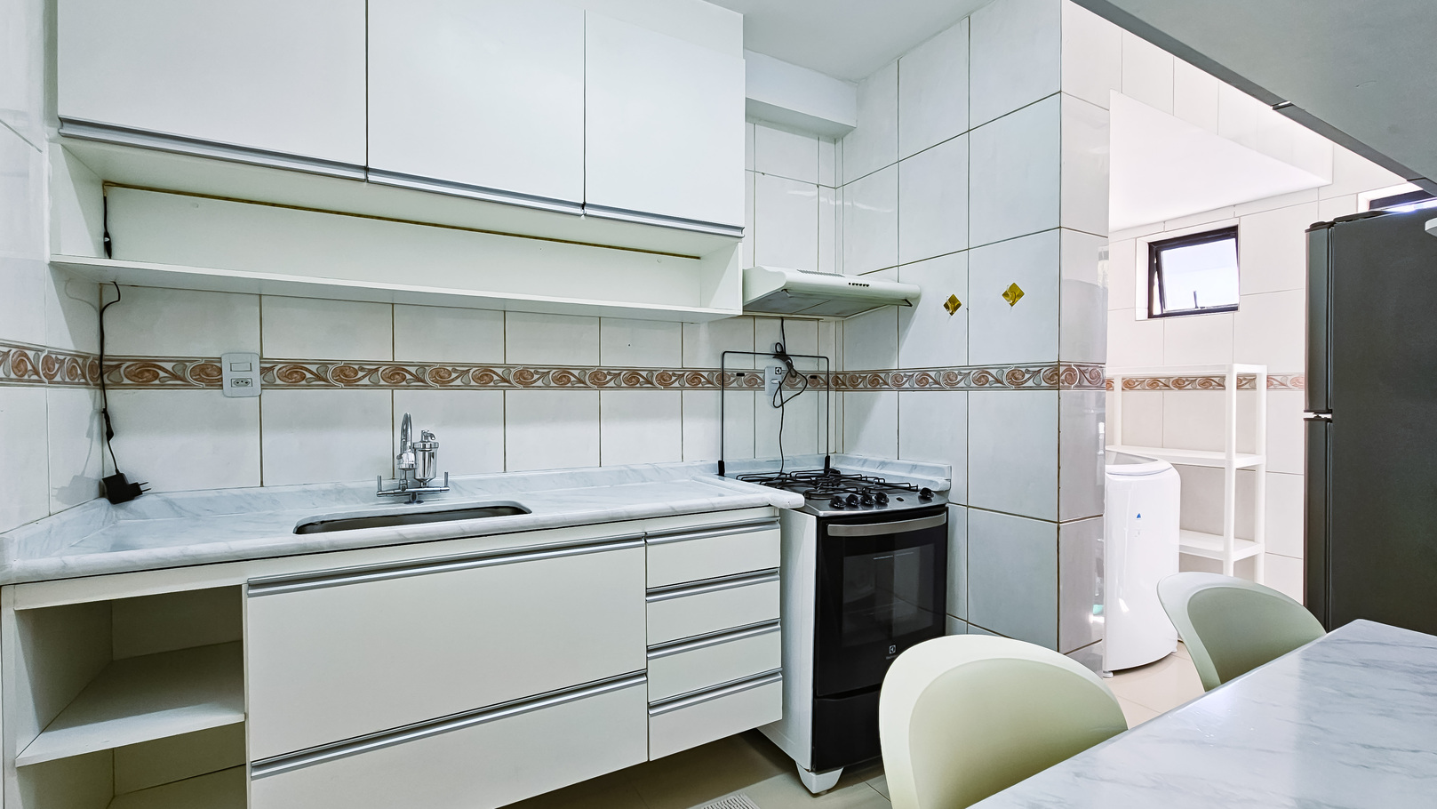 - Cozinha equipada com fogão, forno, geladeira, micro-ondas, cafeteira, airfryer, liquidificador, sanduicheira e utensílios completos para preparo de refeições(exceto óleo e sal)