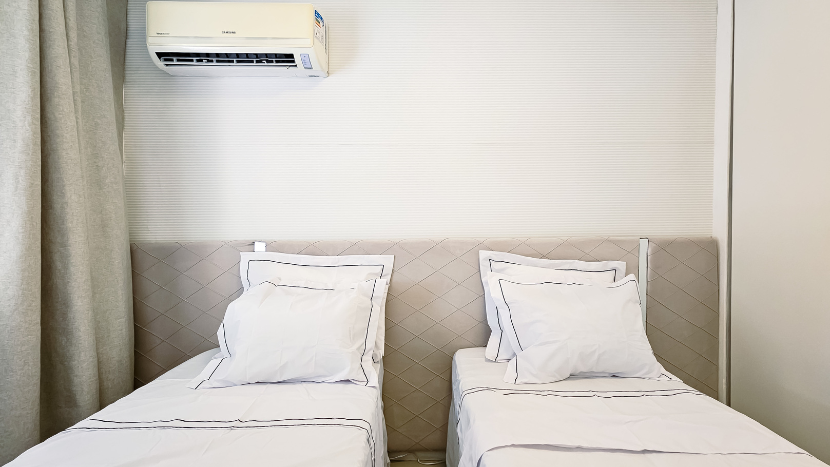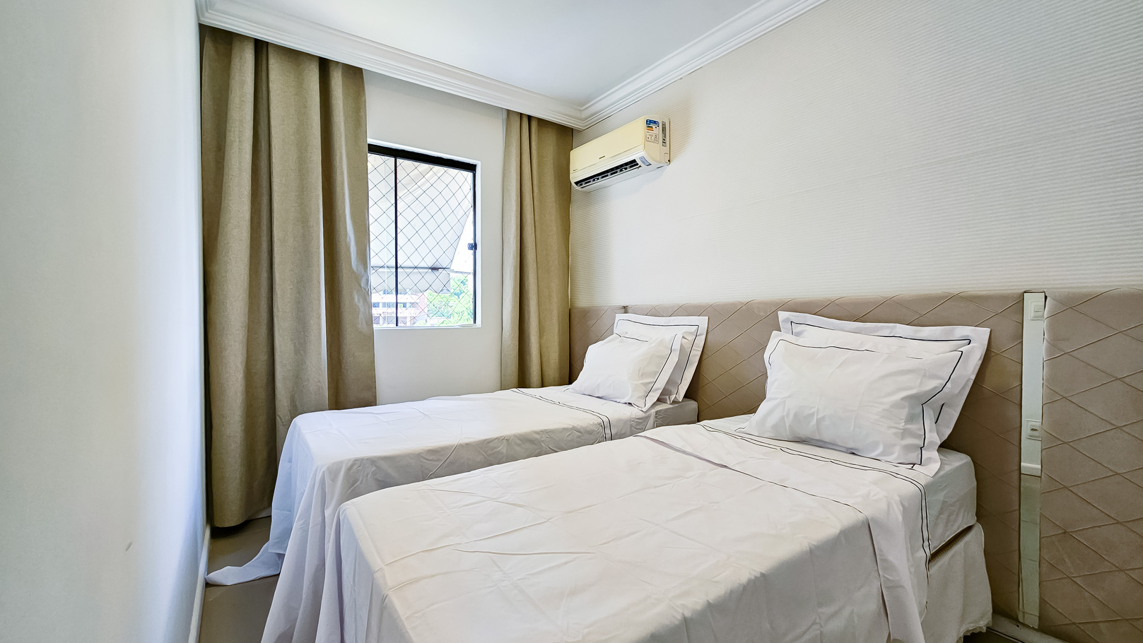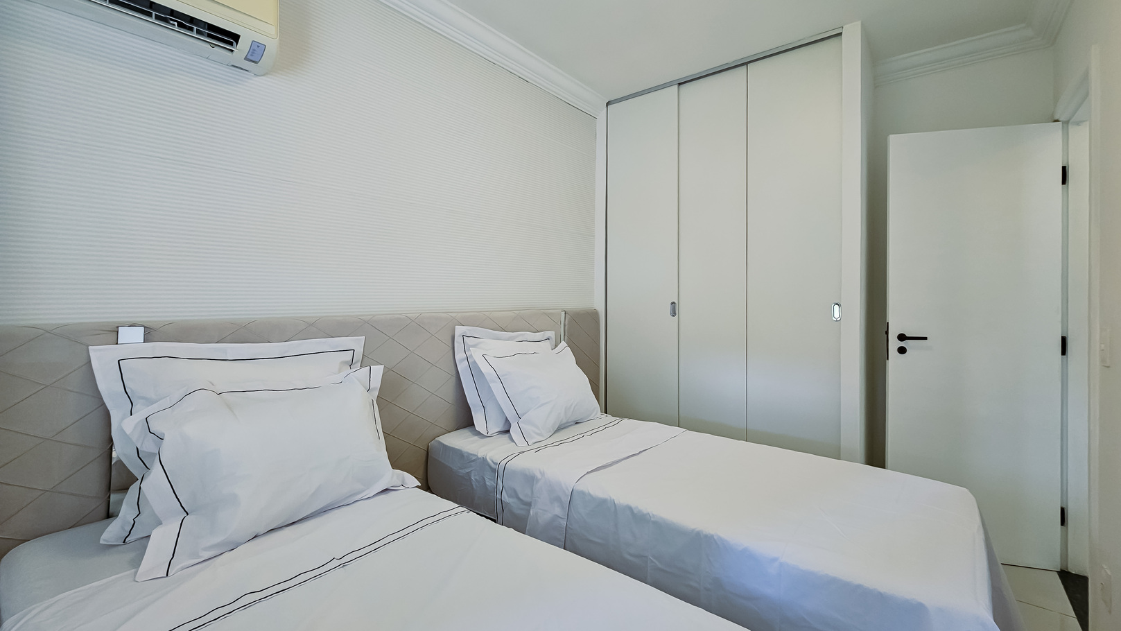 - Quarto 2: 2 camas de solteiro, ar-condicionado e armário
