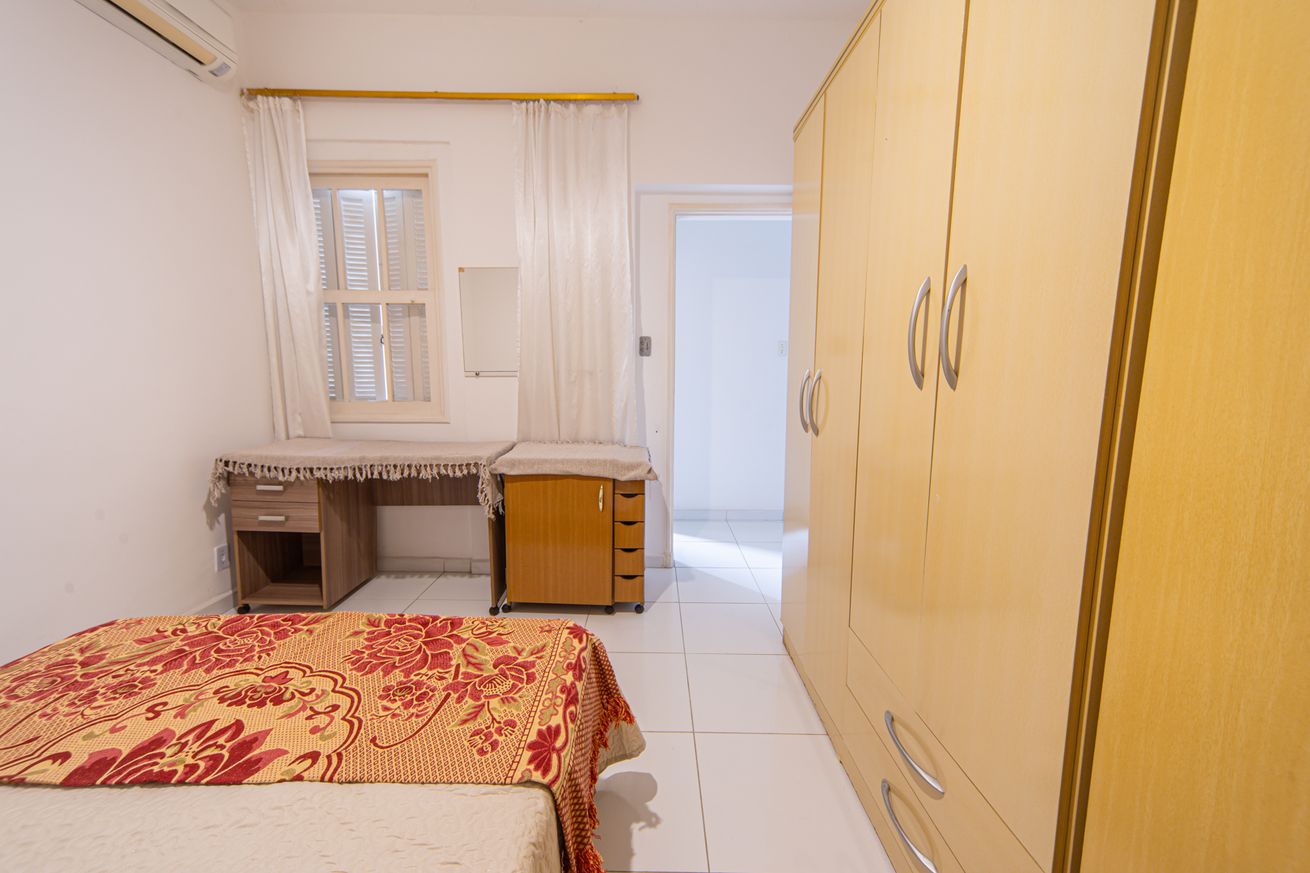 - Quarto 2: cama de casal, ar-condicionado, armário, ventilador de teto