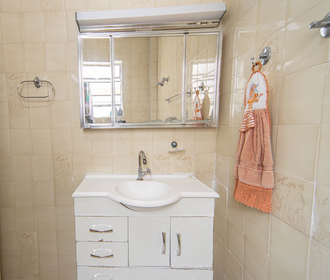 Bancada com pia e espelho trazendo mais funcionalidade ao banheiro