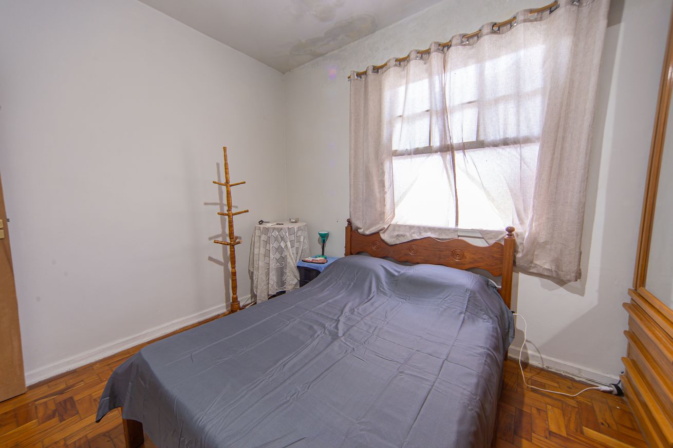 - Quarto 2 com cama de casal, guarda-roupa e ventilador de teto