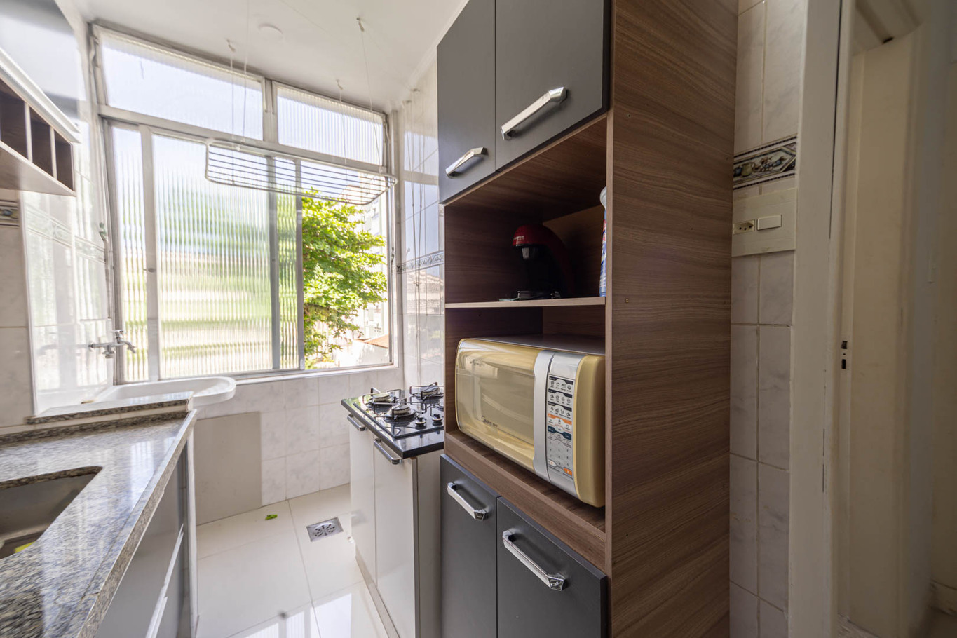 - Cozinha equipada com fogão, forno, geladeira, micro-ondas, freezer e utensílios(exceto óleo e sal)