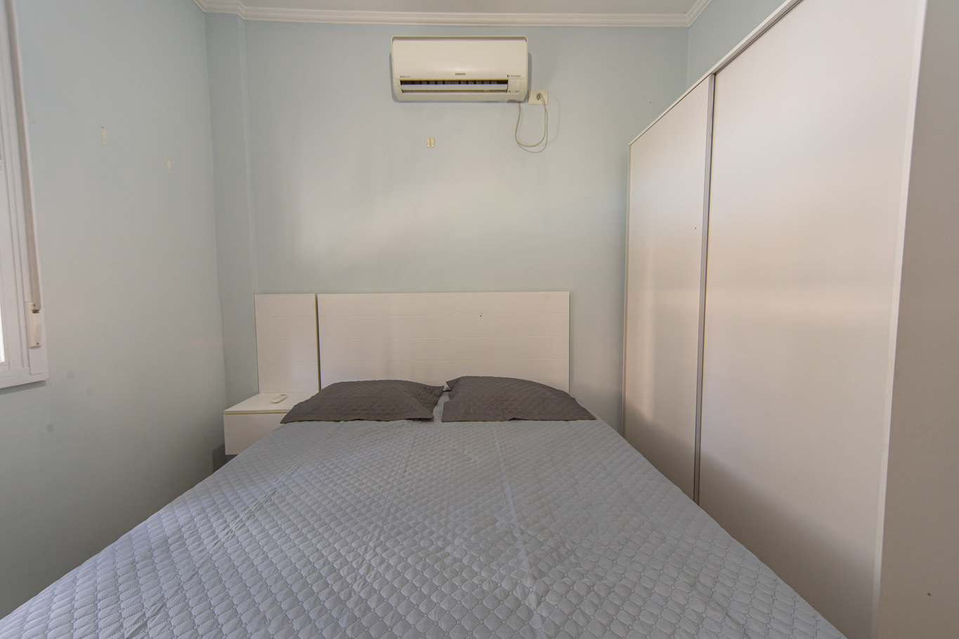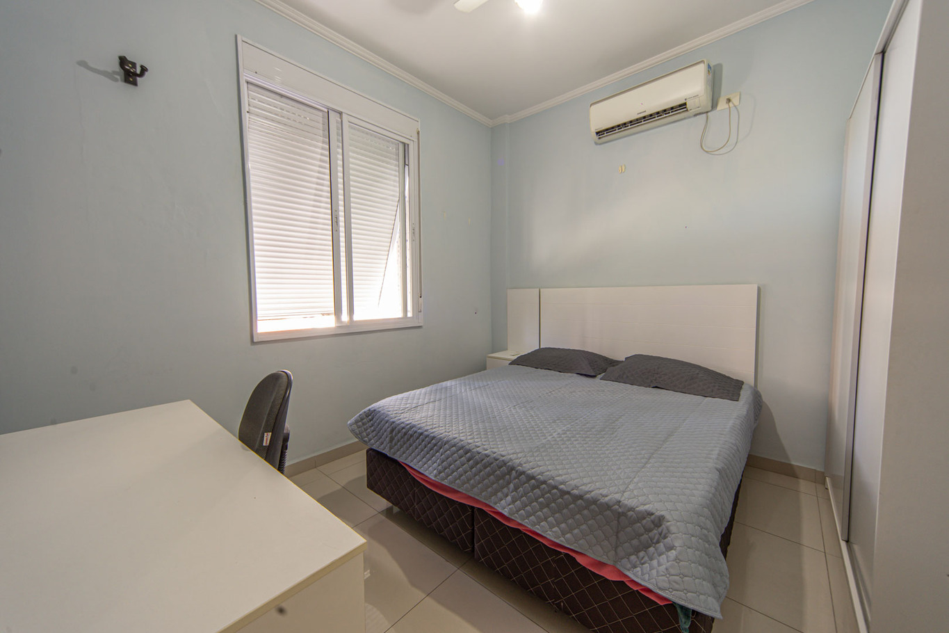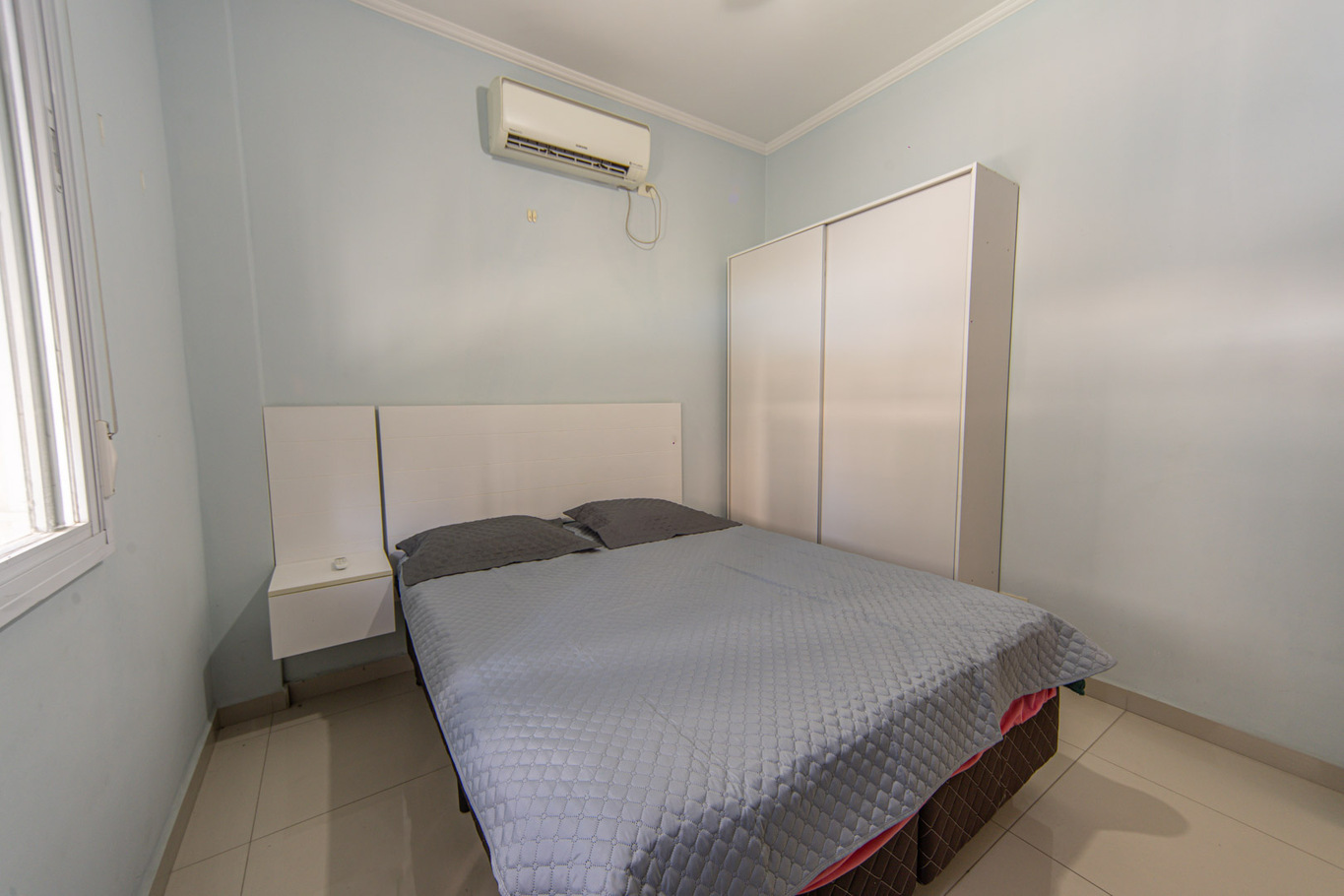 - Quarto com cama de casal, ar-condicionado, ventilador de teto e armário