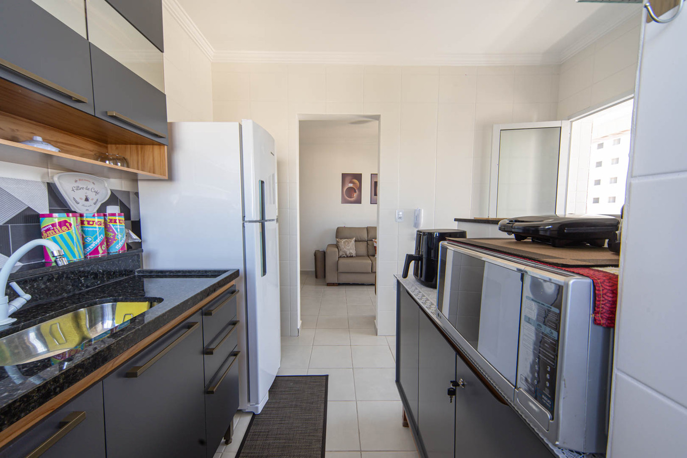 Aproveite um apartamento completo a 240 metros da faixa mais movimentada da Vila Mirim, com ar-condicionado nos dois quartos para noites frescas depois do calor do litoral. A cozinha equipada facilita desde o café antes da praia até refeições rápidas. A sala com TV a cabo e sofá-cama atende bem grupos maiores, enquanto a vaga coberta e o smartlock garantem praticidade total no check-in. Garanta sua estadia na Praia Grande!