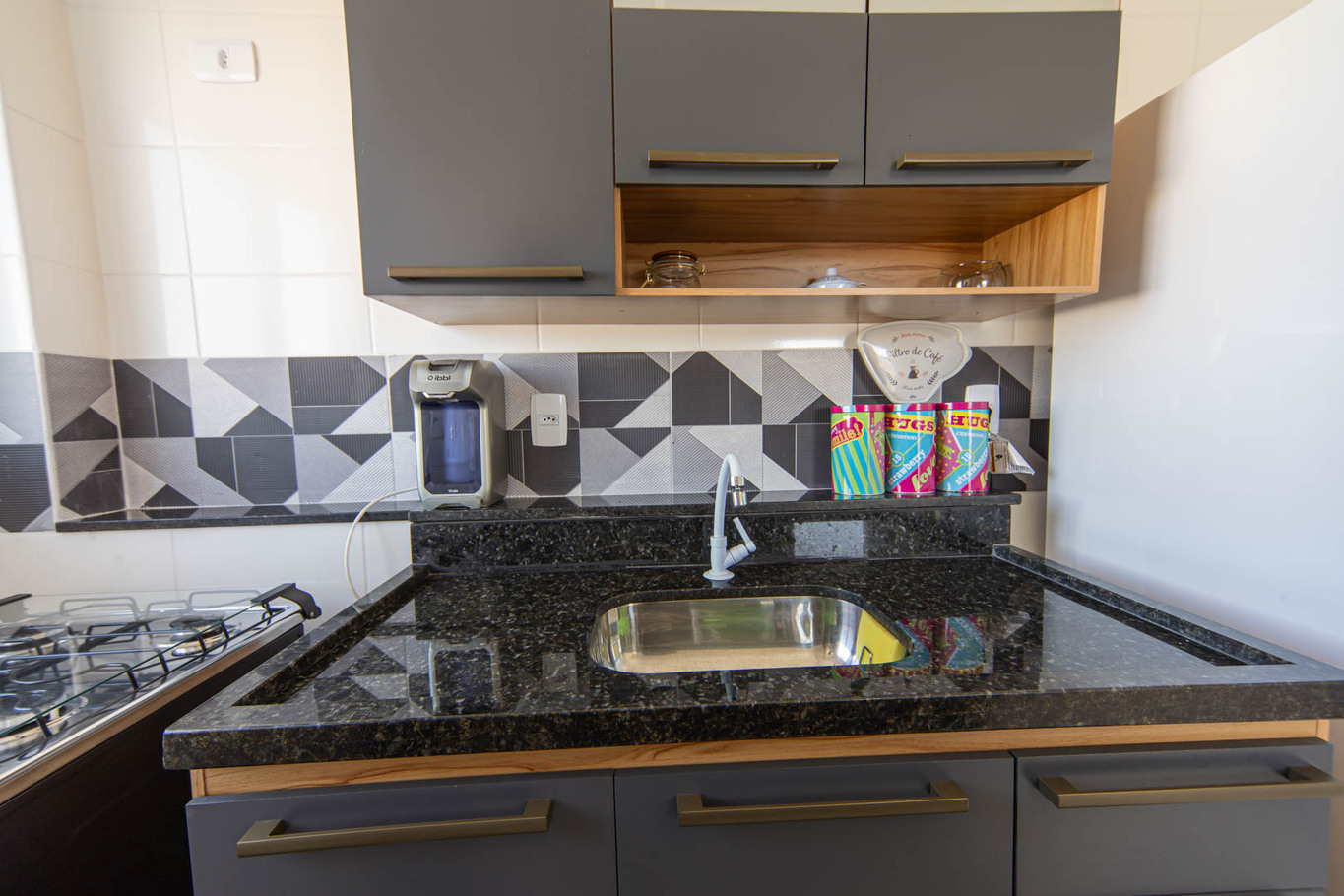 - Cozinha equipada: geladeira, fogão, micro-ondas, freezer, fritadeira, torradeira, utensílios (exceto óleo e sal)
