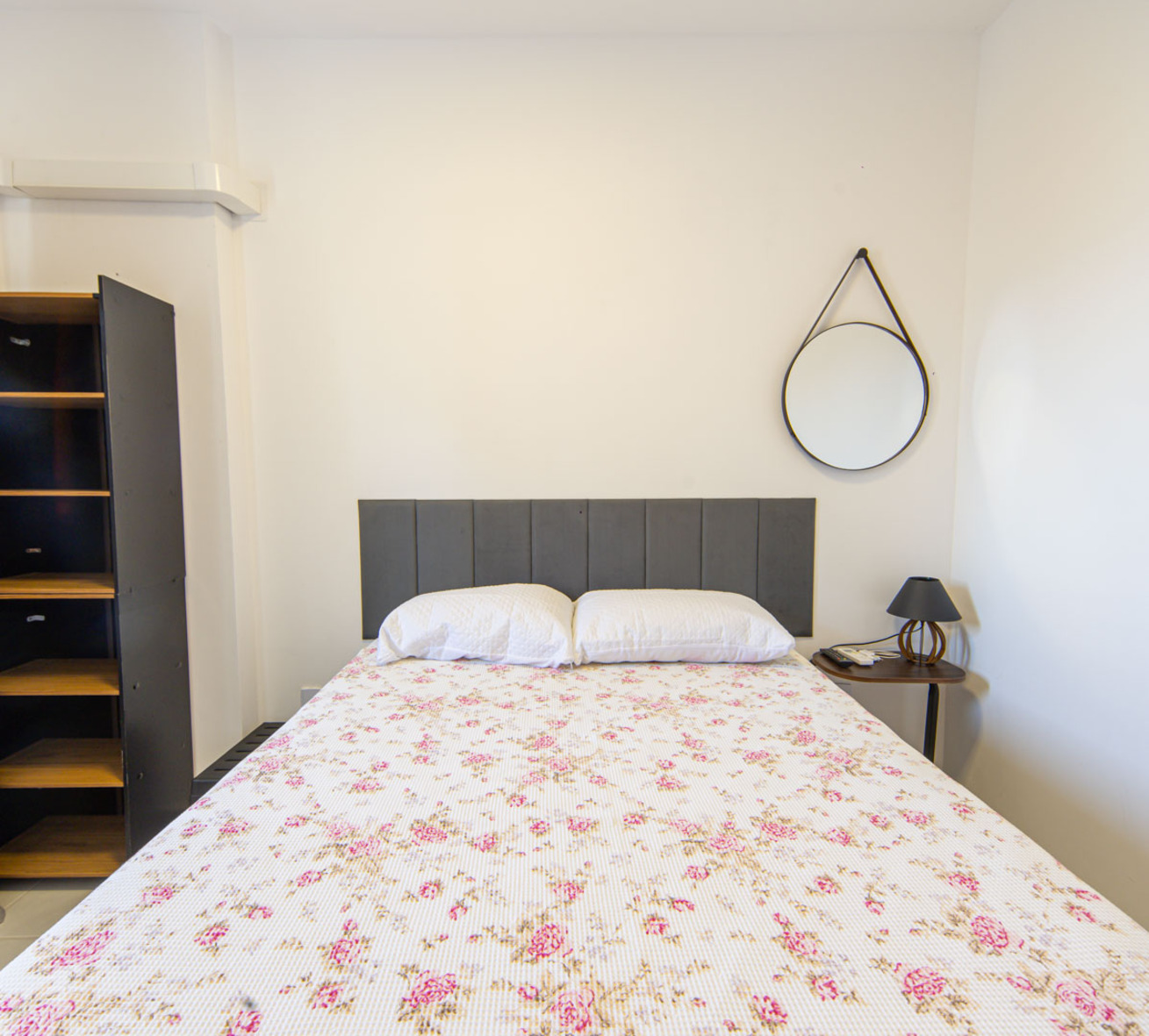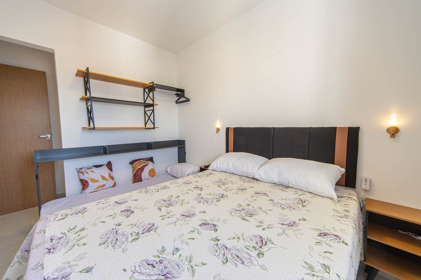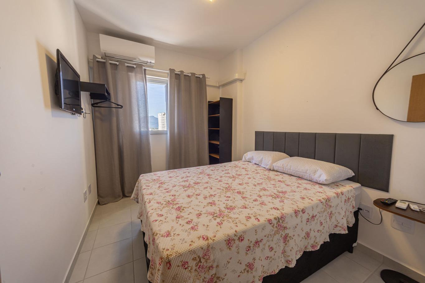 - Quarto 1: cama de casal, cama de solteiro retrátil, TV, armário
