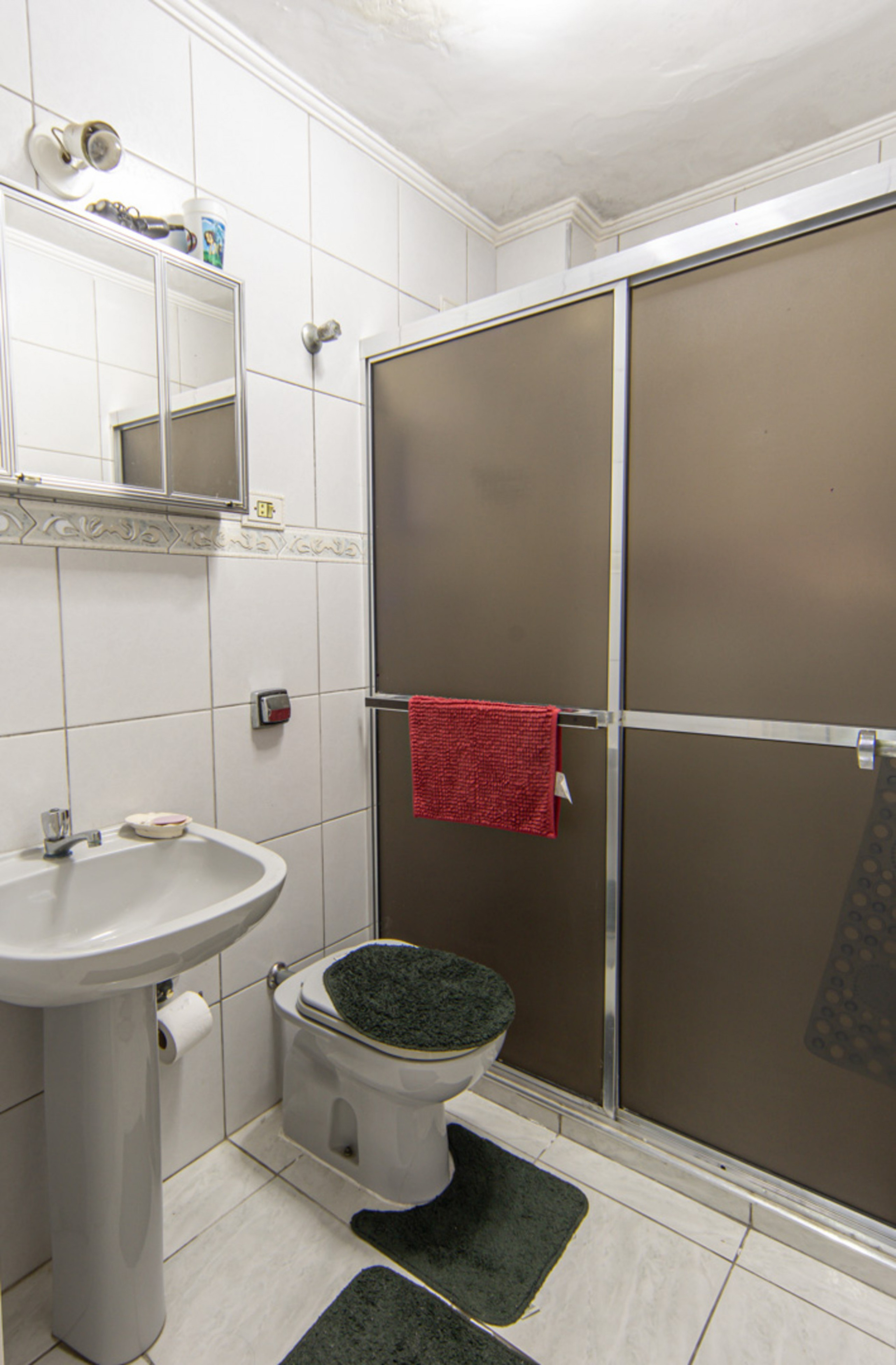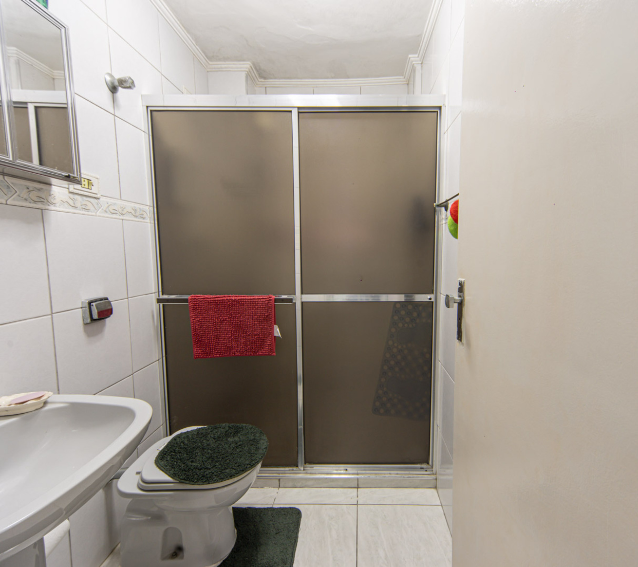 - Banheiro com chuveiro elétrico e box de vidro/acrílico