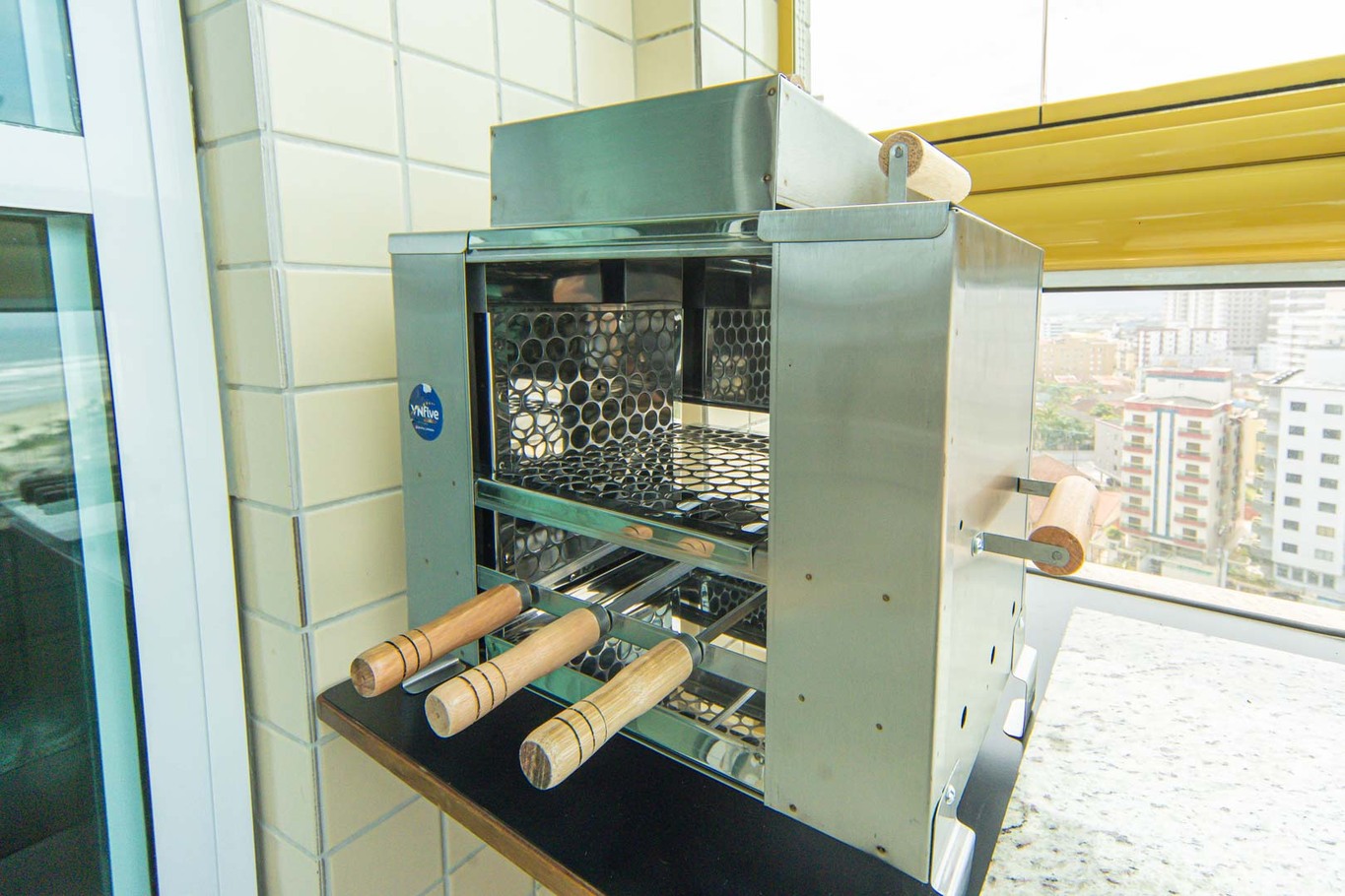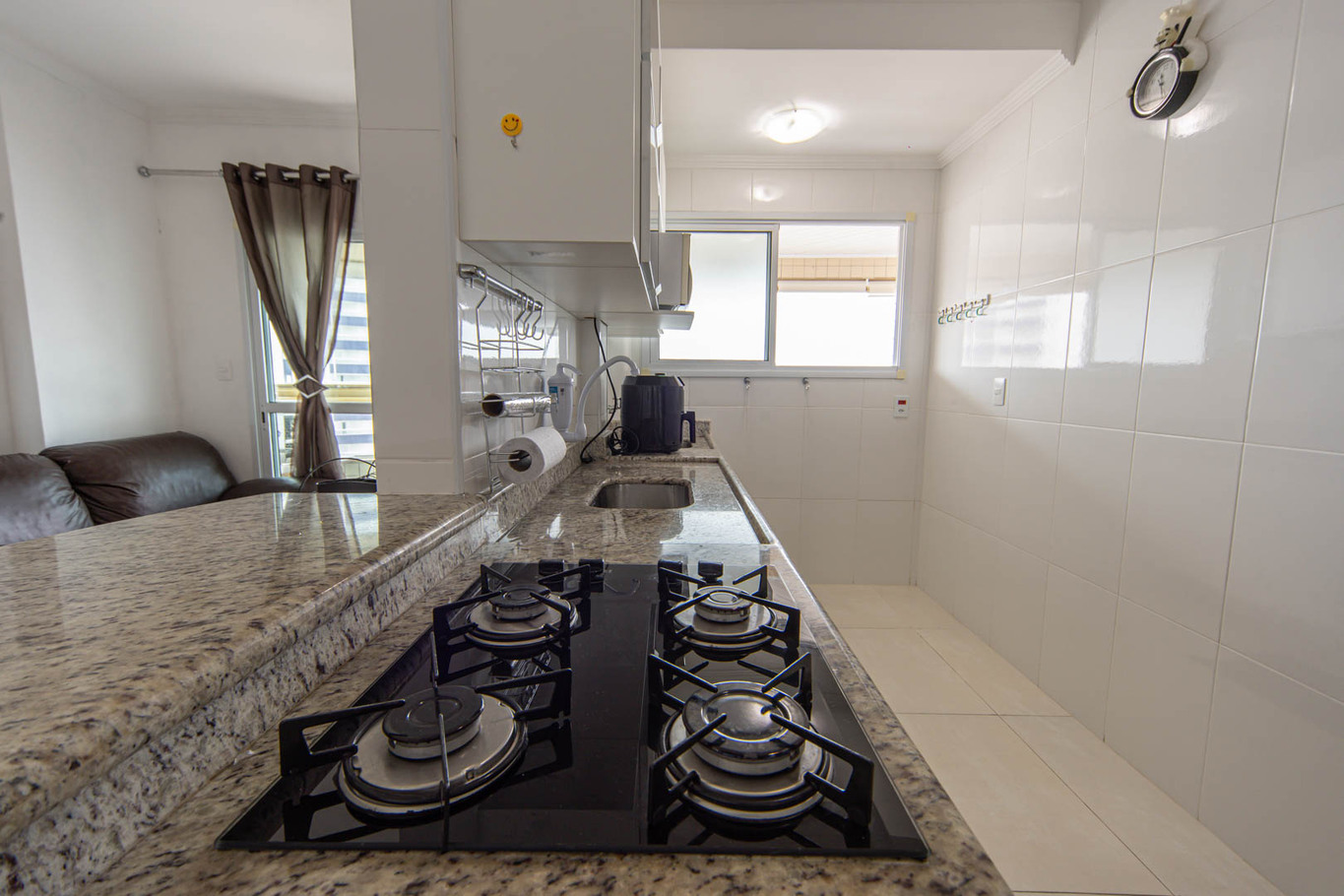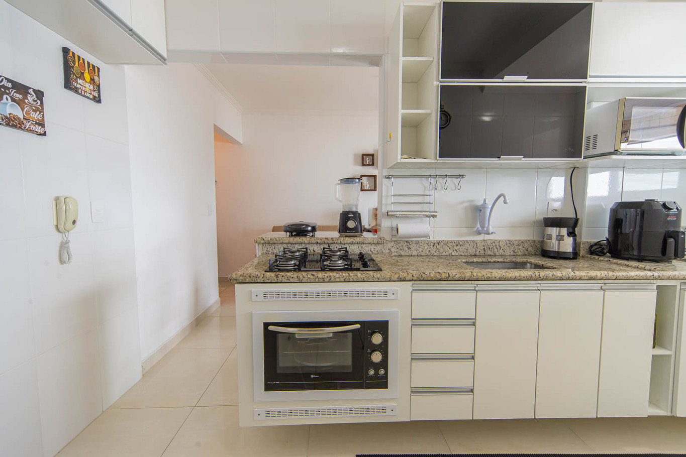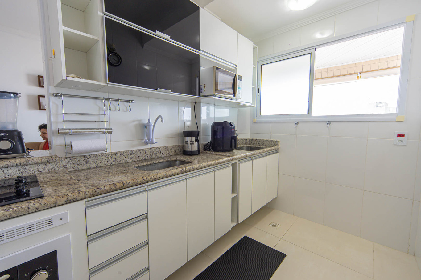 - Cozinha completa com geladeira, fogão, microondas, forno, batedeira, espremedor elétrico de laranja e limão, sanduicheira, fritadeira e utensílios diversos(exceto óleo e sal)