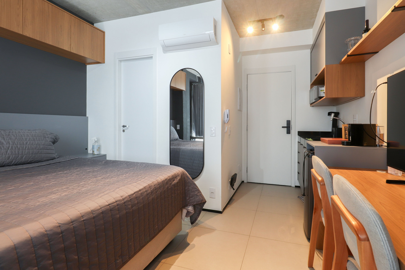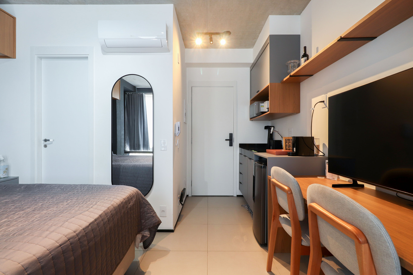 Localizado no coração da Vila Mariana, este flat moderno combina conforto, praticidade e excelente localização em um só lugar. O espaço é completo e funcional, com Wi-Fi, ar-condicionado, Smart TV e cozinha equipada para suas refeições. O sofá-cama acomoda mais dois hóspedes com conforto, e a lavanderia compartilhada do condomínio traz ainda mais praticidade para estadias curtas ou longas. Reserve e viva São Paulo com estilo e conveniência!