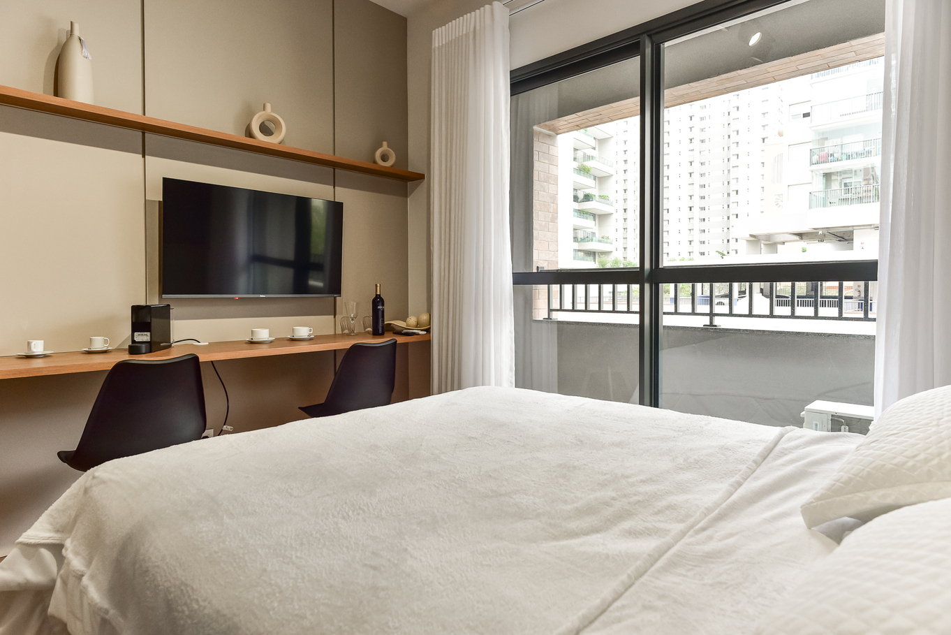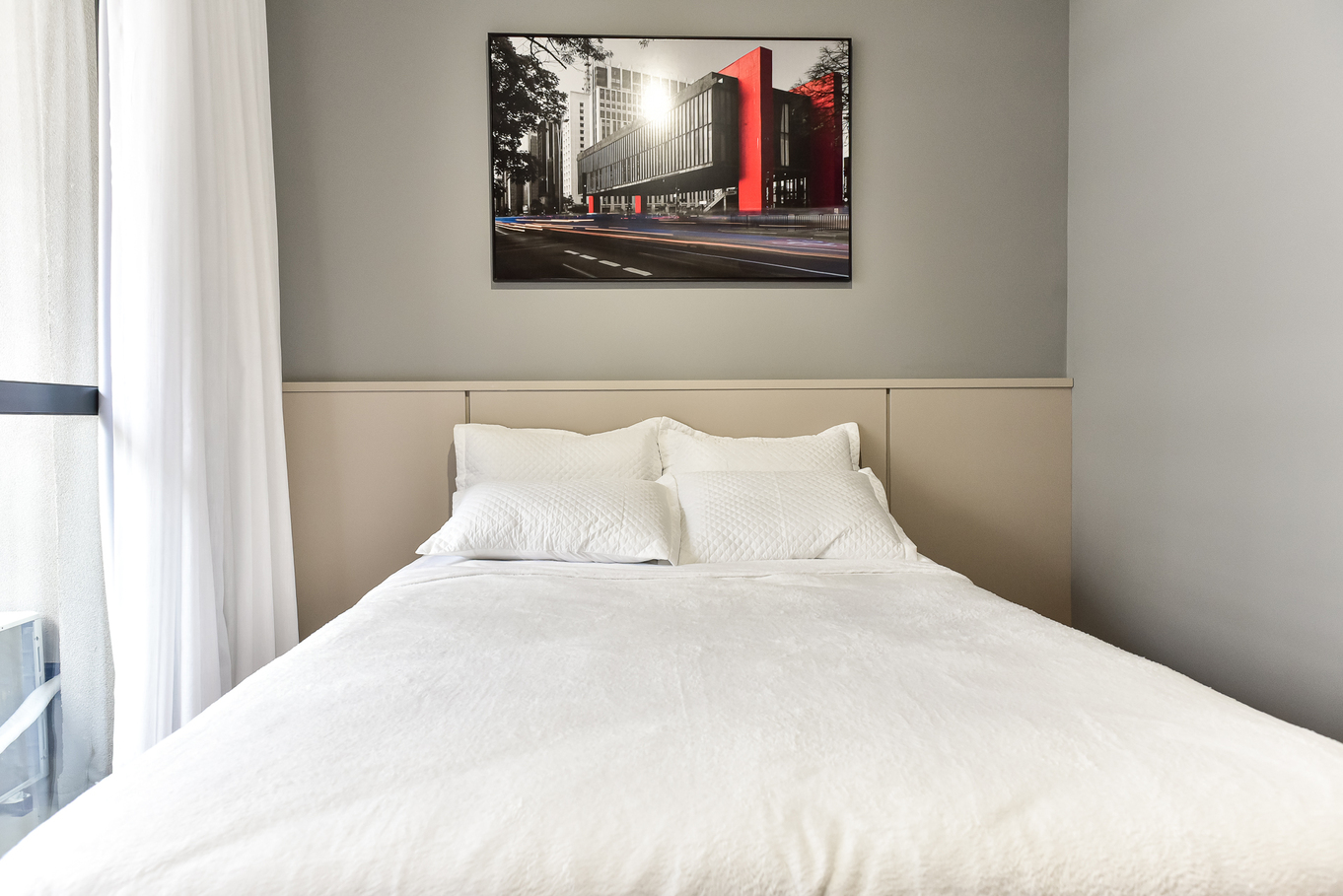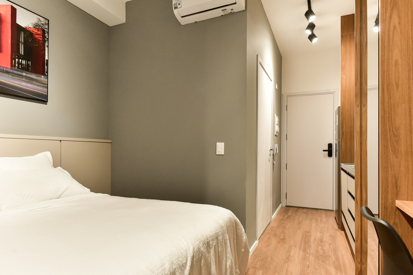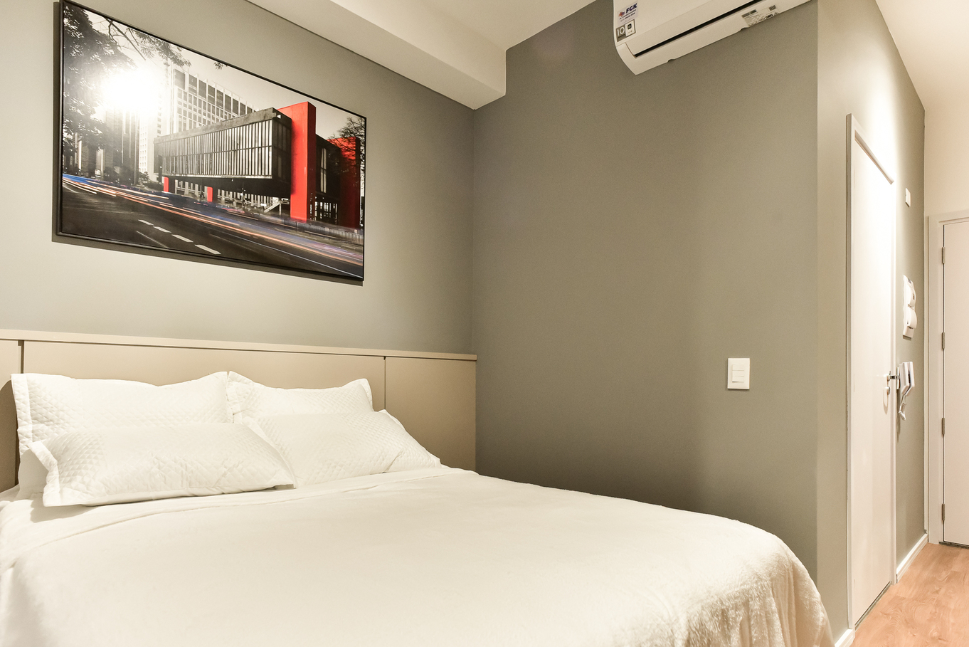 - Cama de casal, ar-condicionado, armário, Smart TV e edredom confortável
