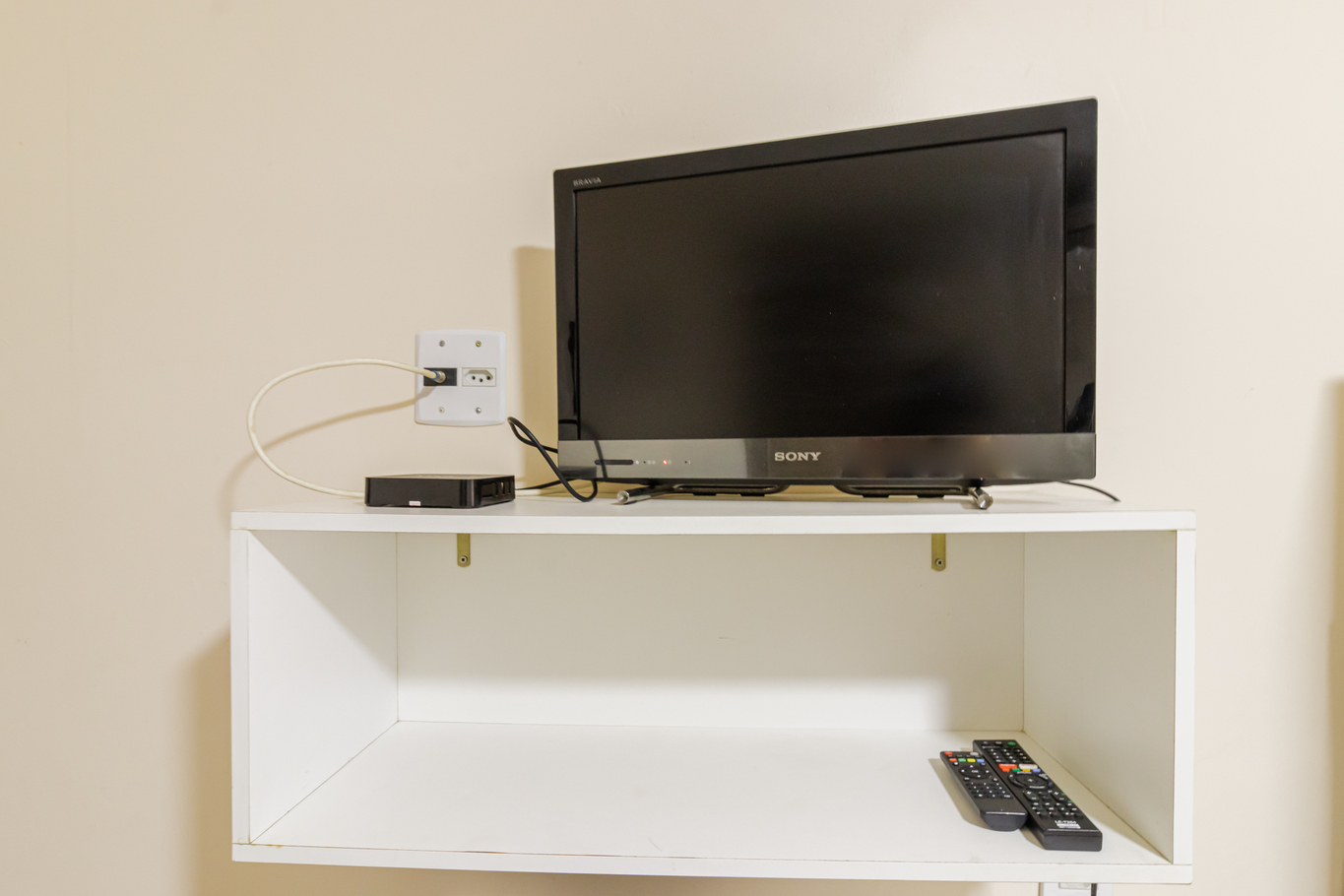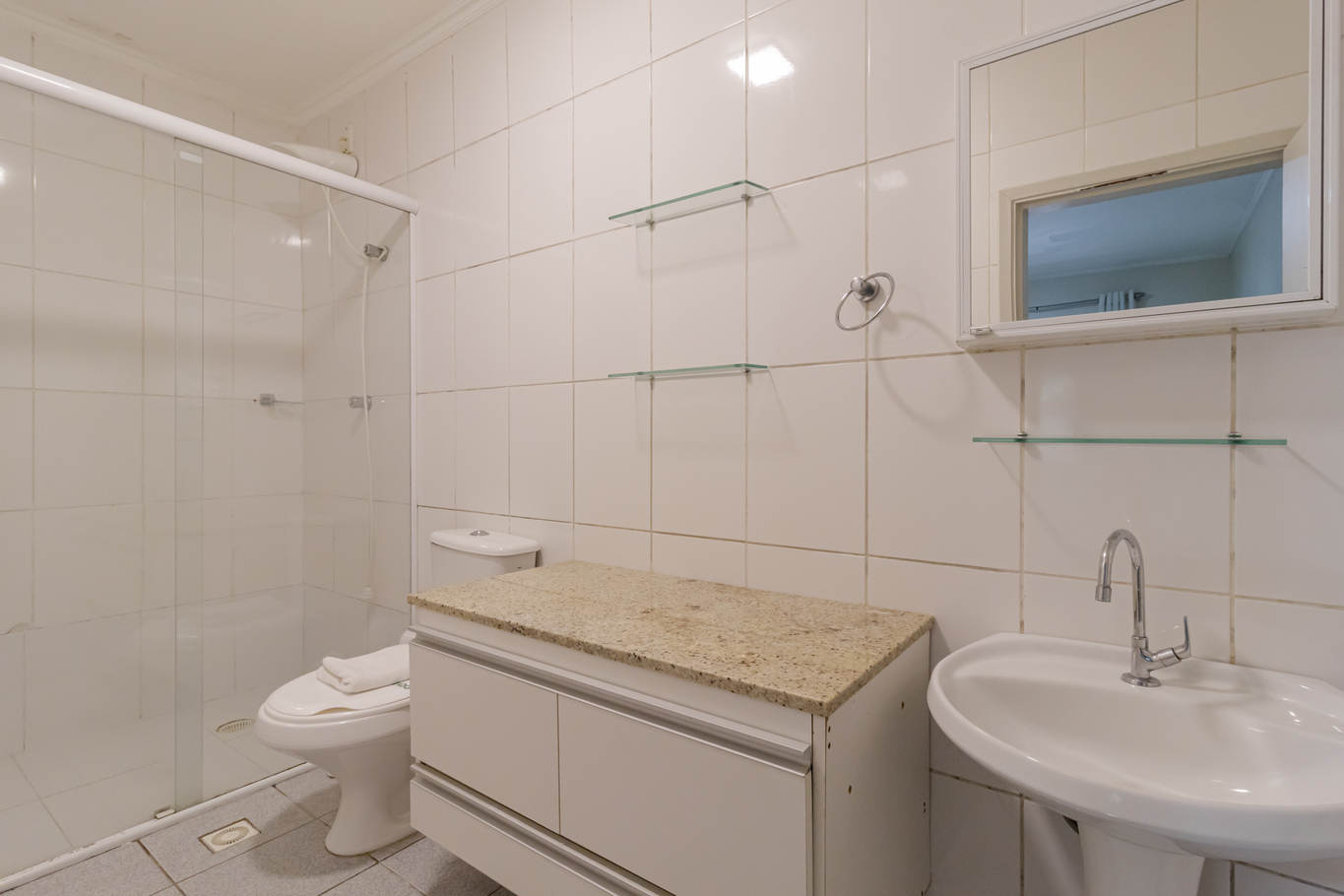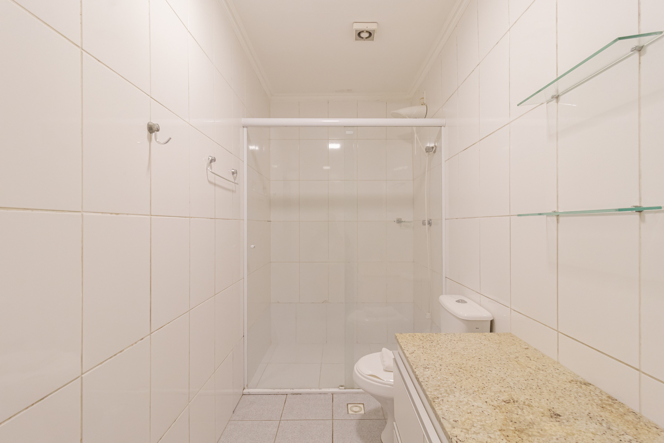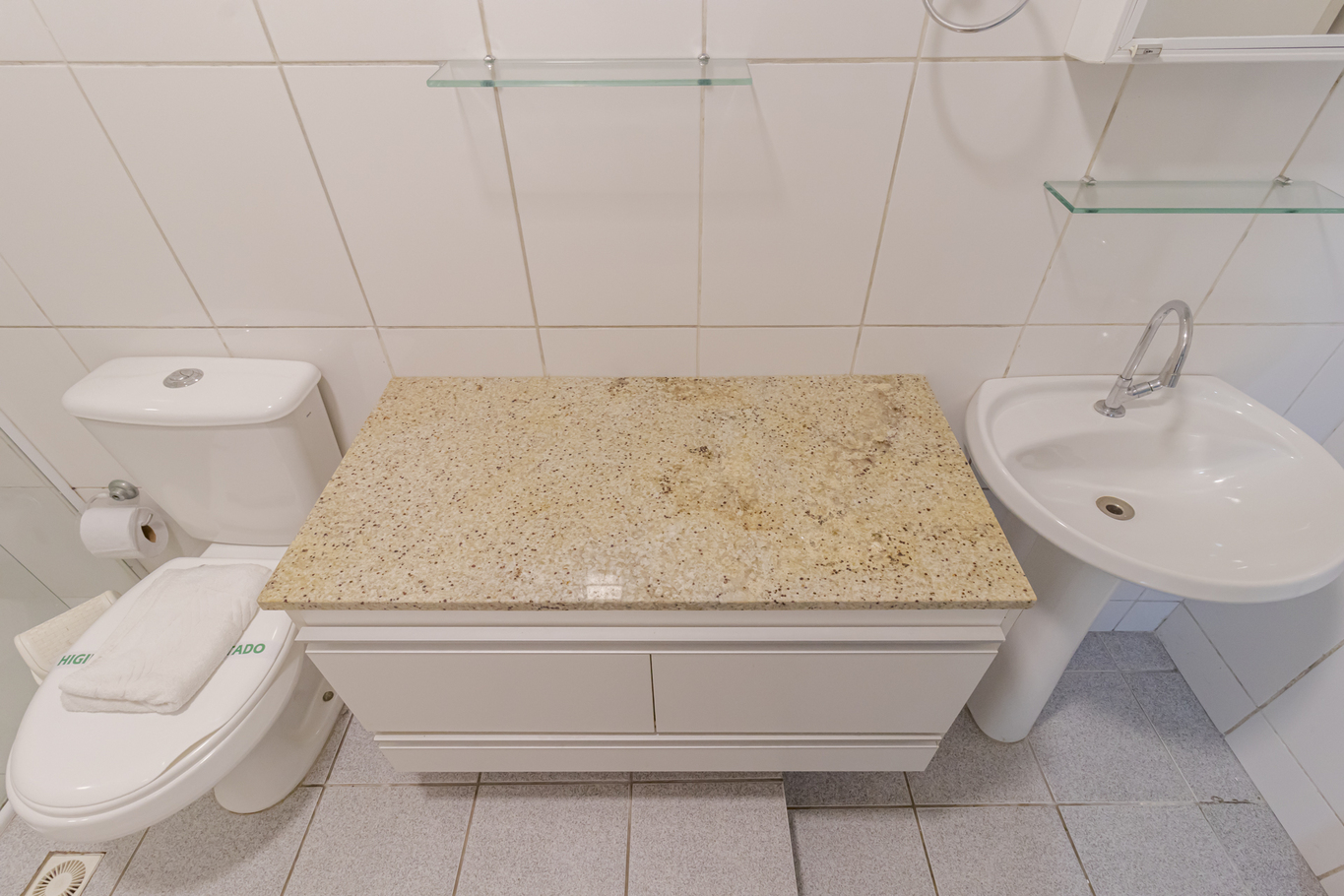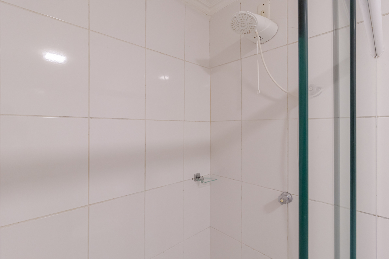 - Banheiro com chuveiro elétrico, box de vidro/acrílico e secador de cabelo (sob demanda)