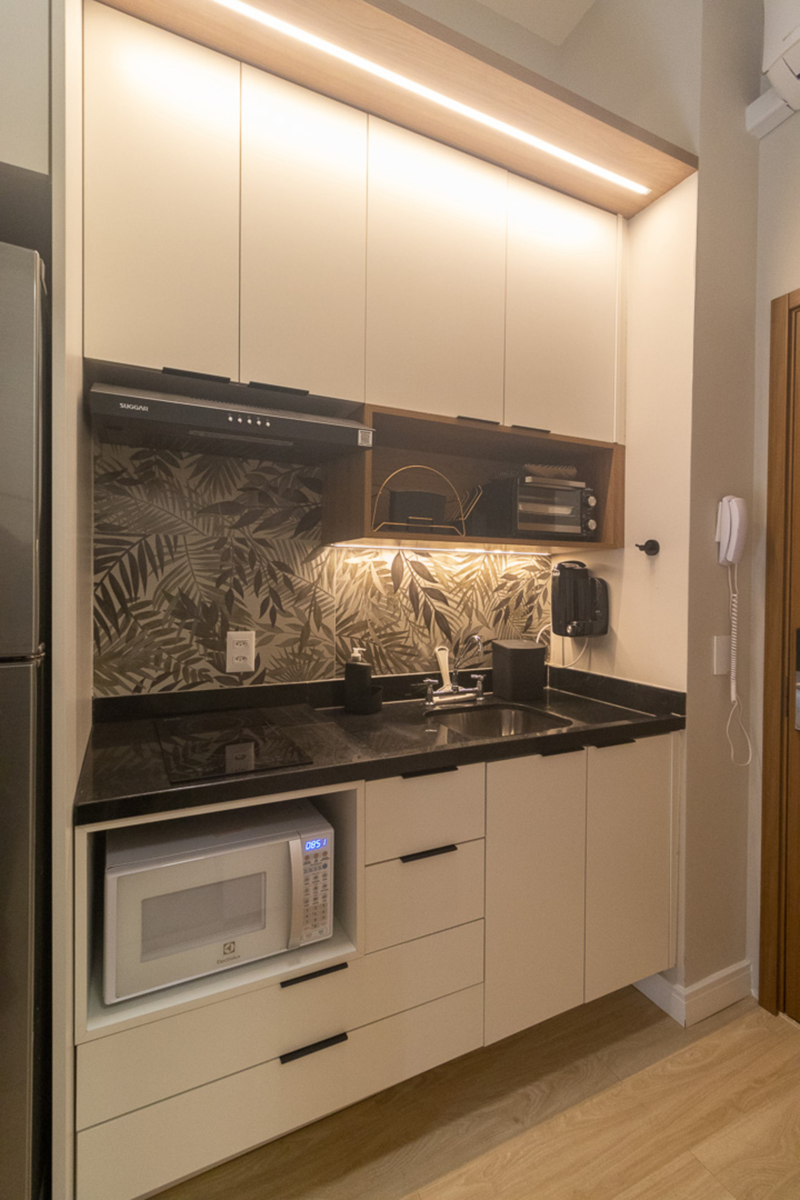 - Cozinha equipada com geladeira, fogão, microondas, forno e utensílios diversos(exceto óleo e sal)