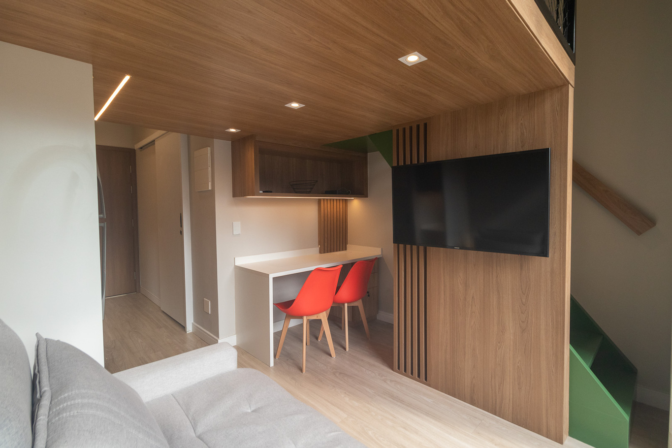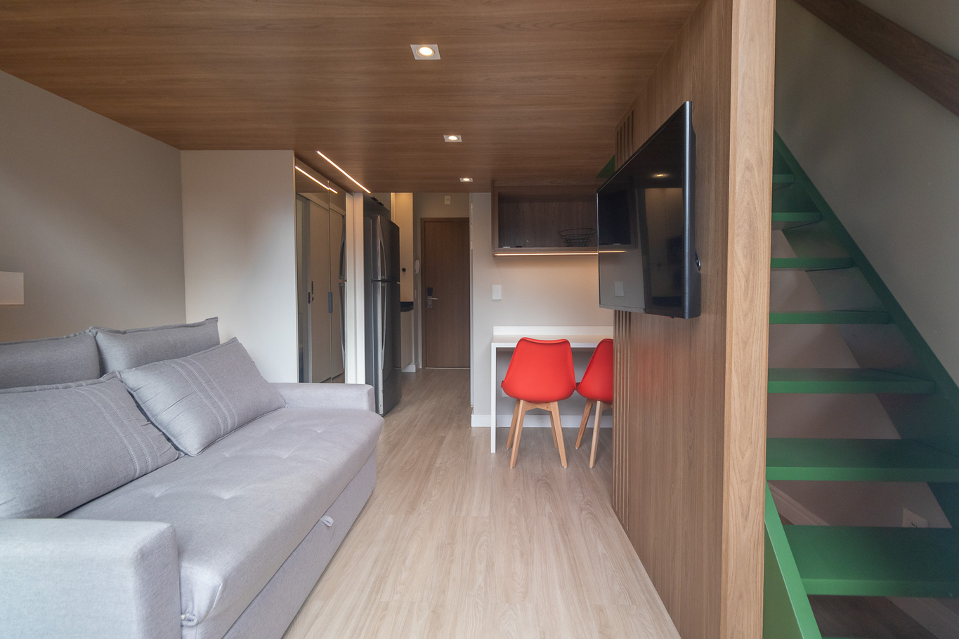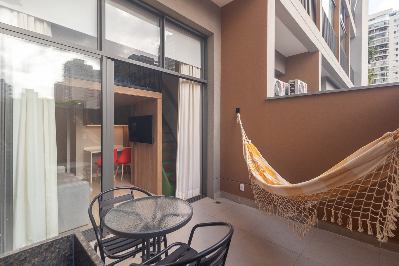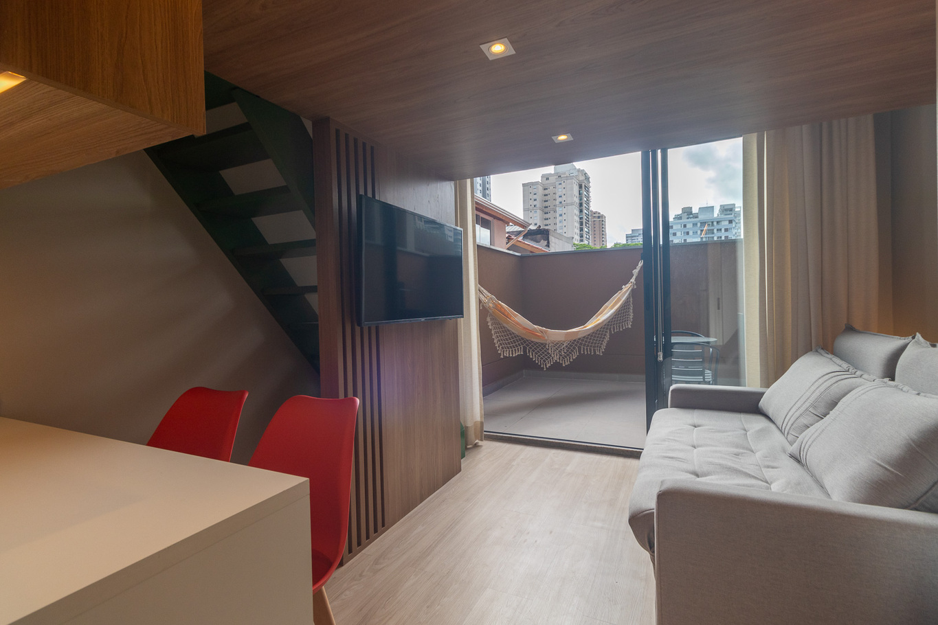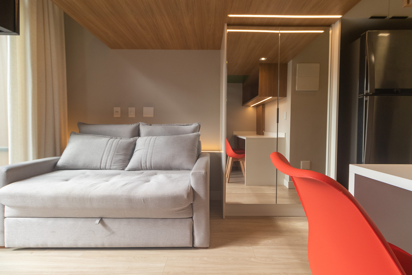 - Sala com sofá-cama, Smart TV e ar-condicionado