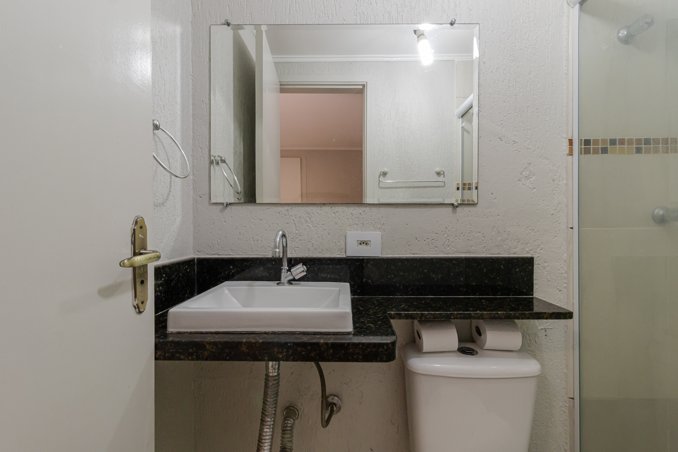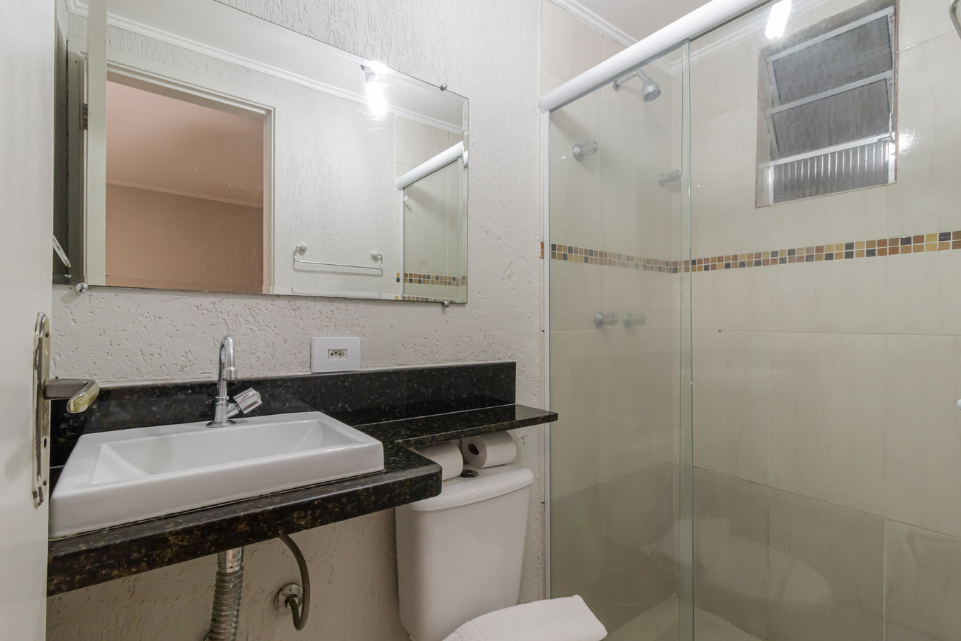 - Banheiro com chuveiro elétrico, box de vidro/acrílico e secador de cabelo (sob demanda)