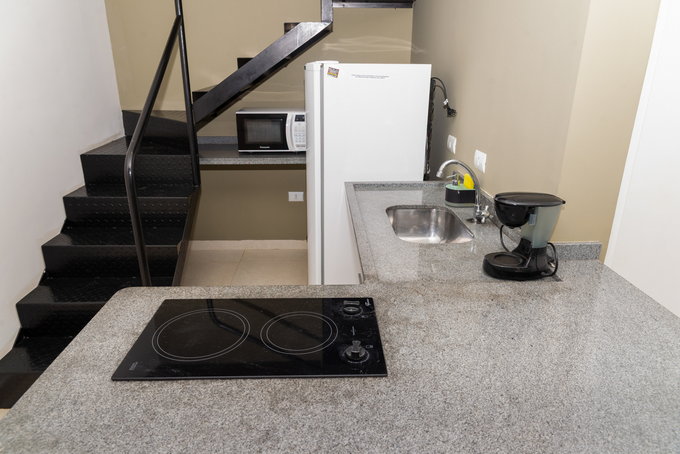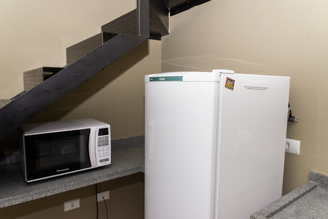 - Cozinha equipada com geladeira, fogão, micro-ondas, cafeteira, torradeira e utensílios diversos(exceto óleo e sal)