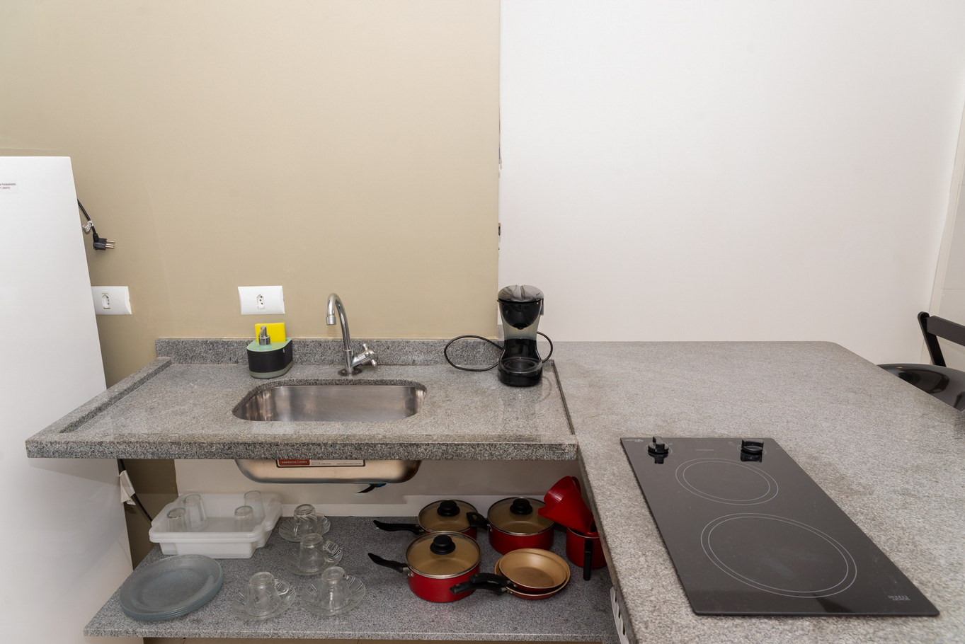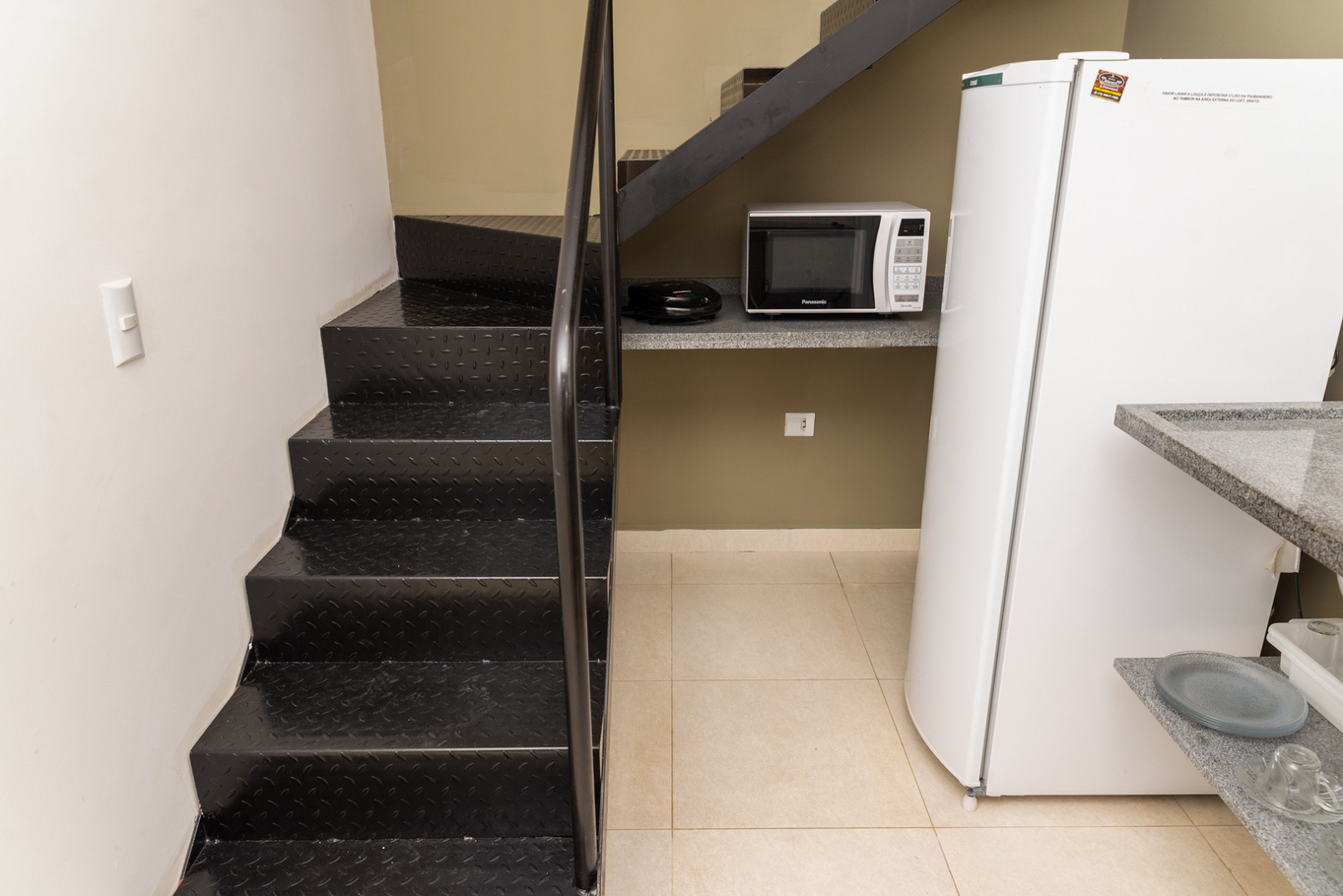 - Cozinha equipada com geladeira, fogão, micro-ondas, cafeteira, torradeira e utensílios diversos(exceto óleo e sal)