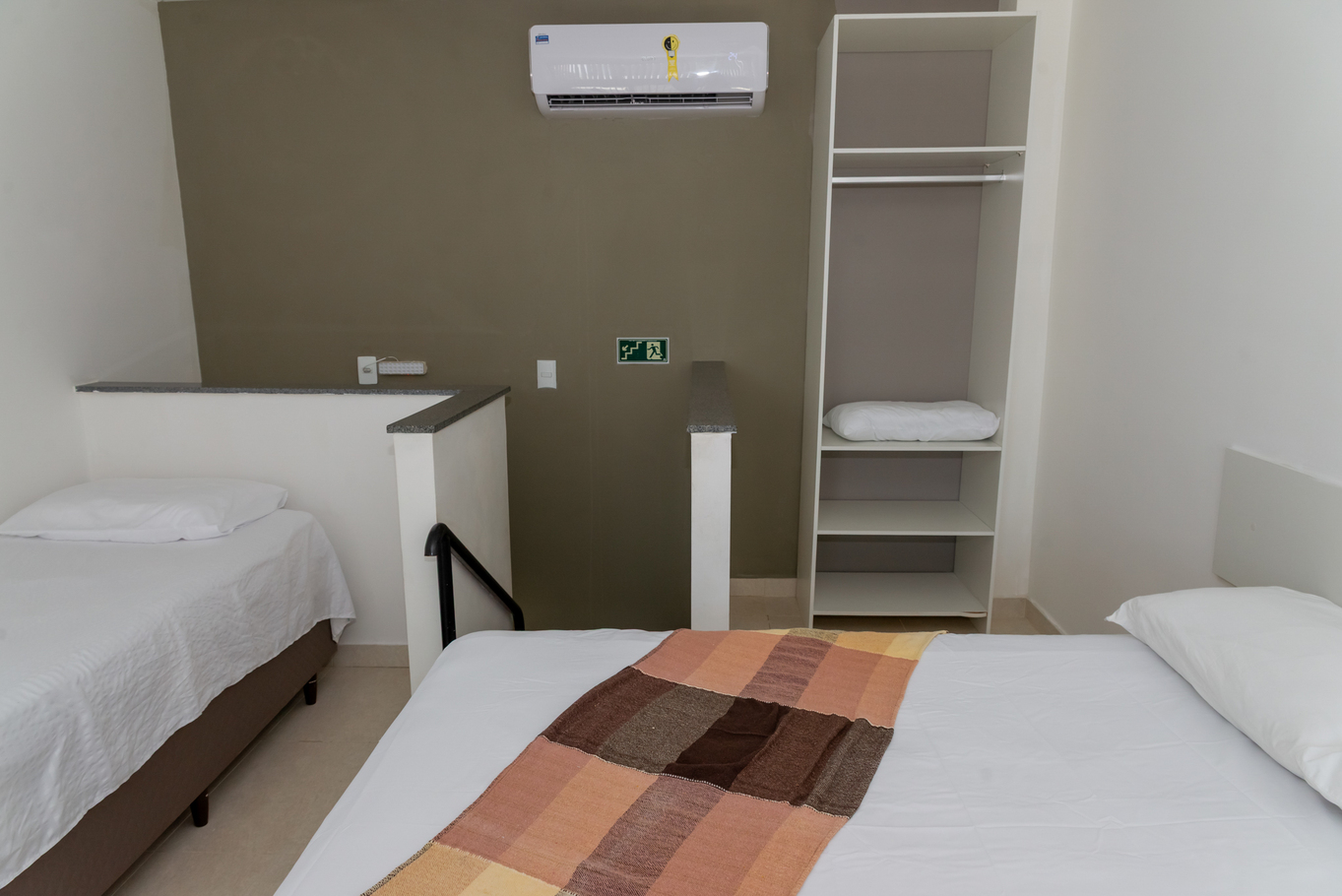 - Quarto em mezanino com cama de casal e cama de solteiro