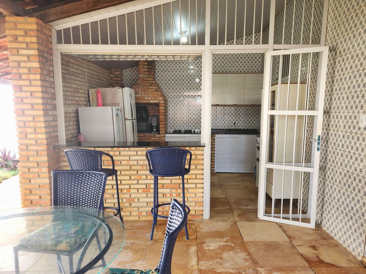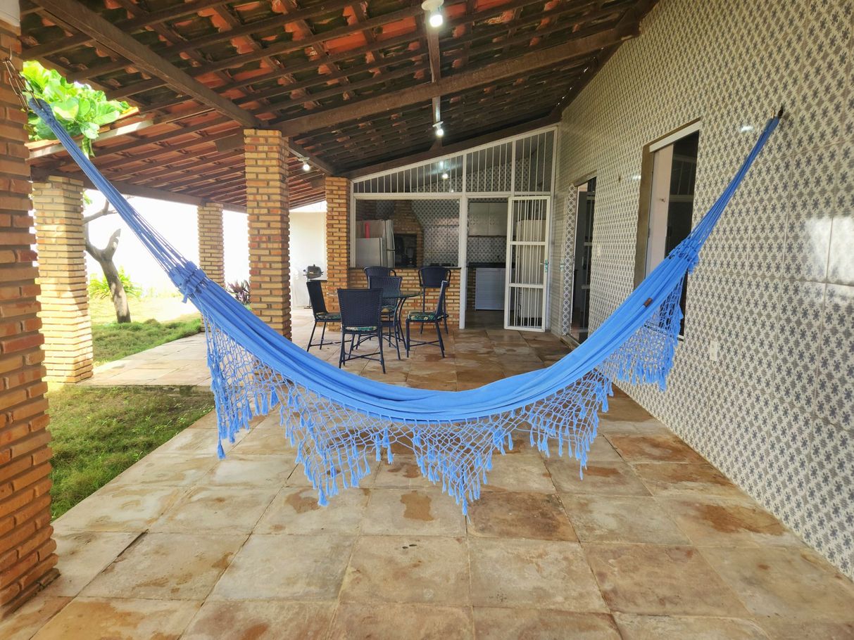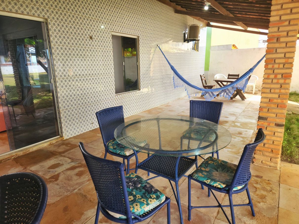 - Varanda frontal com mesa de jantar para 8 lugares e espaço para redes