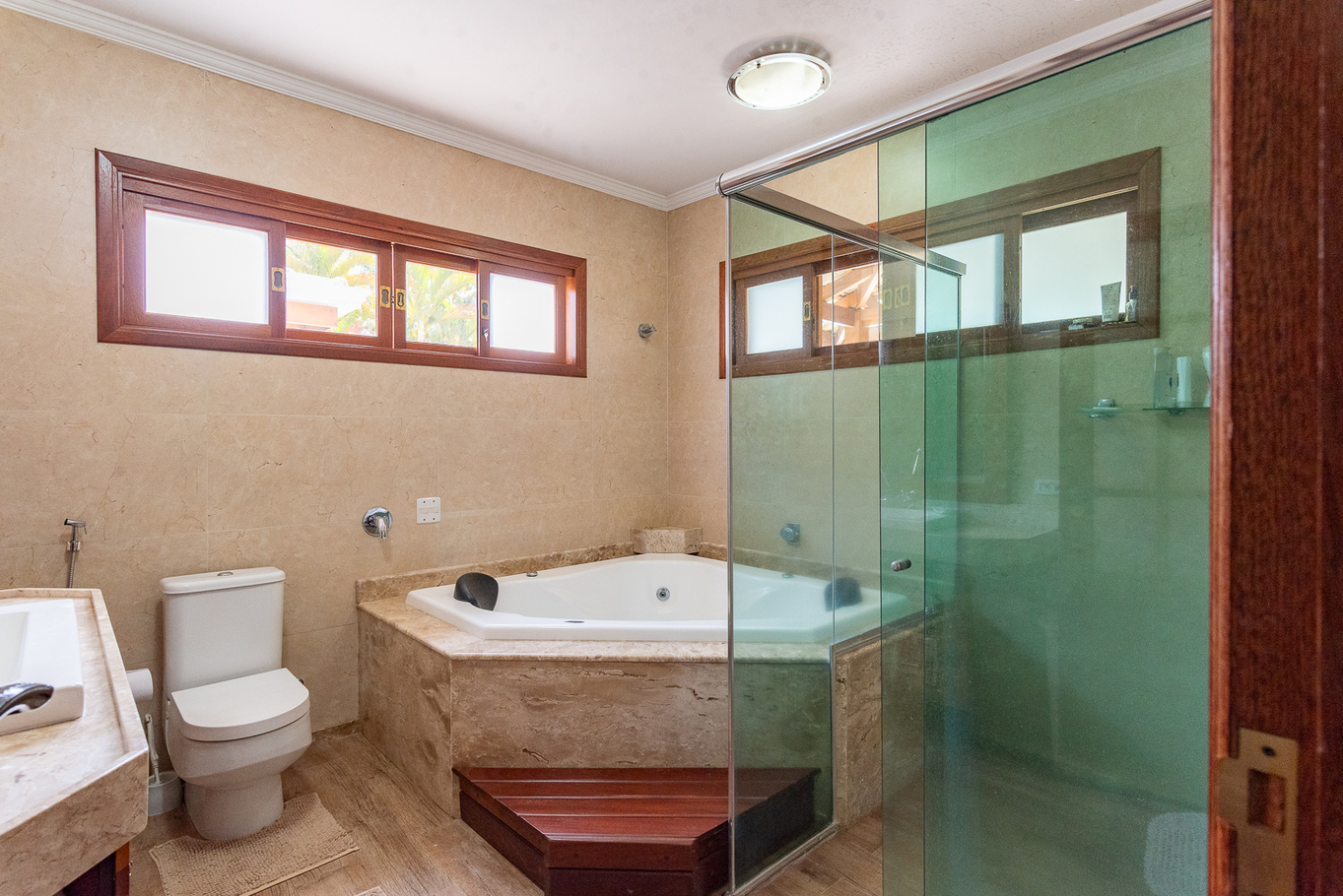 - Quarto 1(suíte): cama king, closet, ar-condicionado, TV a cabo e banheiro privativo com com banheira de hidromassagem
