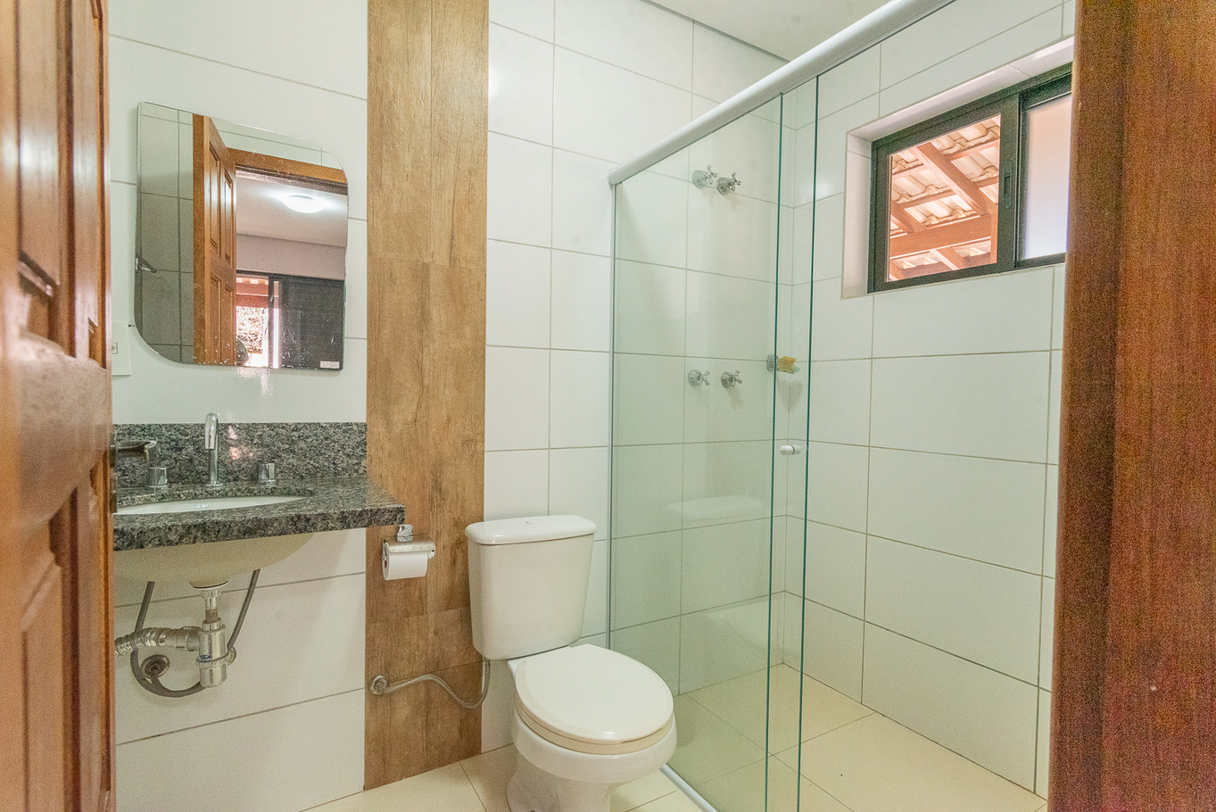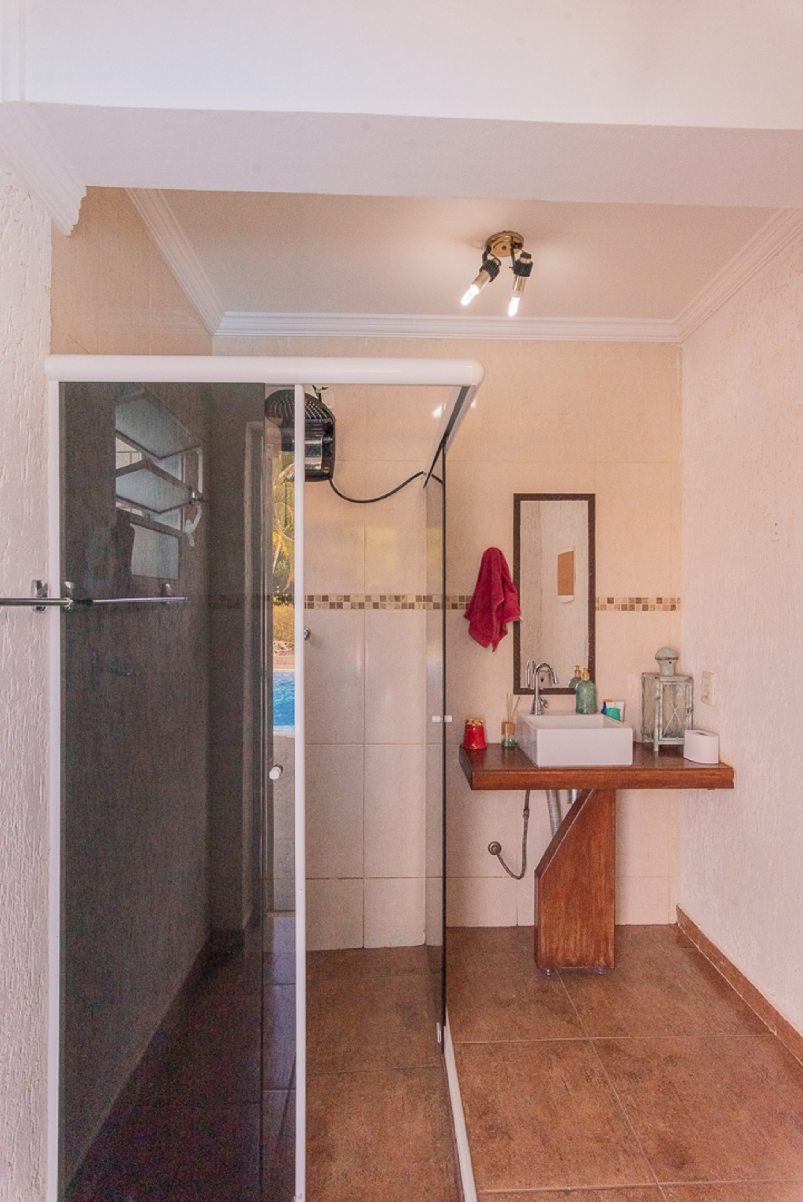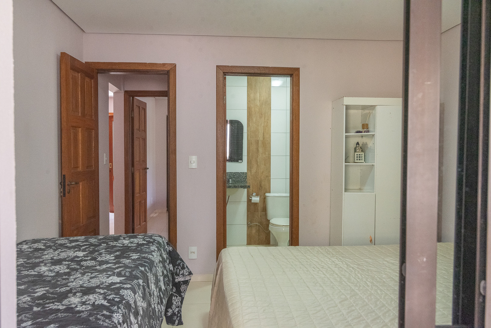 - Quarto 2 (suíte): cama de casal e banheiro privativo com box de vidro