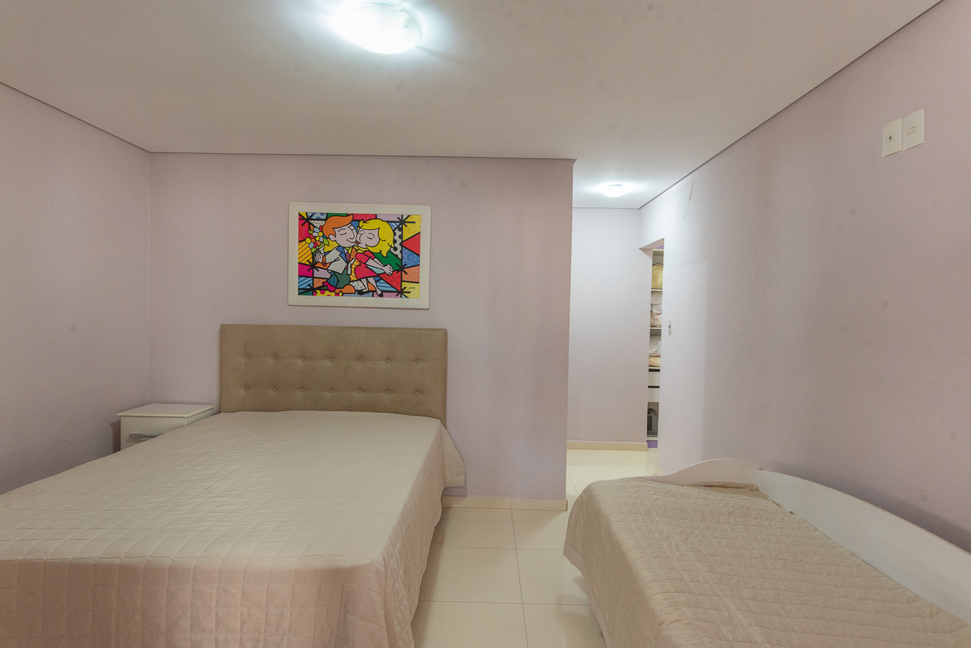 - Quarto 4 (suíte): cama queen, beliche, armário e protetor de colchão