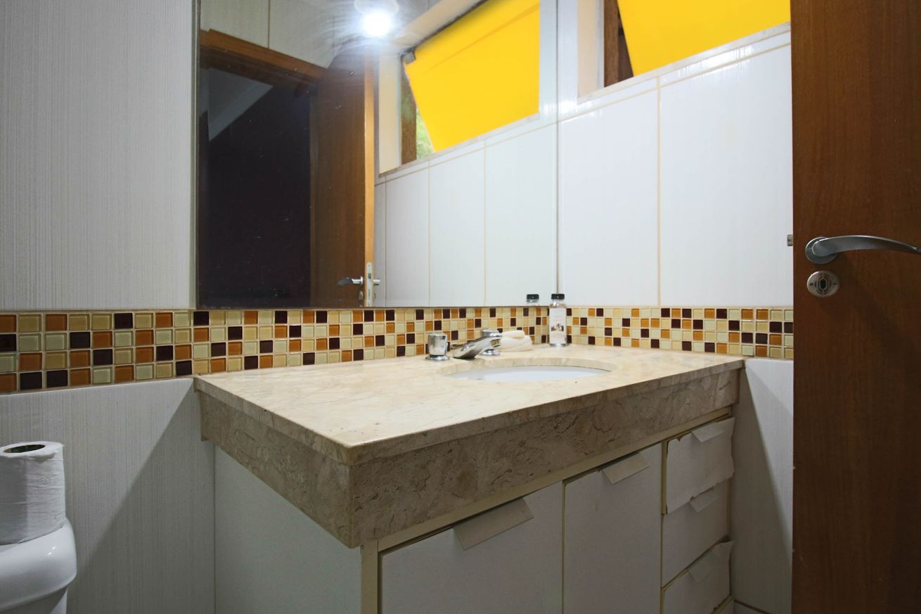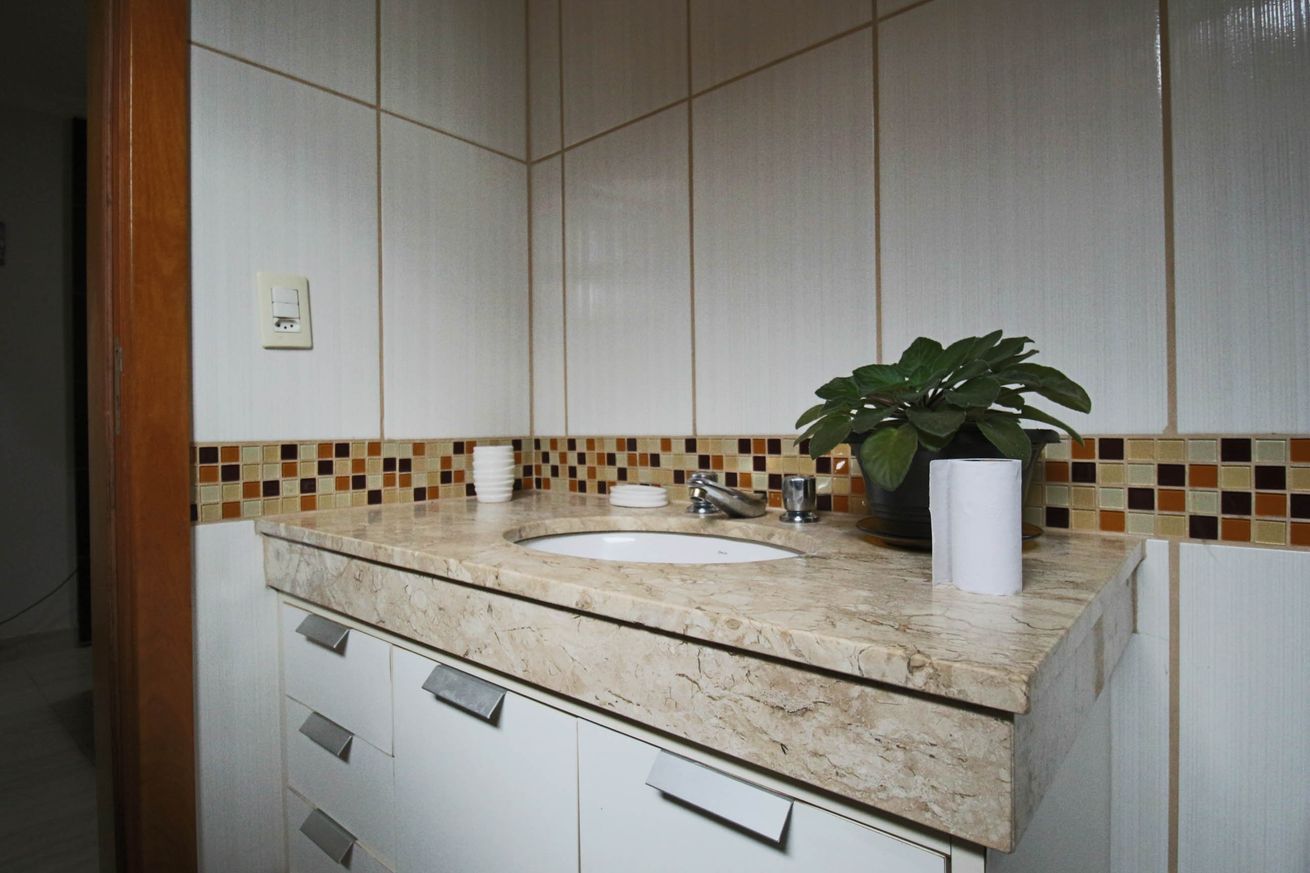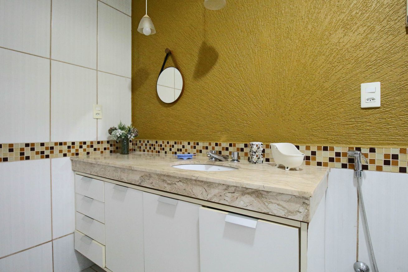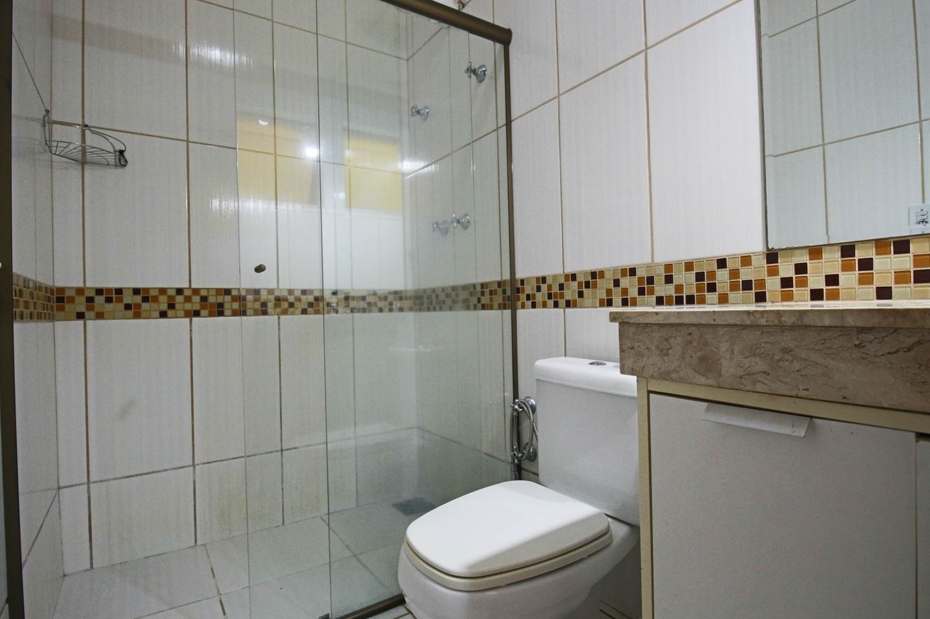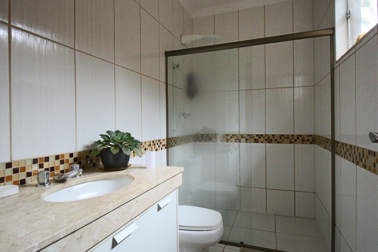 - Banheiro Social com chuveiro elétrico e box de vidro/acrílico