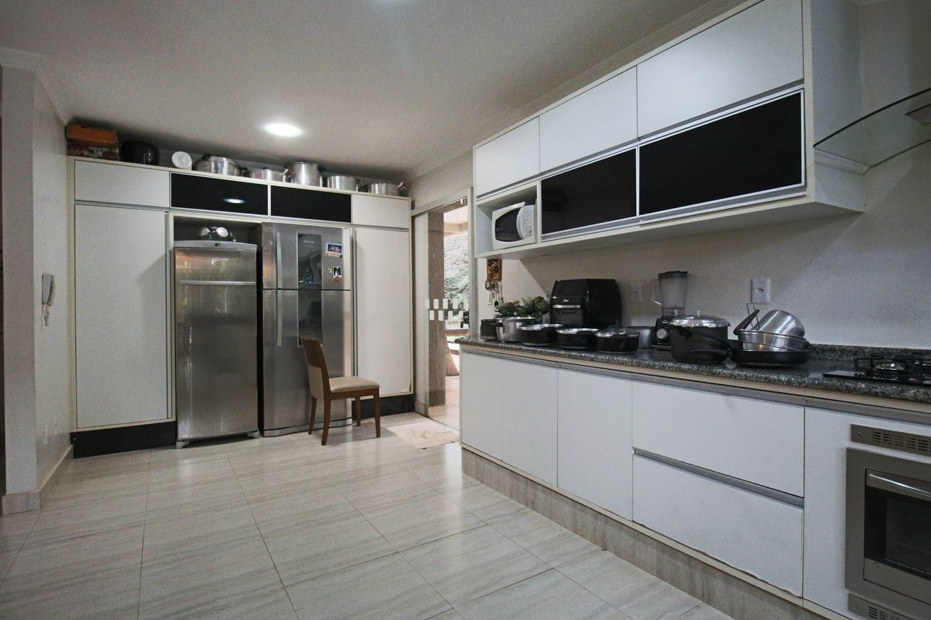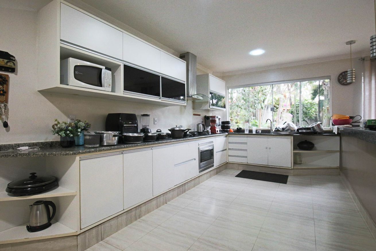 - Cozinha equipada com geladeira, forno, micro-ondas, liquidificador, balcão, exaustor, mesa de apoio, utensílios e itens de cozinha(exceto óleo e sal)