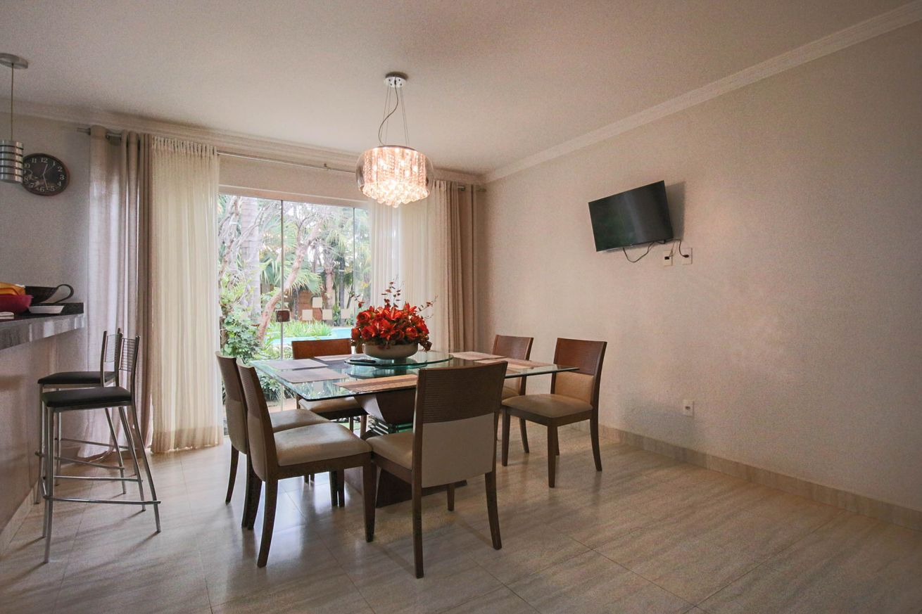 Uma casa ampla e funcional em Taguatinga Sul, ideal para receber até 8 hóspedes com conforto. Os ambientes sociais se conectam à área externa com churrasqueira, piscina e jardim com bastante área verde, criando um espaço perfeito para reunir família e amigos. O playground infantil torna o espaço ainda mais atrativo para quem viaja com crianças. Com 4 quartos bem distribuídos e sala com Smart TV, a casa oferece praticidade e clima acolhedor para dias tranquilos em Brasília.