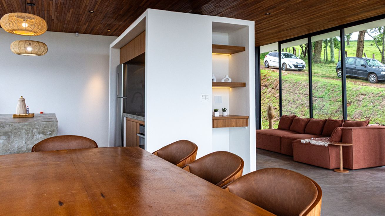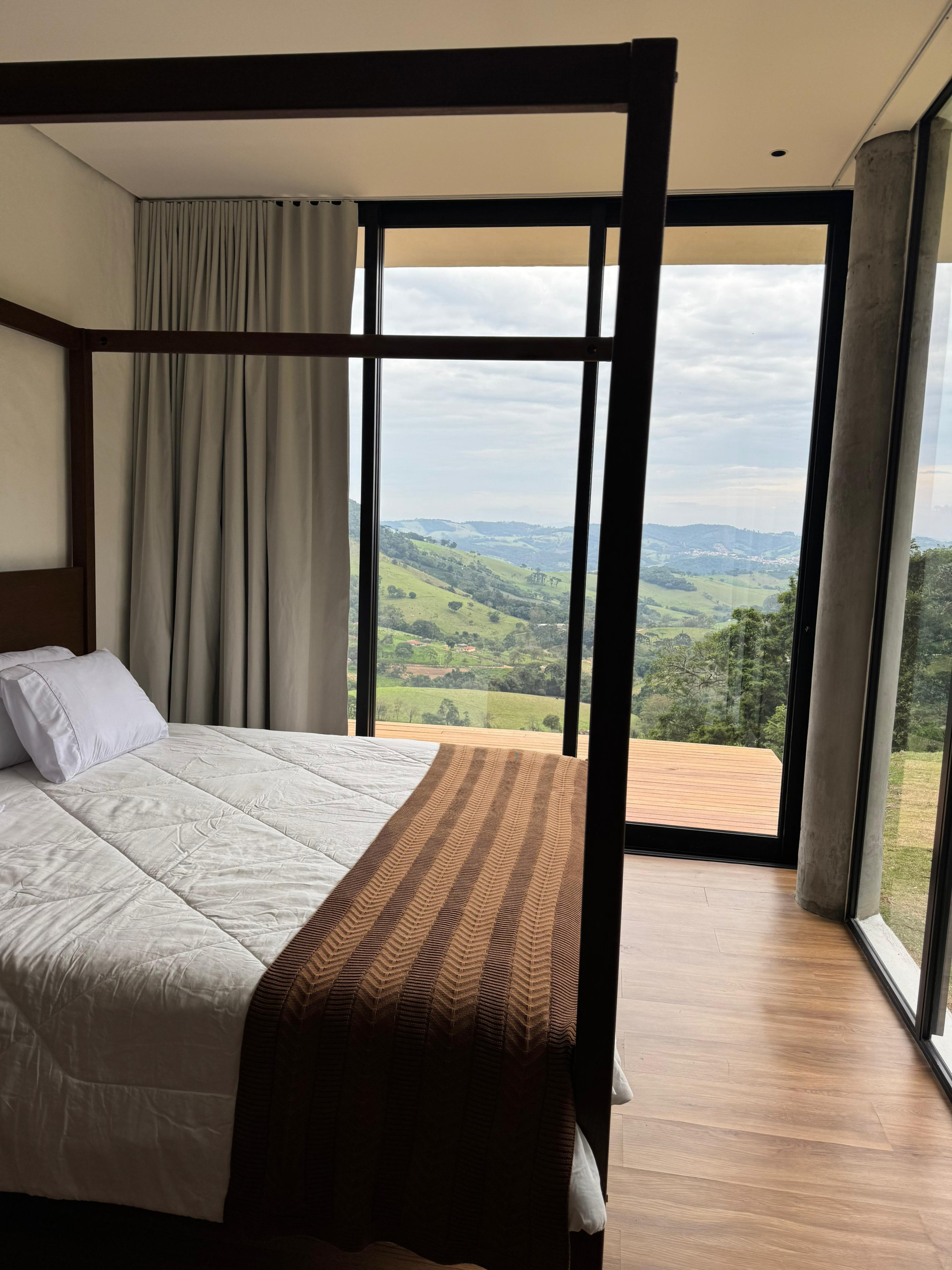 Em meio às montanhas de Bueno Brandão, esta casa de campo envidraçada convida ao descanso genuíno. Cercada pelo verde da zona rural, ela integra natureza e arquitetura, com amplas áreas de vidro que trazem a paisagem para dentro e transformam a vista ao longo do dia. A área externa é o grande destaque, com piscina aquecida, churrasqueira e fogão a lenha, ideais para momentos compartilhados. Os ambientes são amplos, confortáveis e acolhem até 10 hóspedes. Reserve e viva o campo com exclusividade.