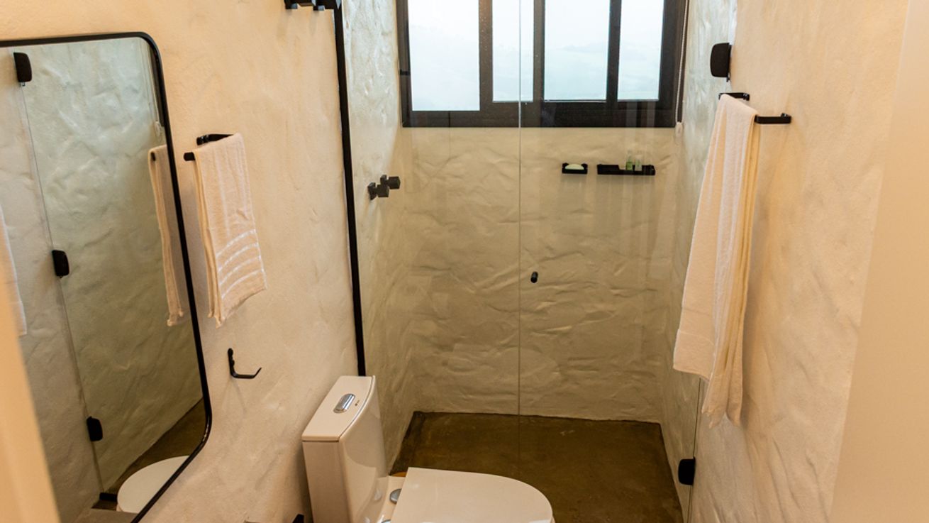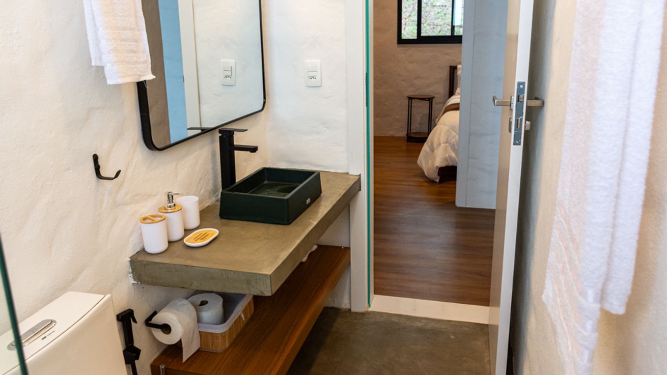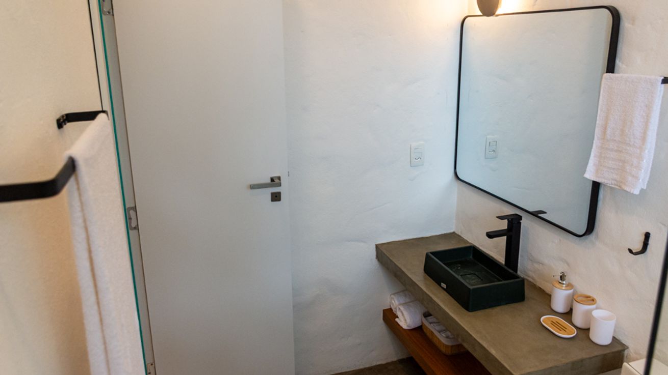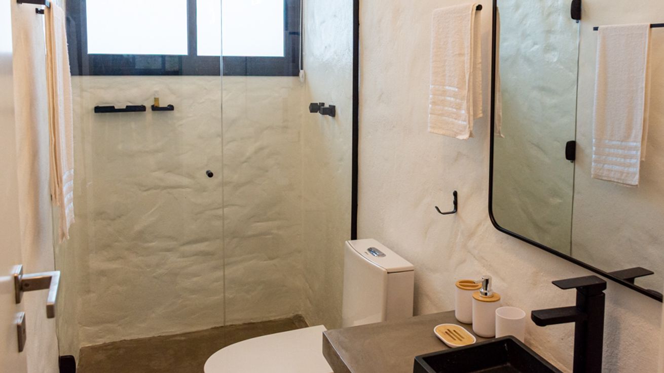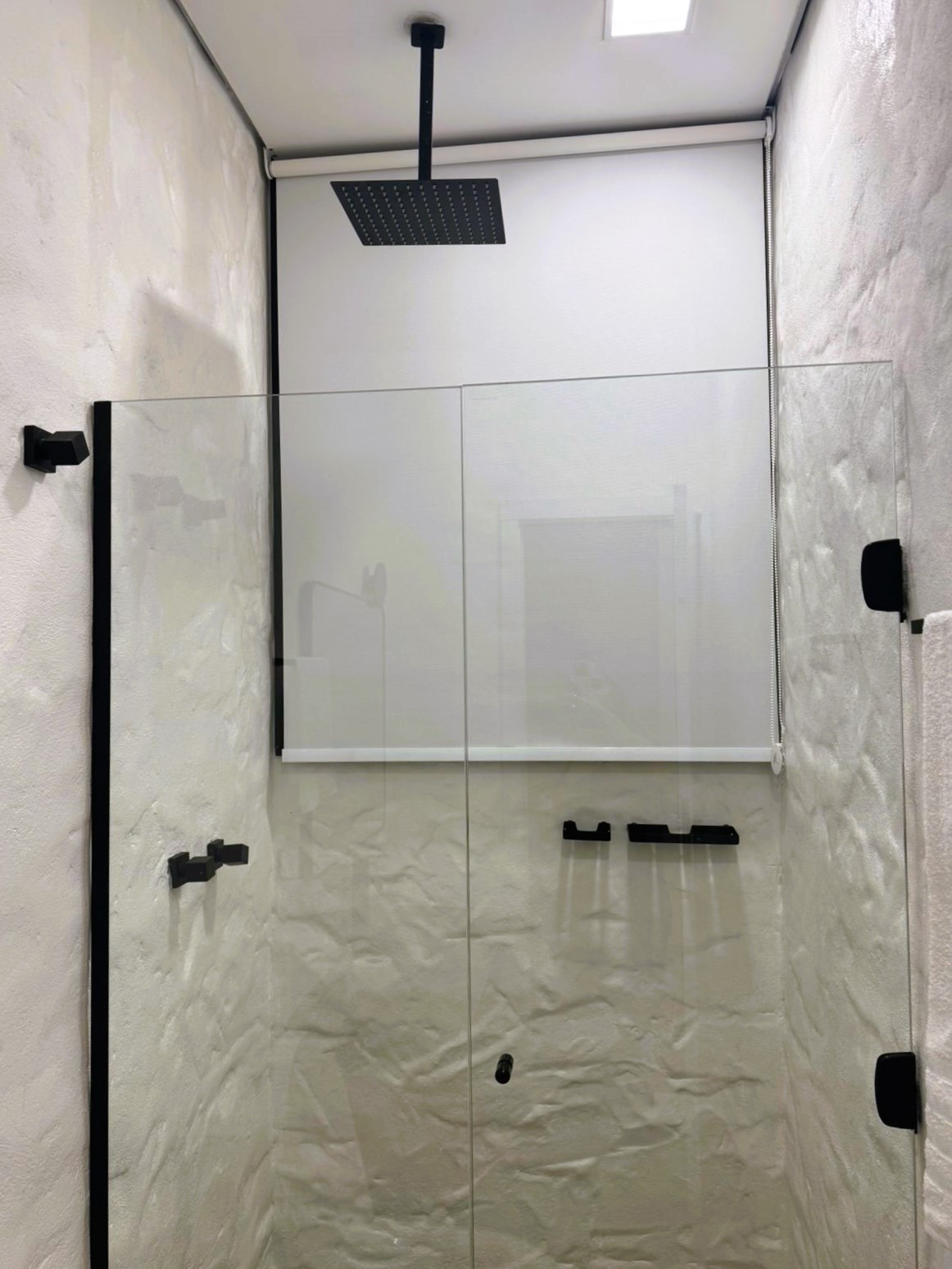 - Banheiro (sociais e suítes): chuveiro e box de vidro. Sendo um localizado ao lado do quarto 2