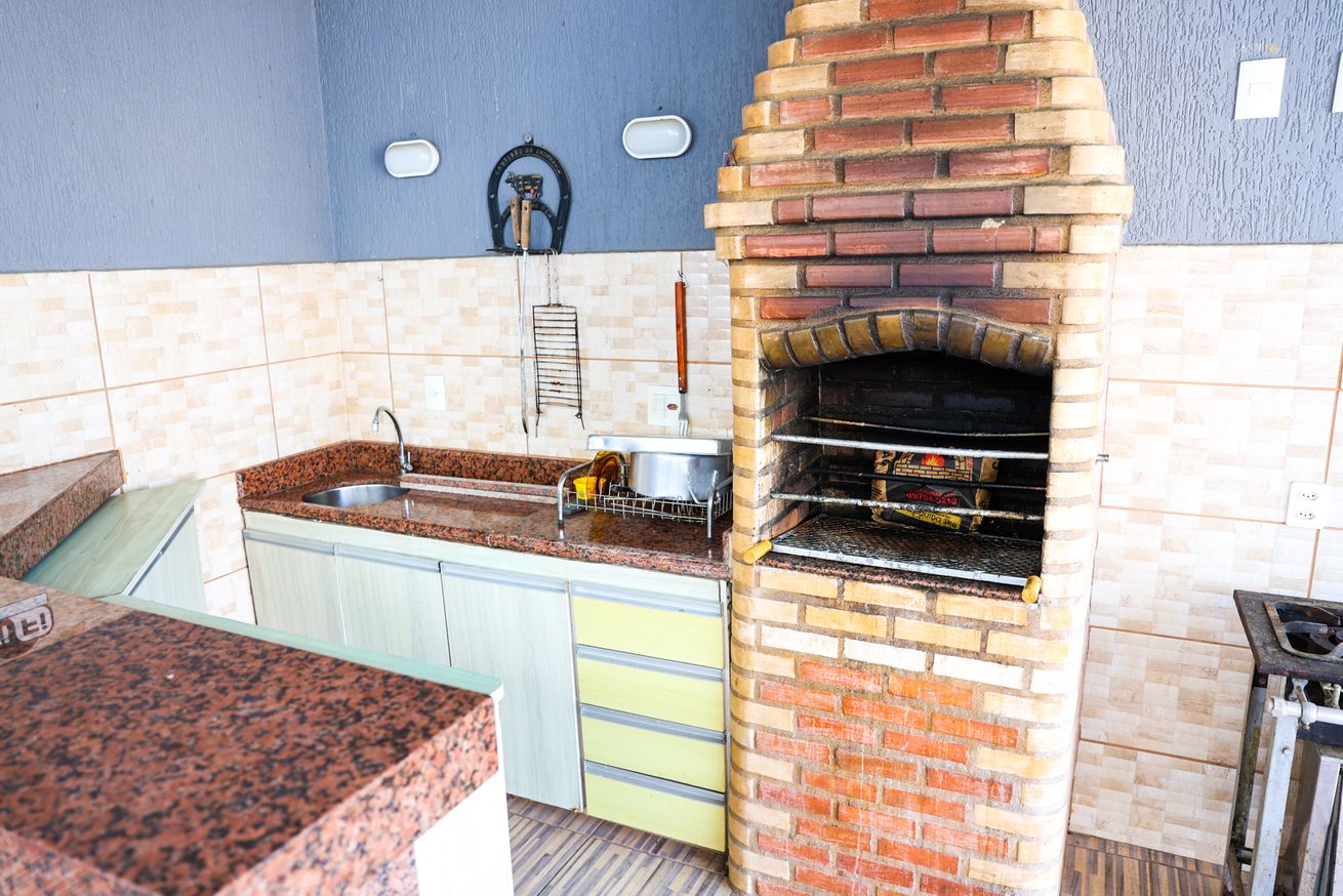 - Churrasqueira com pia, balcão e utensílios