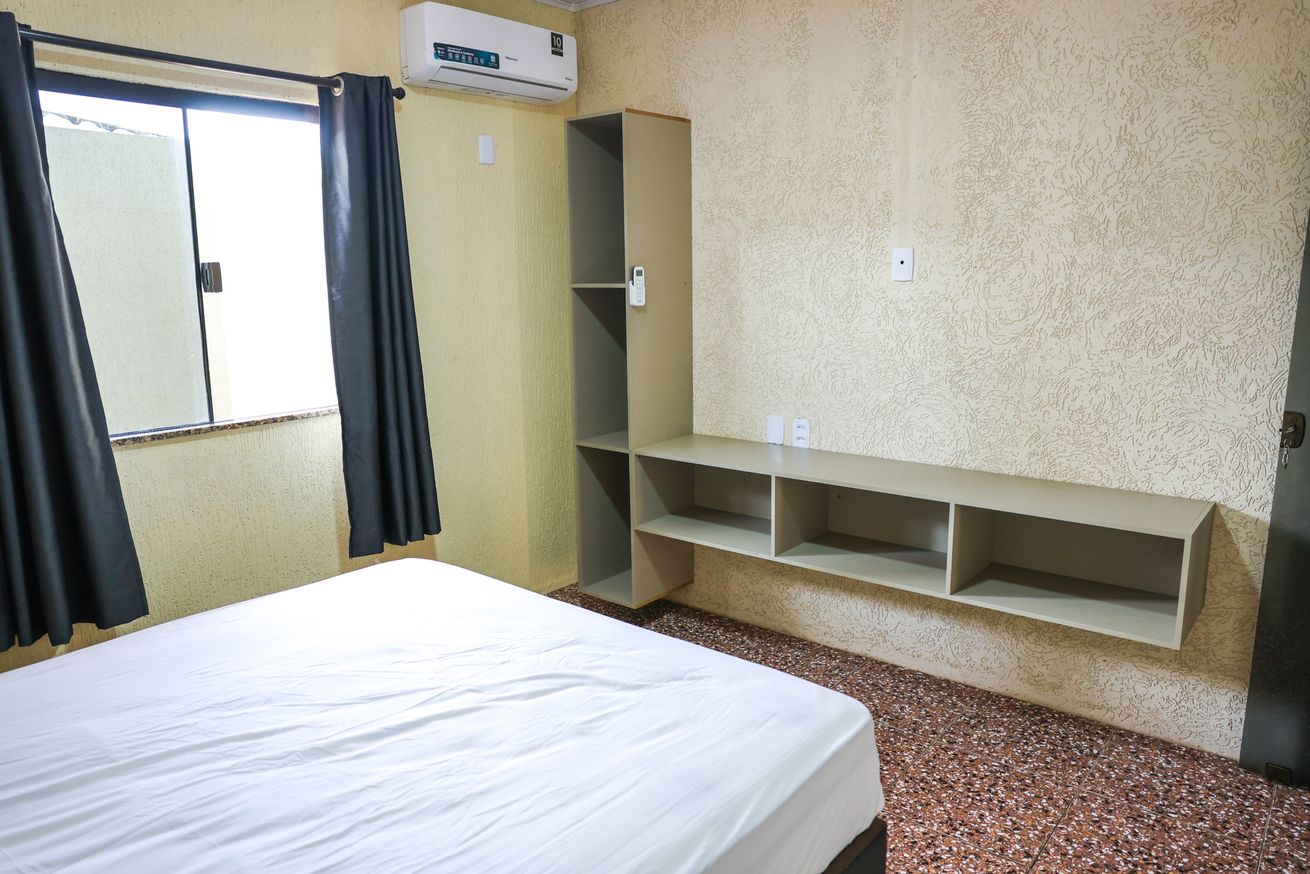 - Quarto 2 (suíte) :1 cama de casal, ar-condicionado, armário e banheiro privativo com box e chuveiro elétrico