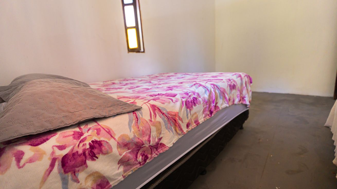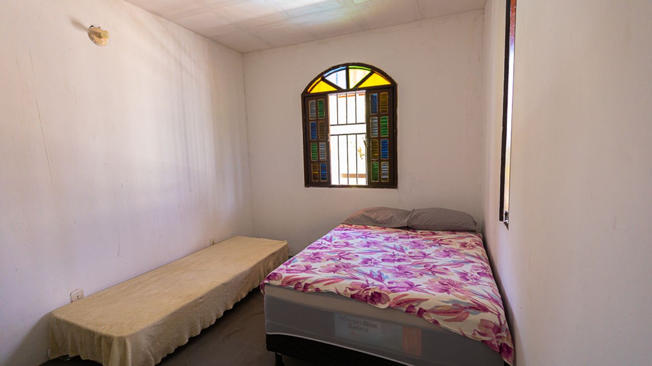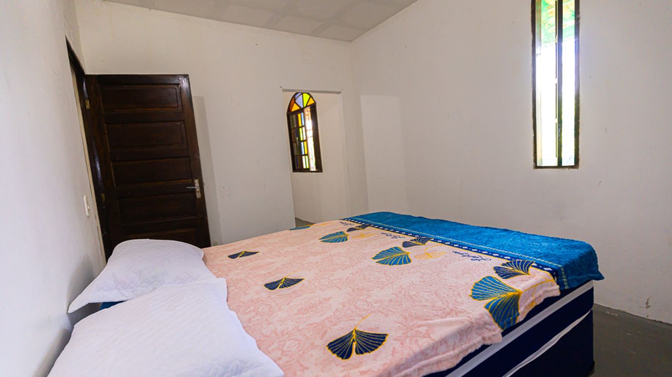 - Quarto 1: Cama de casal e cama de solteiro, armário, ventilador de teto e ventilador de pé.