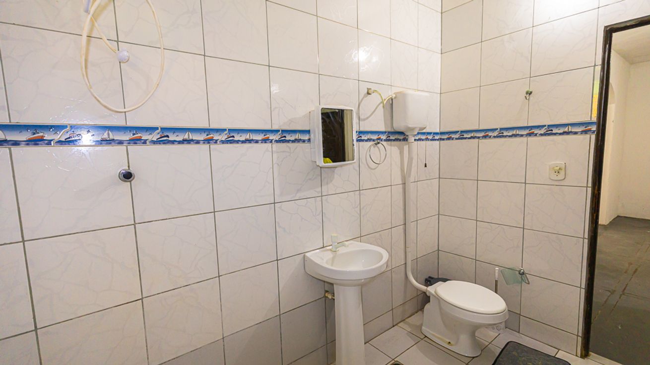 - Banheiro social interno com chuveiro elétrico e box