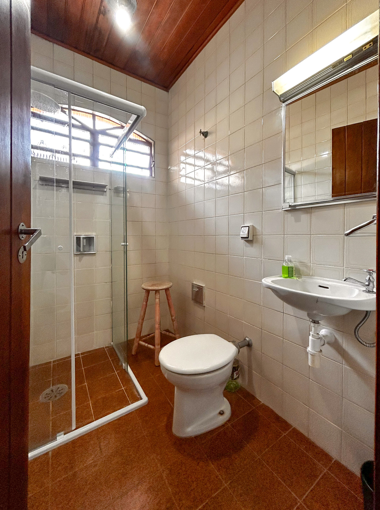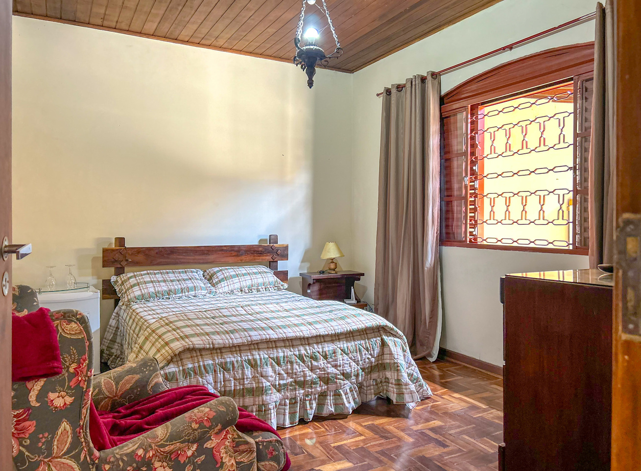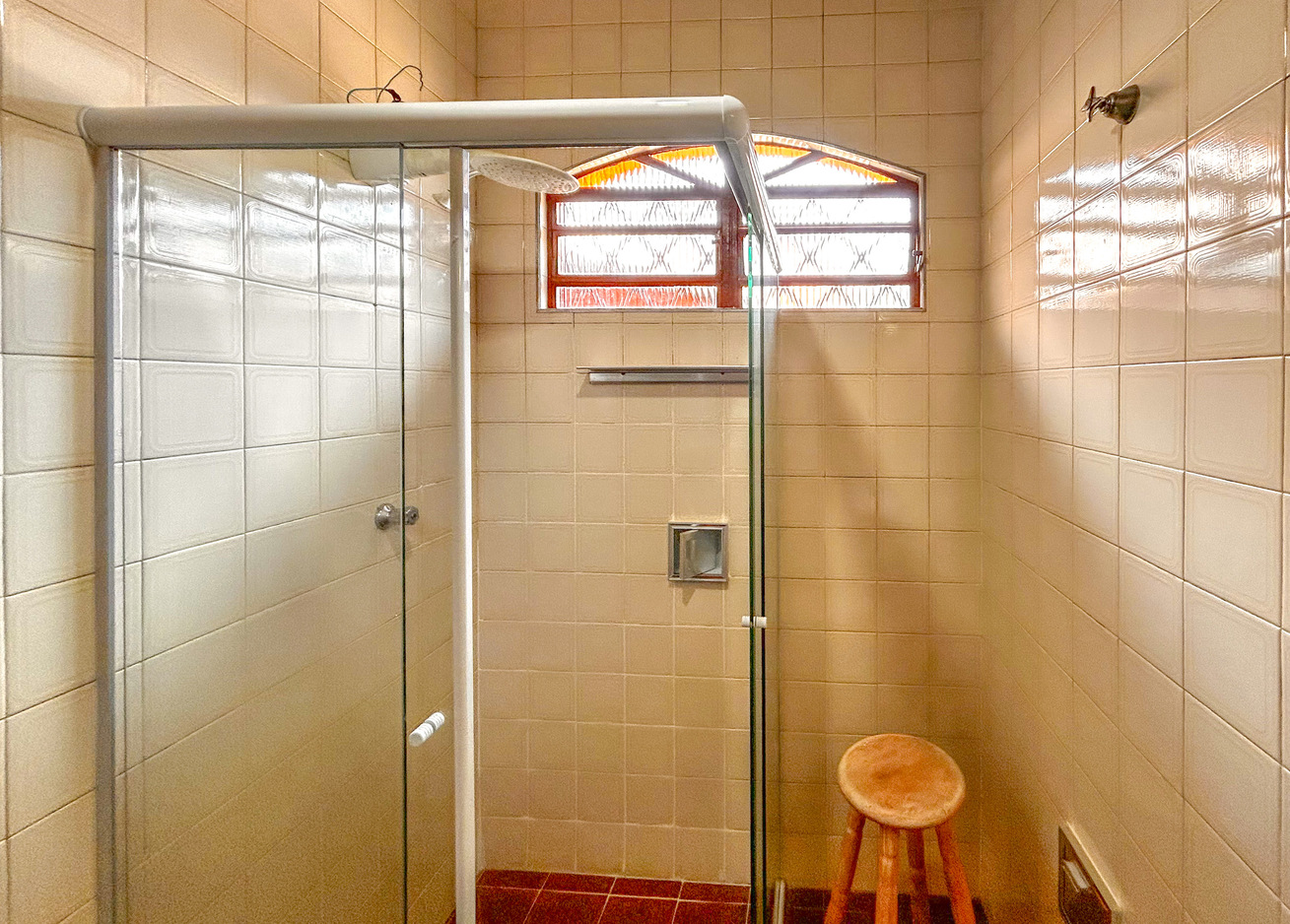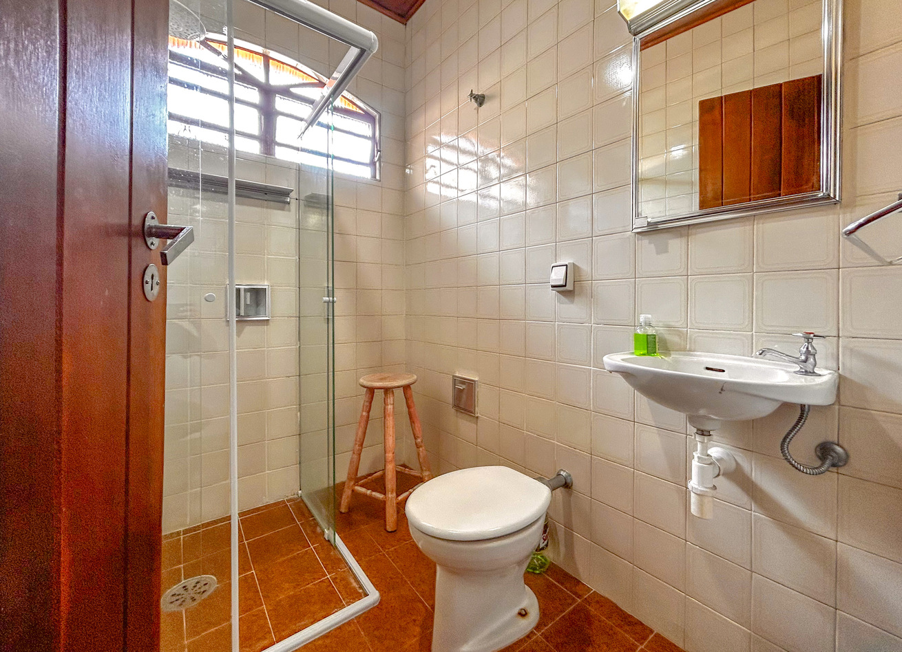 - Quarto 1(suíte) com cama de casal, Smart TV, frigobar, armário, piso de madeira, cortina blackout e banheiro com chuveiro elétrico e box de vidro