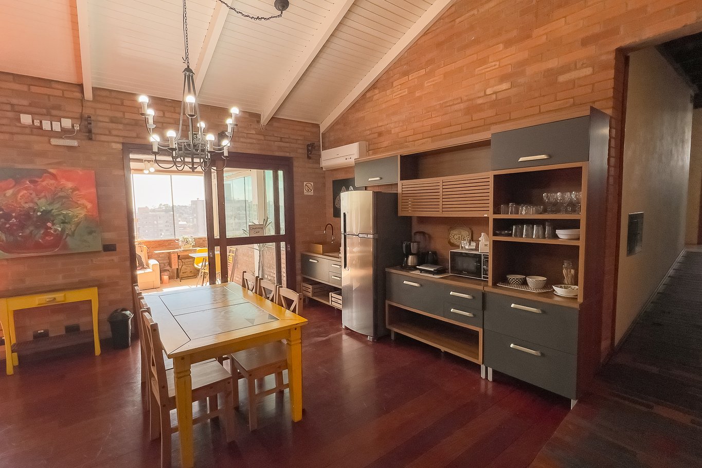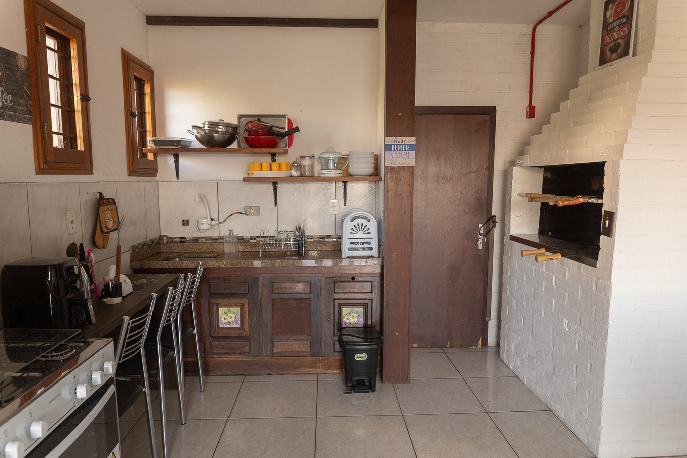 - Cozinha completa com fogão, forno, geladeira, freezer, micro-ondas, fritadeira, torradeira, liquidificador, cafeteira, purificador de água, mesa para refeições e utensílios completos(exceto óleo e sal)